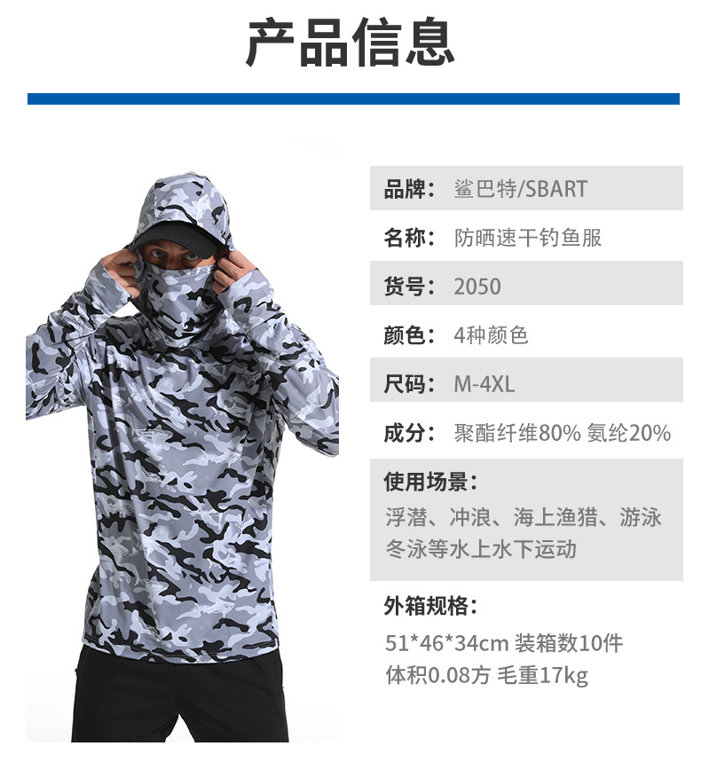 Shabart 2024 새로운 봄과 여름 태양 보호 세트 남성 야외 위장 하이 엔드 경량 낚시 태양 보호 세트 남성