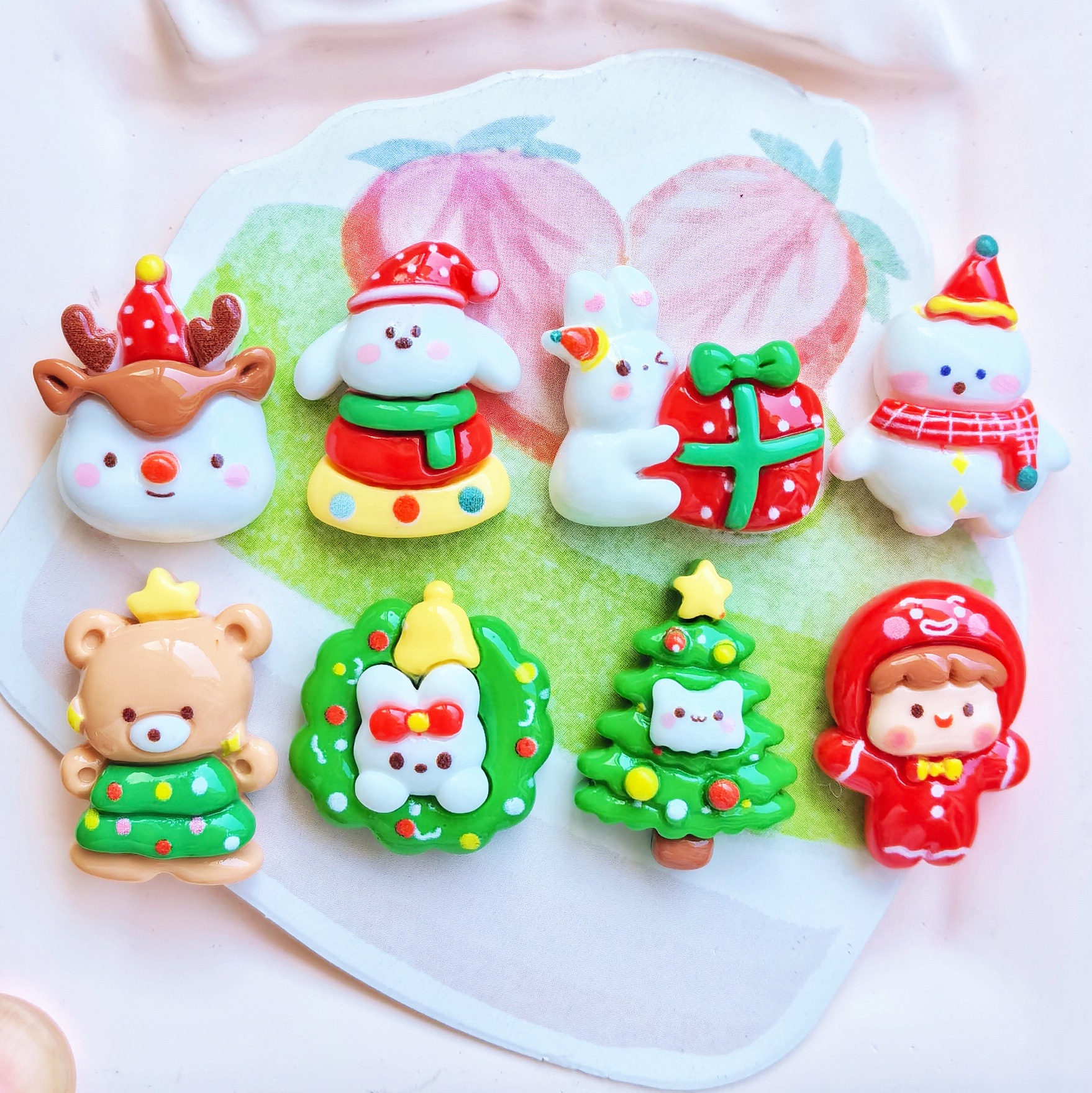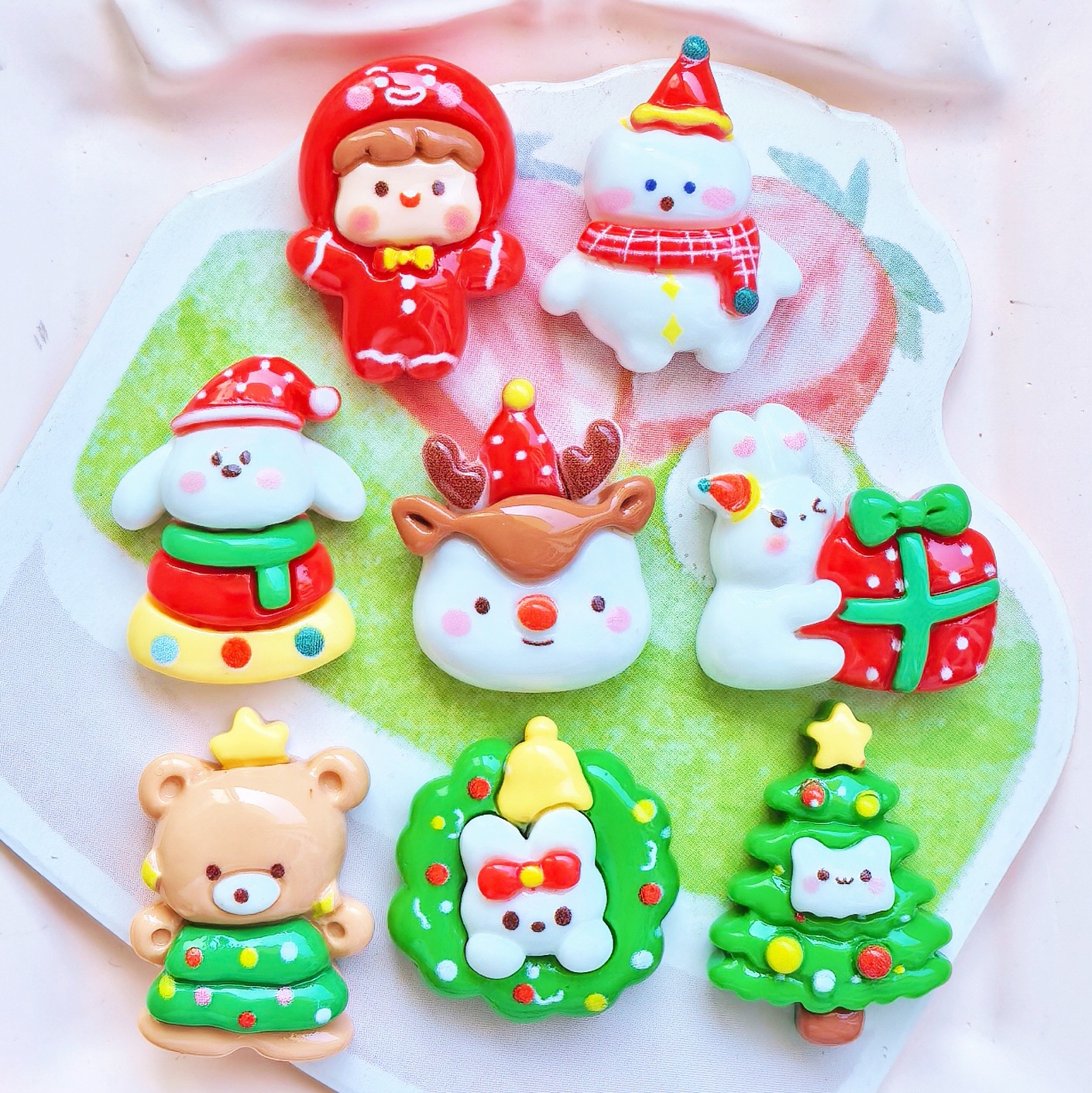 새로운 크리스마스 수지 액세서리 만화 크림 접착제 전화 케이스 크리스마스 눈사람 엘크 냉장고 스티커 액세서리