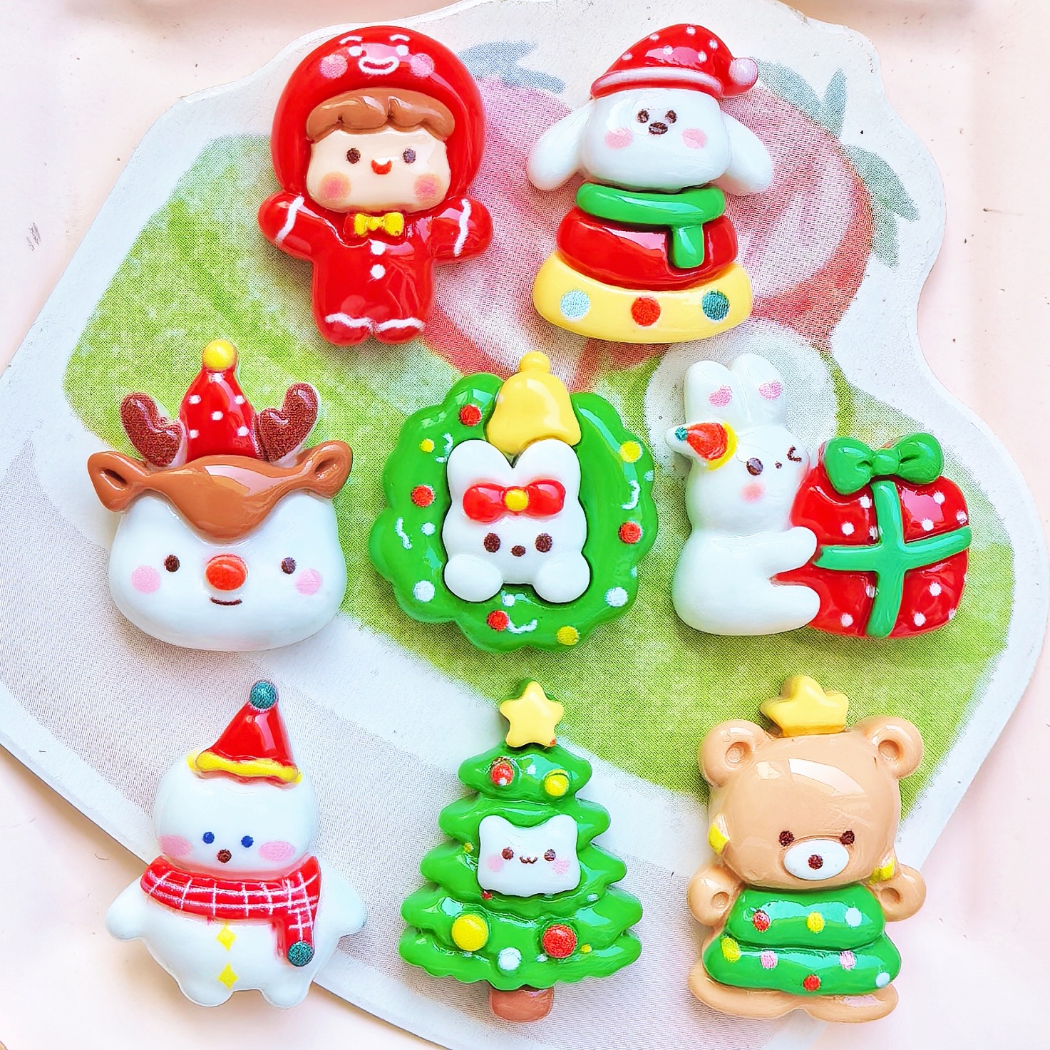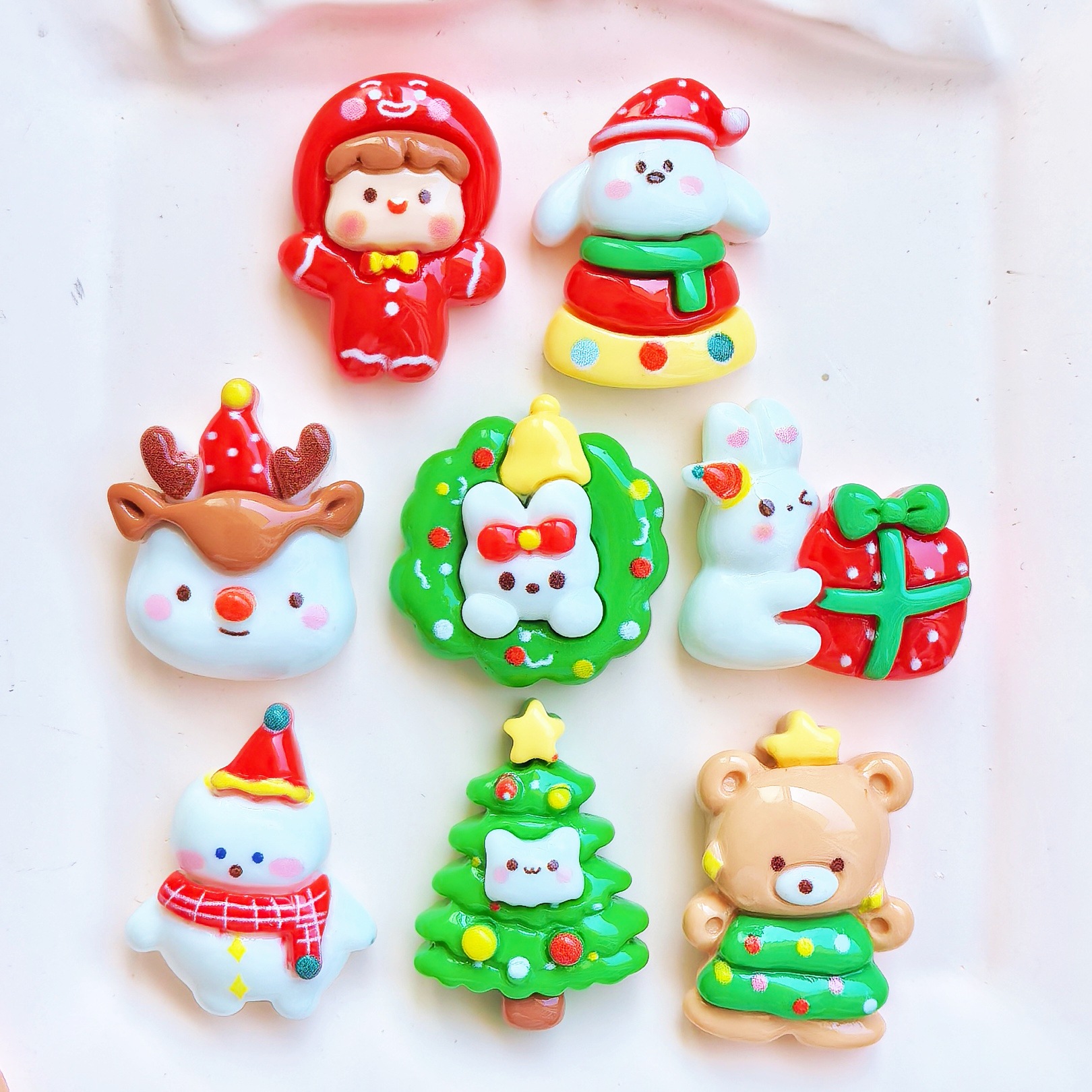 새로운 크리스마스 수지 액세서리 만화 크림 접착제 전화 케이스 크리스마스 눈사람 엘크 냉장고 스티커 액세서리스토어 가기