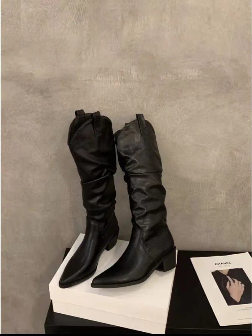 2024 가을과 겨울 새로운 두꺼운 뒤꿈치 뾰족한 V-입 얇은 긴 트렌디 쿨 편안한 포인팅 마틴 여성용 부츠스토어 가기