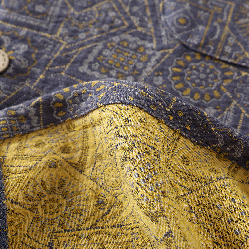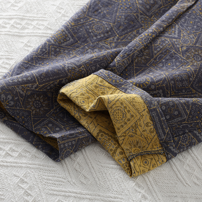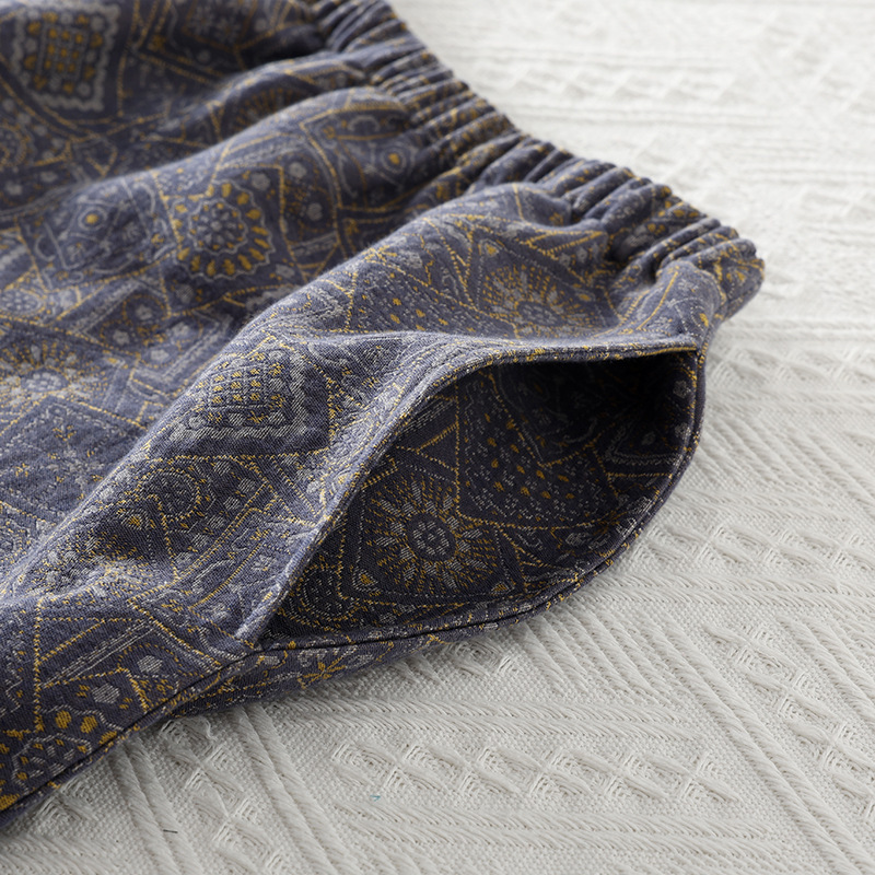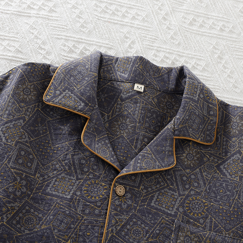 순면 원사 염색 더블 레이어 거즈 간단한 남성 봄과 가을 여름 잠옷 얇은 긴팔 아웃웨어 중년 및 노인 홈 의류스토어 가기