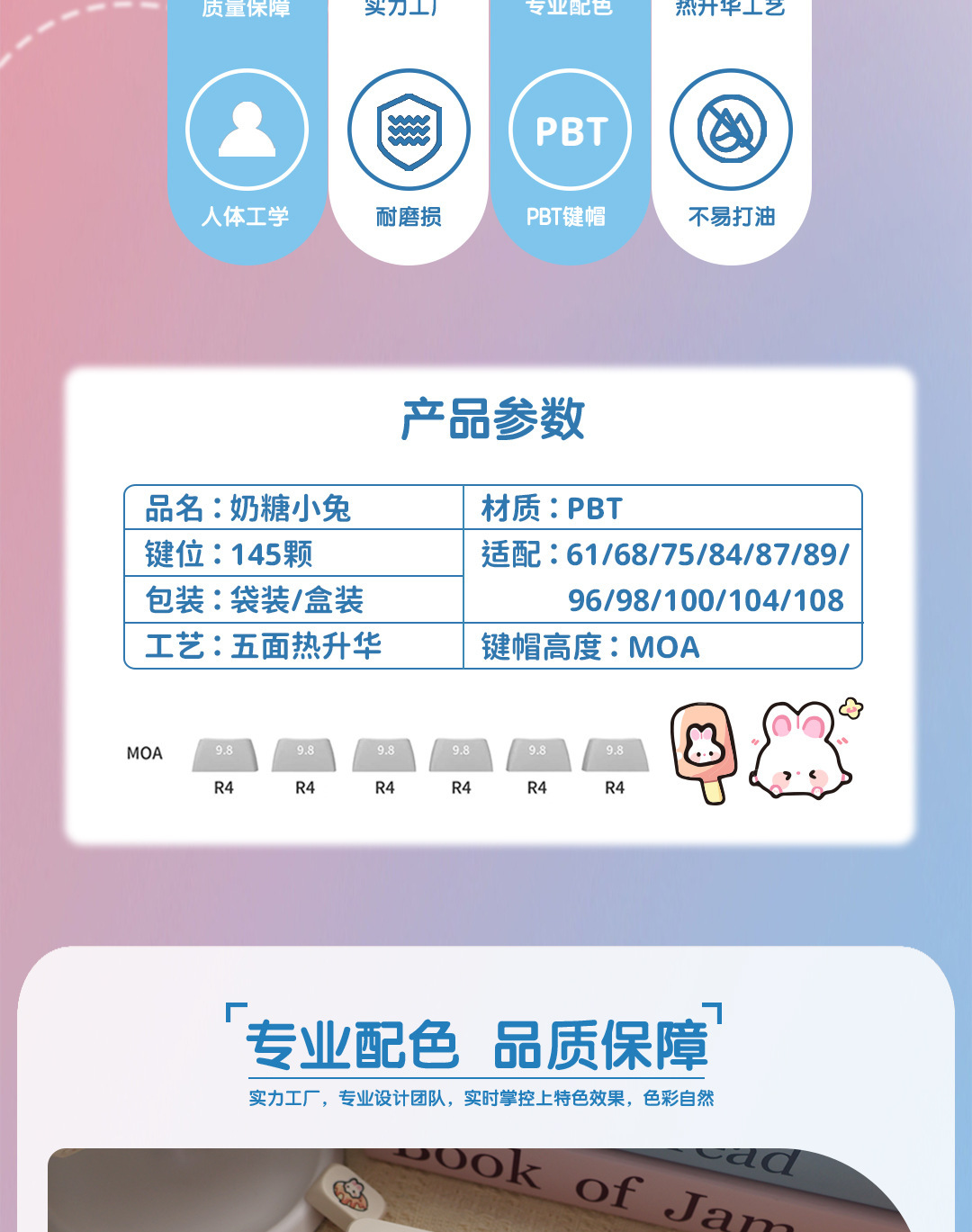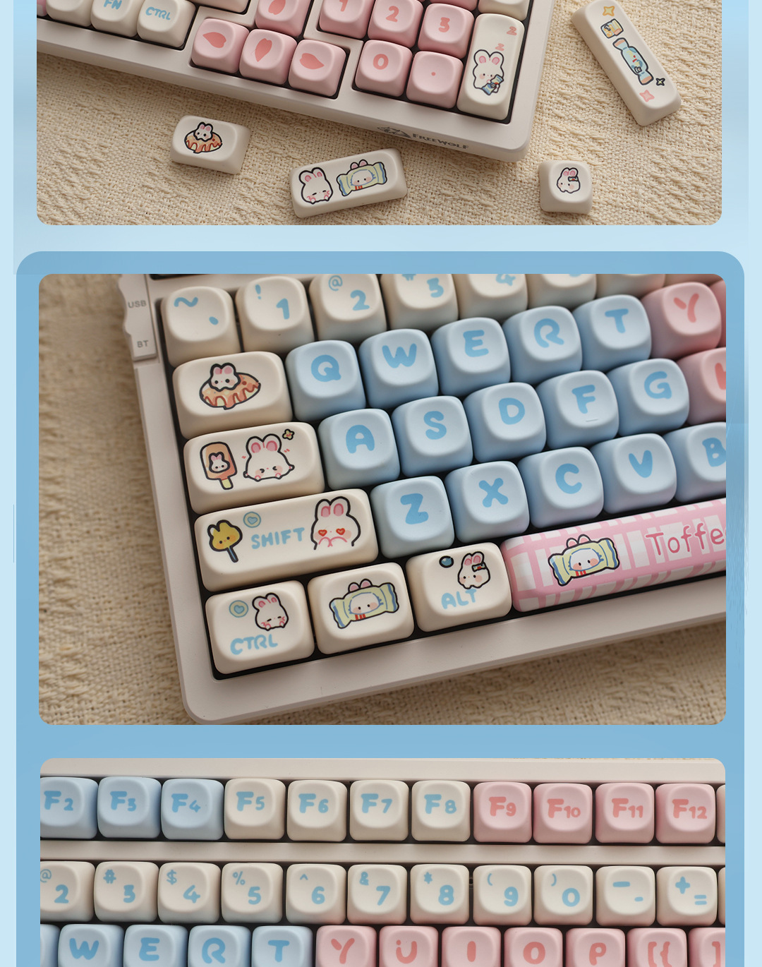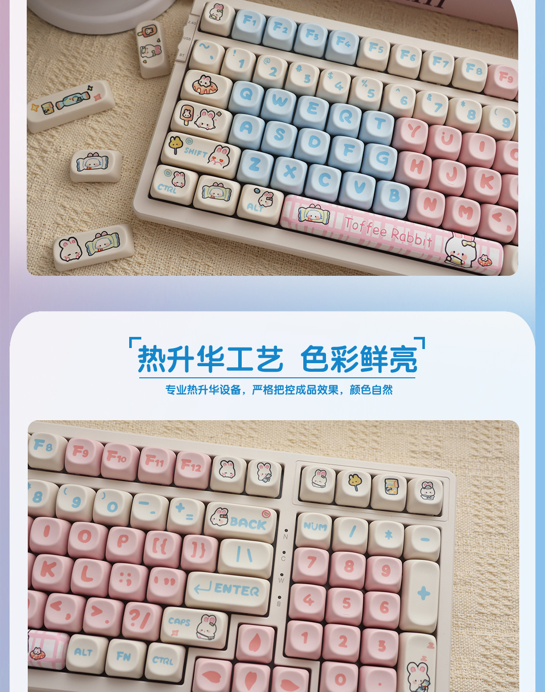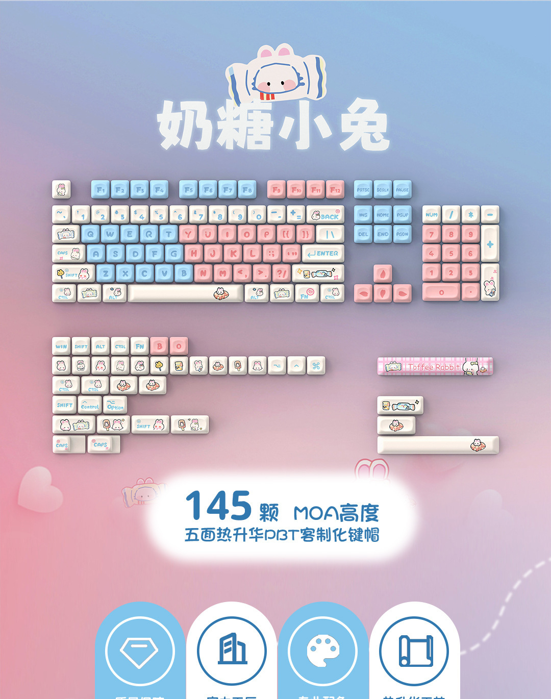 사탕 토끼 키 캡 귀여운 만화 MOA 높이 작은 뒤틀린 승화 Ningzhi HI75 98 99104 F87rk스토어 가기