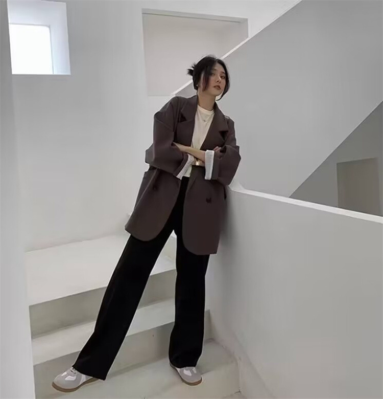 2025 봄 가을 신상 여성용 레이지 스타일 정장 재킷, 스트리트 인플루언서 스타일 심플 루즈핏 커피색 스몰 슈트스토어 가기