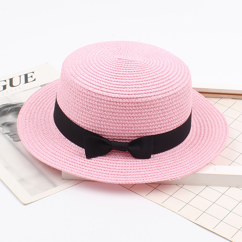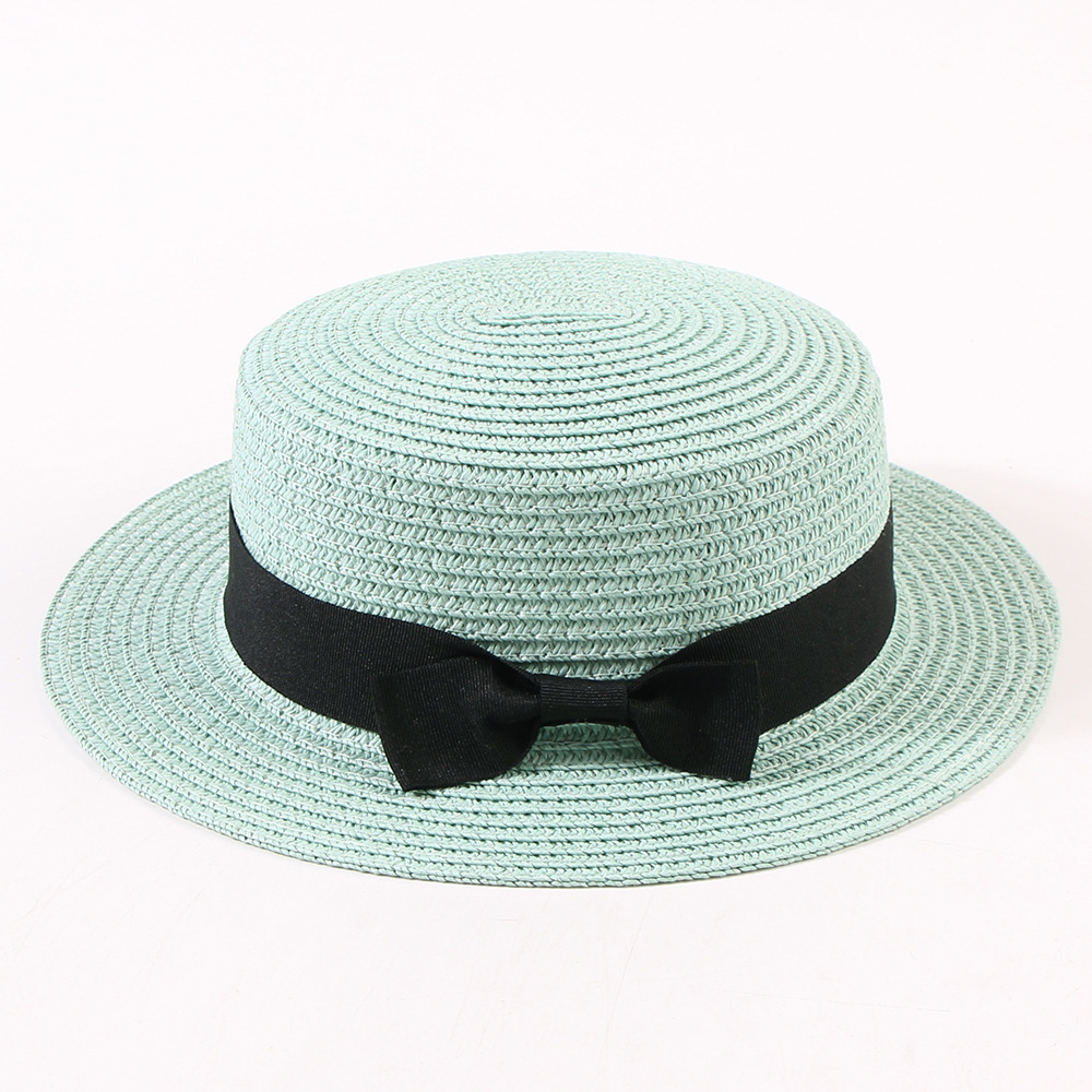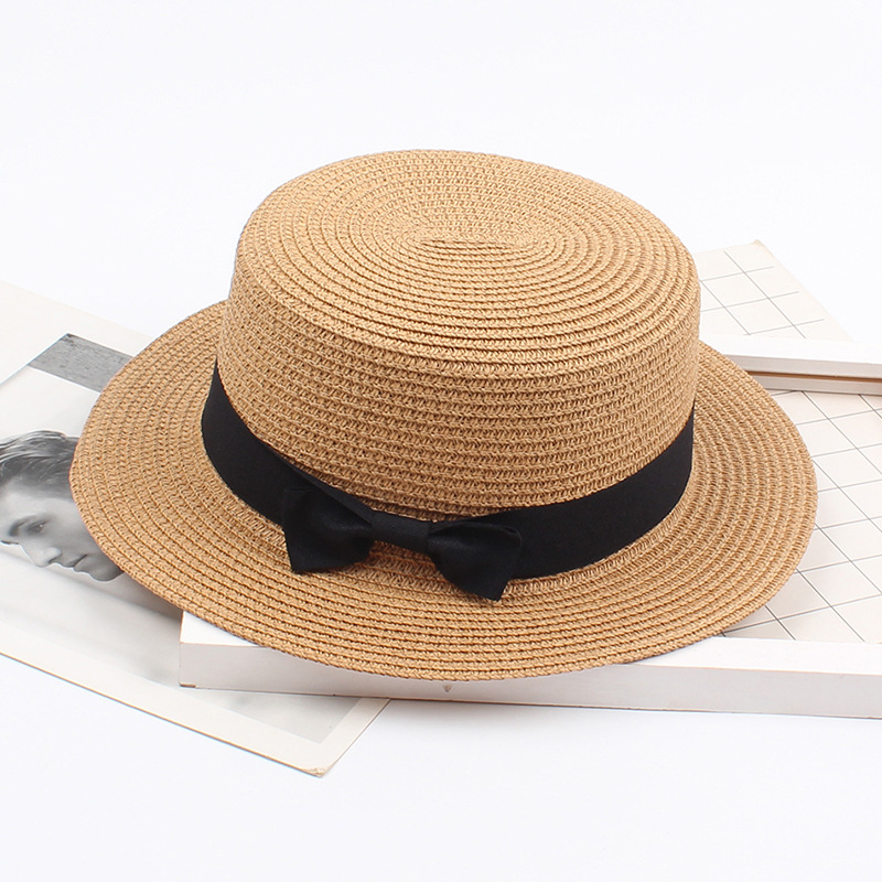 봄 여름 밀짚모 맞춤 제작 영국 레트로 스타일 유럽풍 리본 플랫탑 모자 햇빛 차단 해변 모자 맞춤 제작
