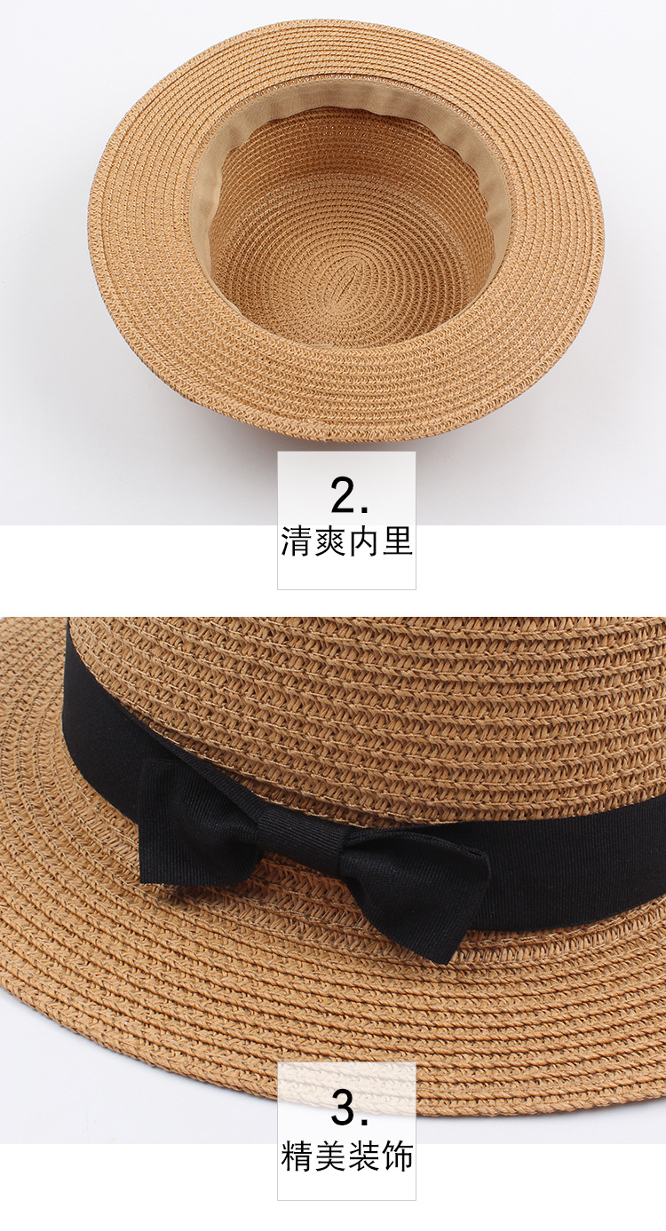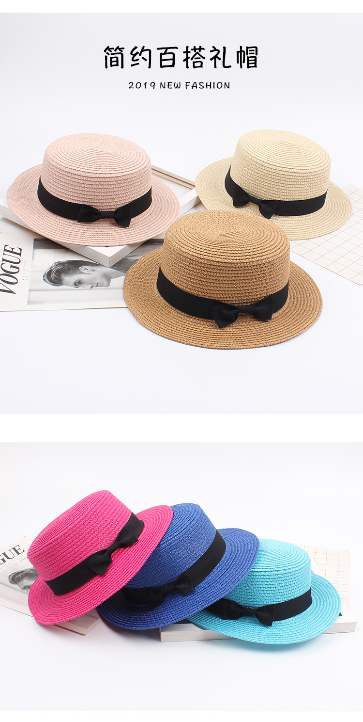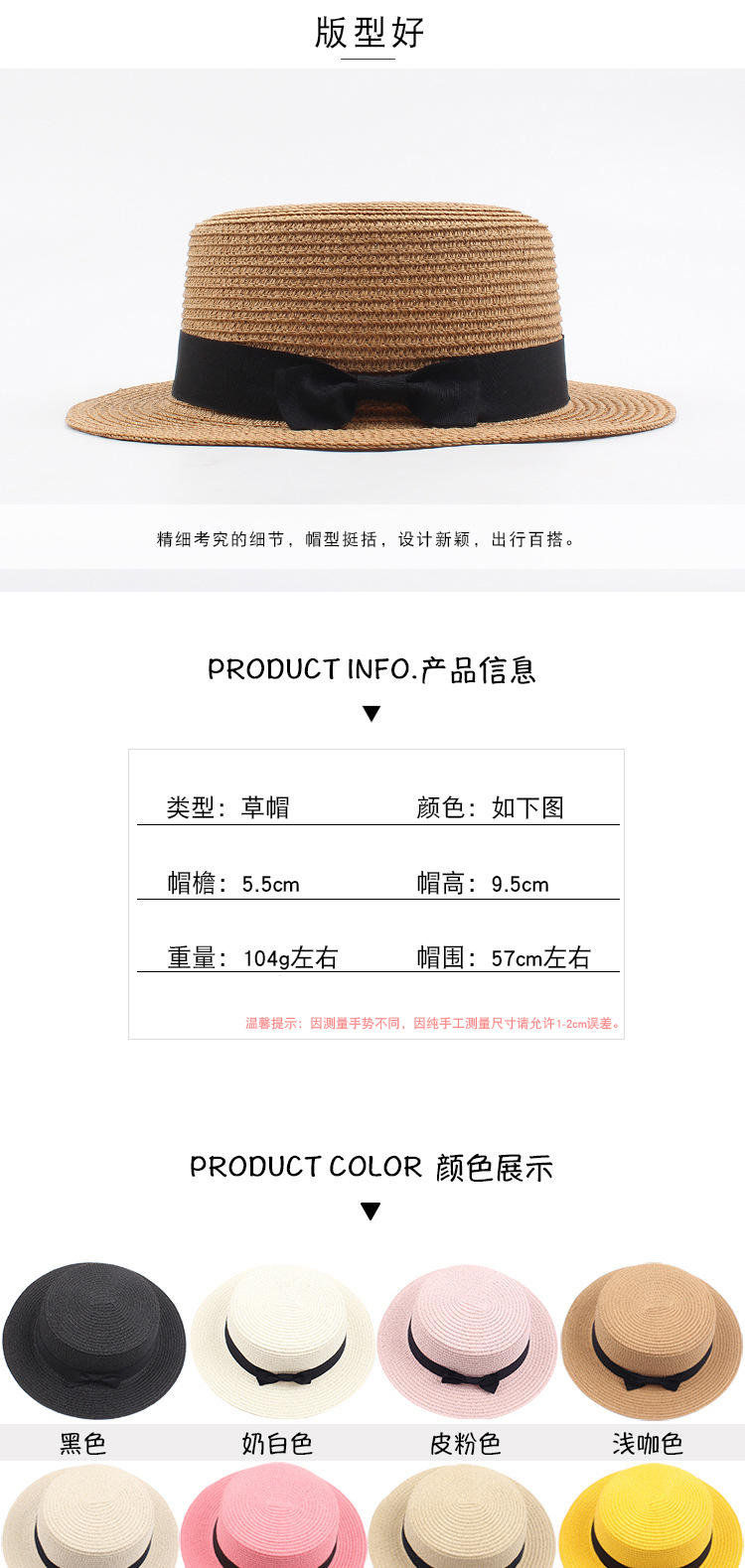 봄 여름 밀짚모 맞춤 제작 영국 레트로 스타일 유럽풍 리본 플랫탑 모자 햇빛 차단 해변 모자 맞춤 제작스토어 가기