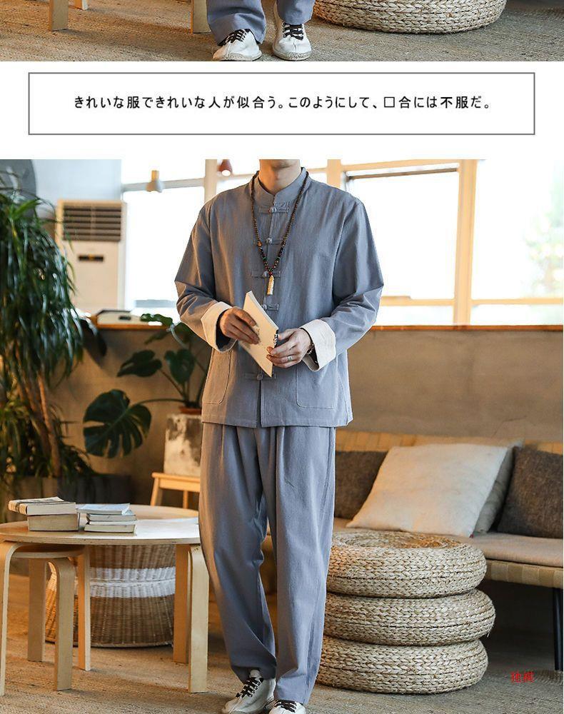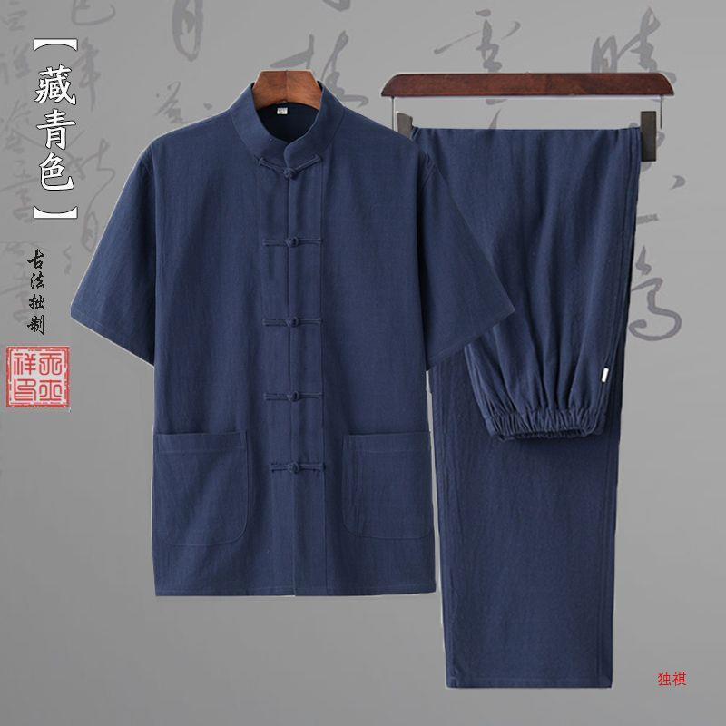 당나라 세트 남성면 및 리넨 고대 세트 세트 차 세트 고대 스타일 명상 세트 중국 스타일 중산 세트 봄 여름 가을 민족 세트 한푸스토어 가기