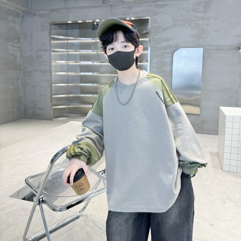 아동복 소년 봄과 가을 긴 소매 티셔츠 2024 새로운 어린이 가을 스웨트 셔츠 큰 어린이베이스 셔츠 트렌디 쿨 T