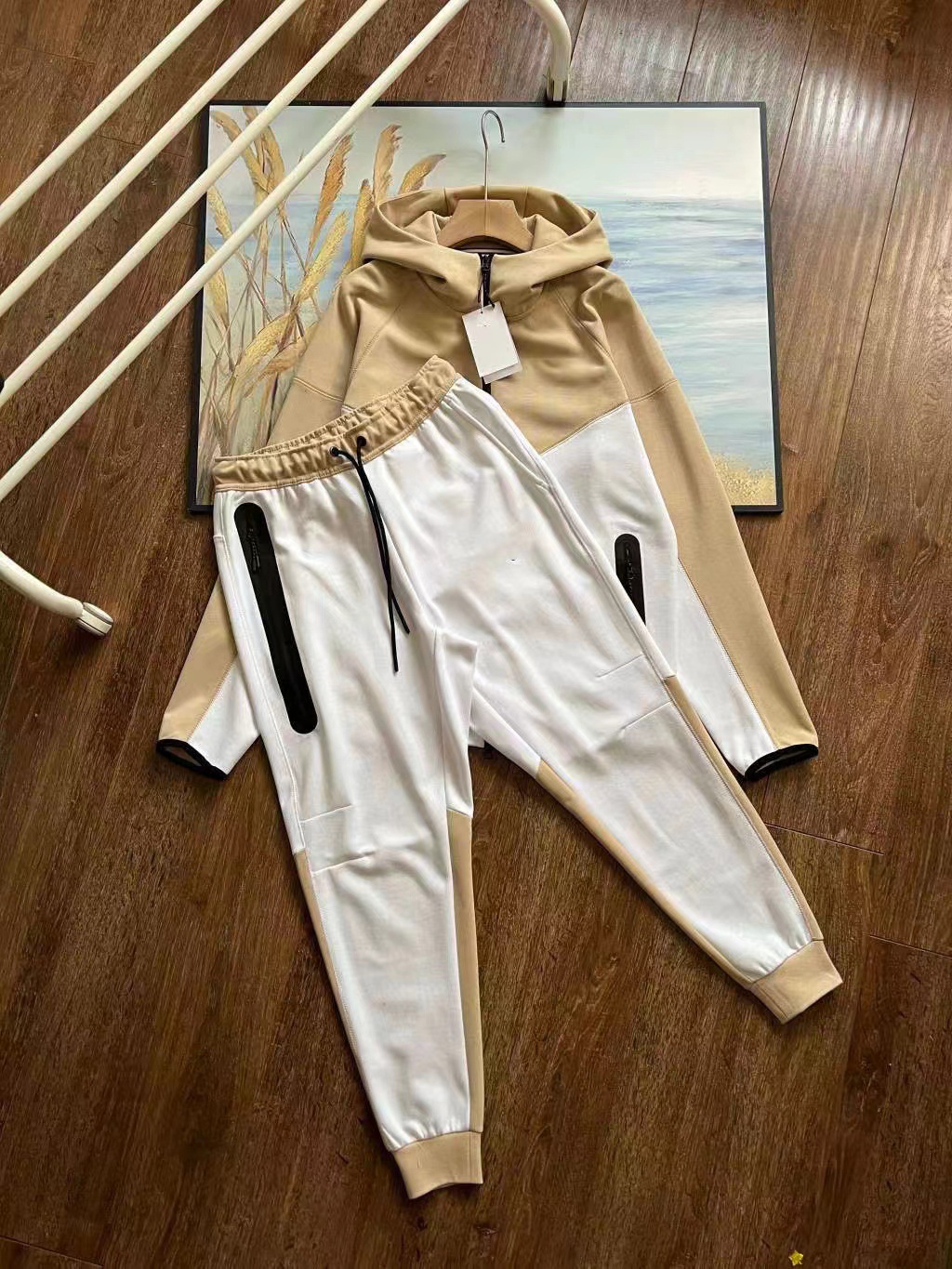 봄과 가을 새로운 스포츠 세트 남자 니트 캐주얼 후드 카디건 922 재킷 및 002 세트스토어 가기