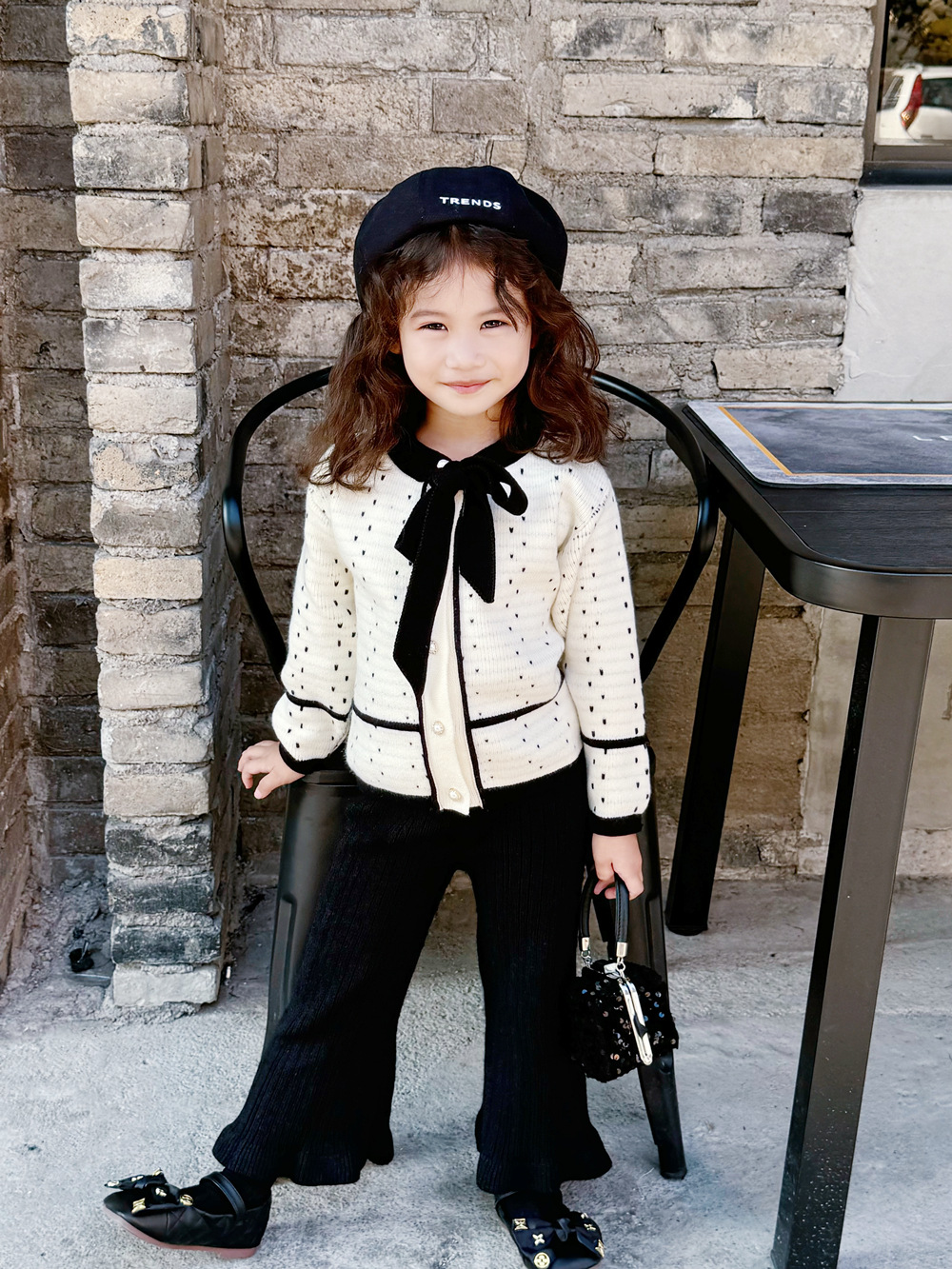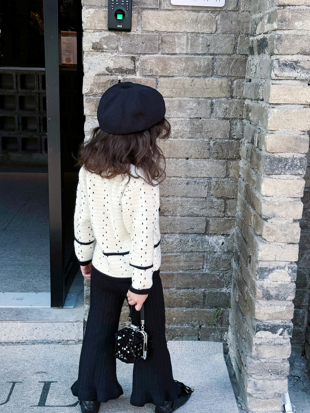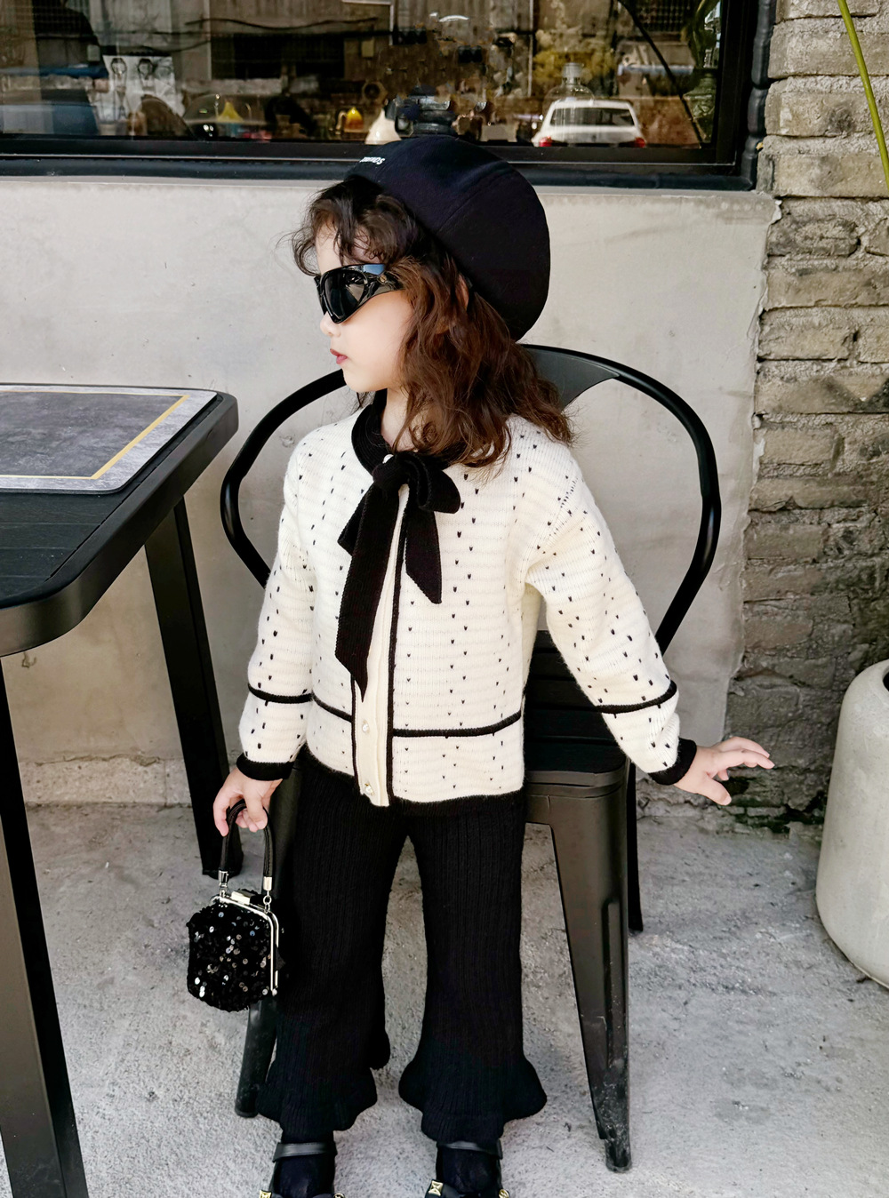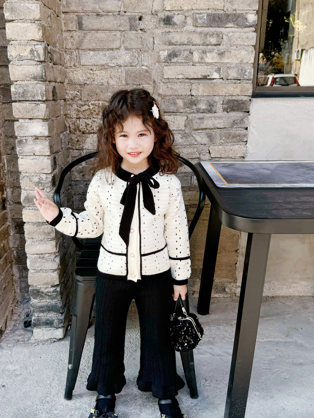 진용 아동복 여아 샤넬 스타일 니트 스웨터 카디건 가을 새 어린이 양모 코트 바지 세트