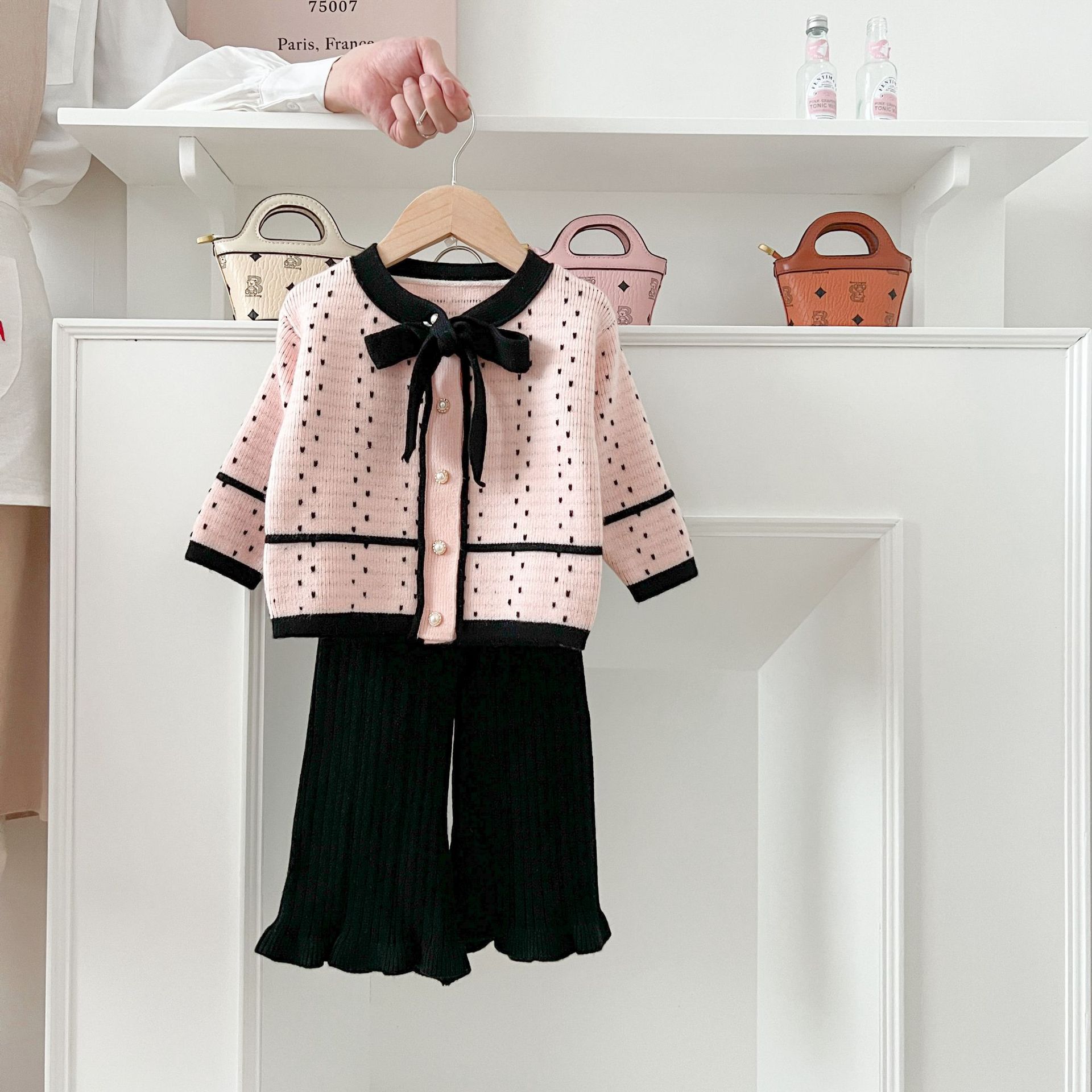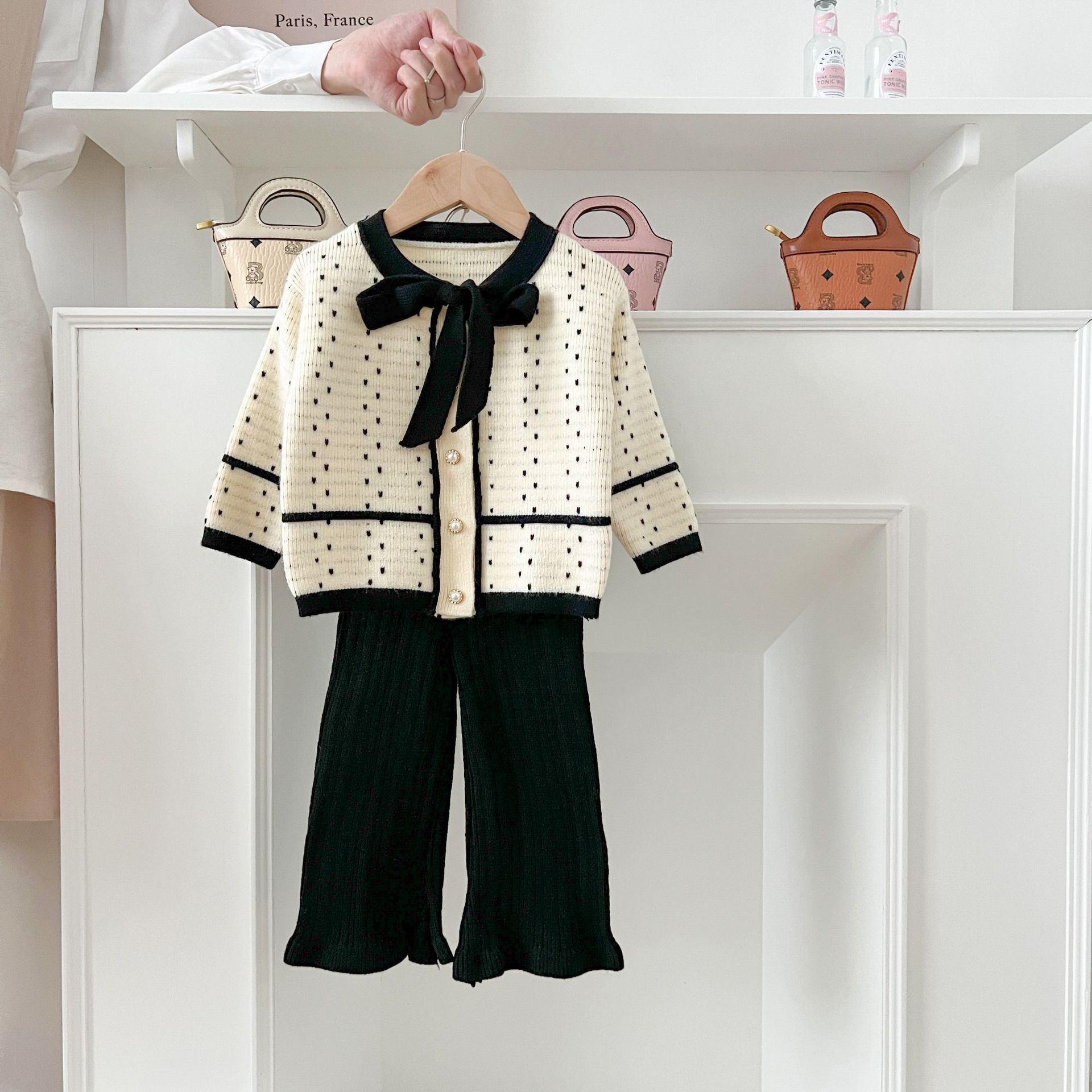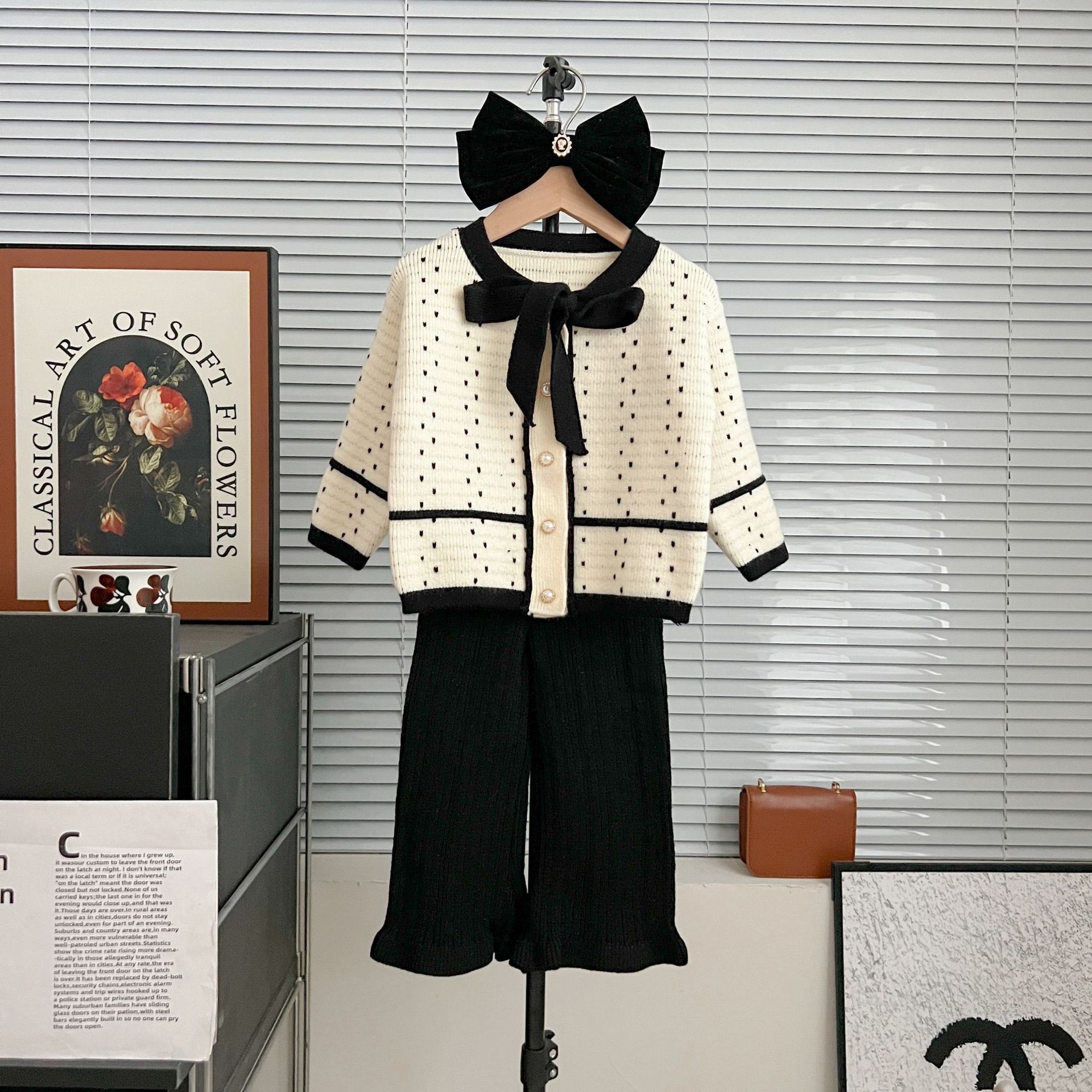 진용 아동복 여아 샤넬 스타일 니트 스웨터 카디건 가을 새 어린이 양모 코트 바지 세트