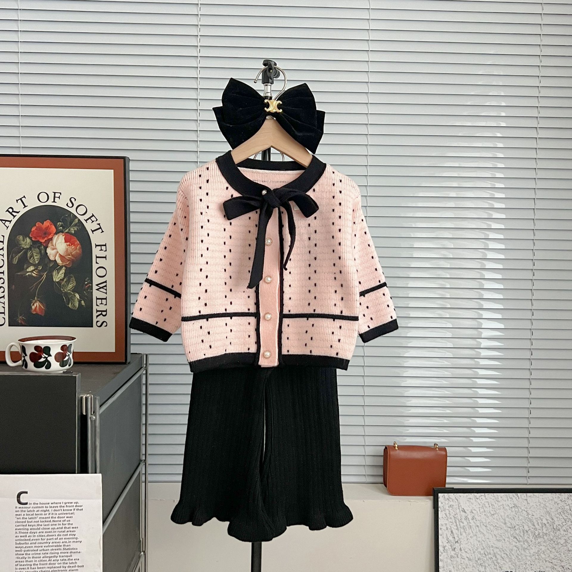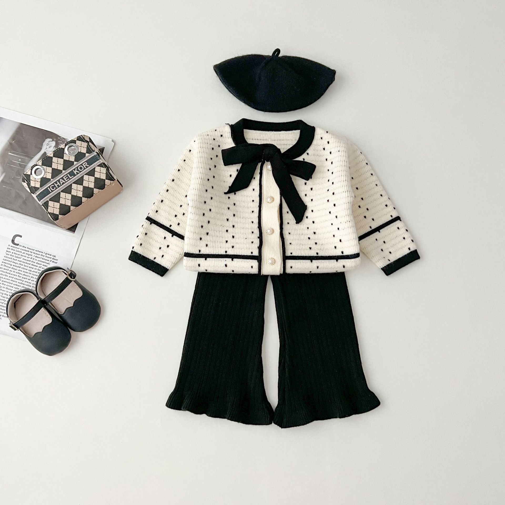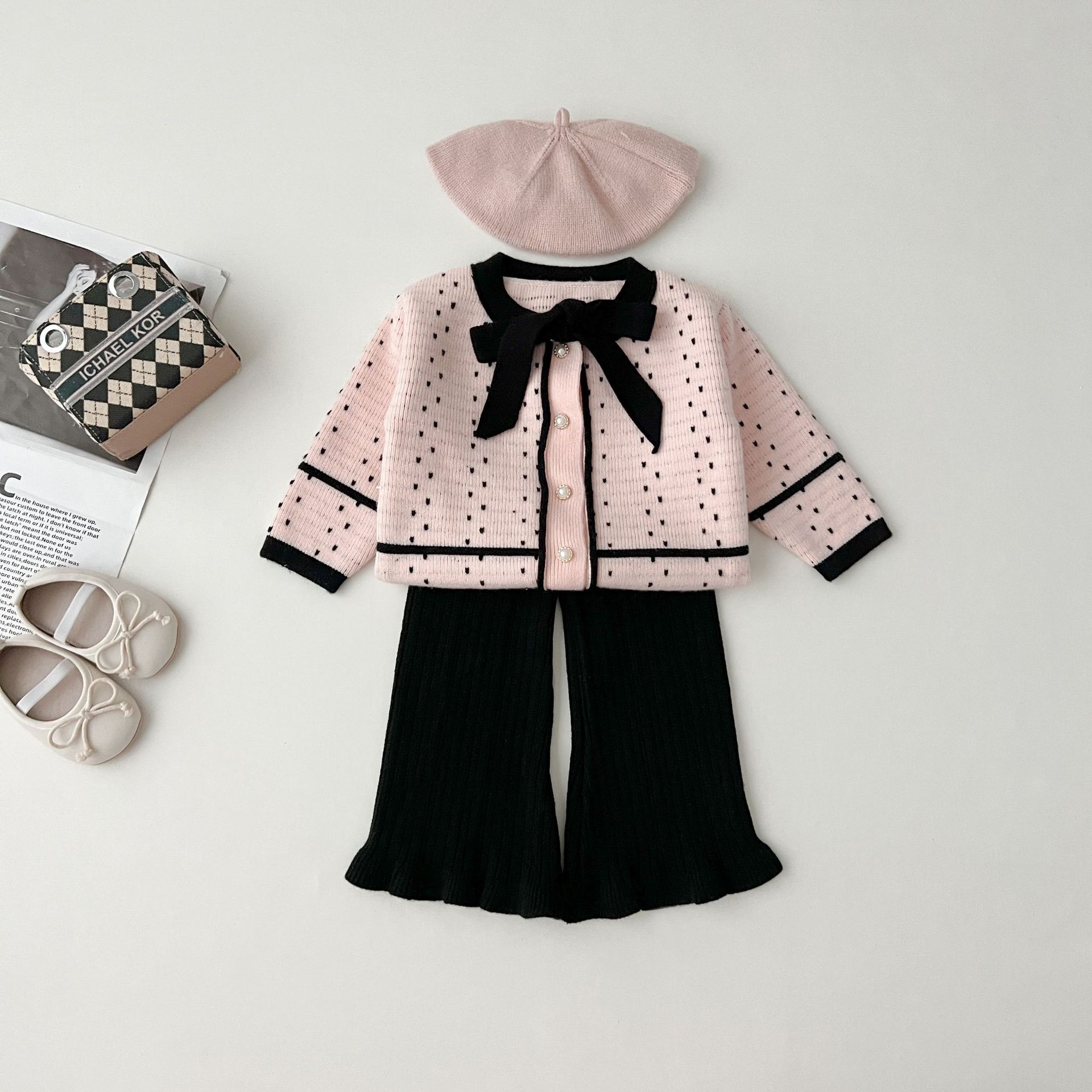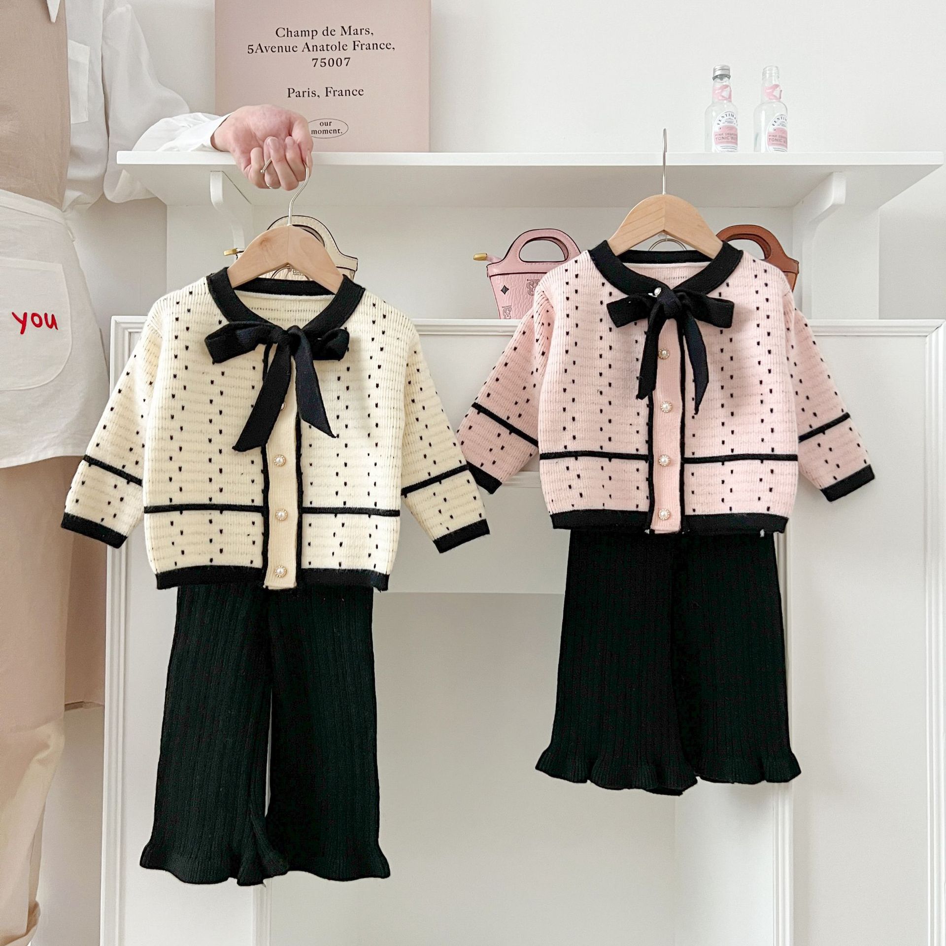 진용 아동복 여아 샤넬 스타일 니트 스웨터 카디건 가을 새 어린이 양모 코트 바지 세트
