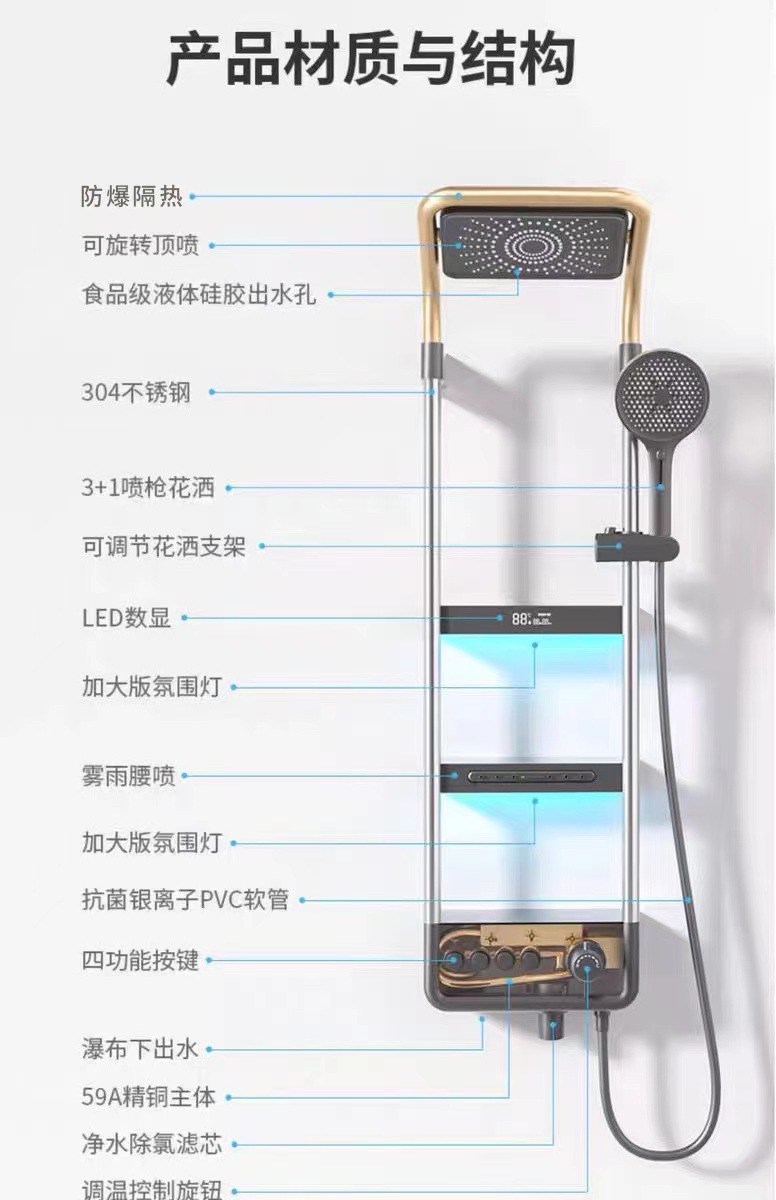 새로운 샤워 세트 홈 욕실 스토리지 일정한 온도 디지털 디스플레이 버튼 레인 샤워 마사지 목욕 욕실 샤워