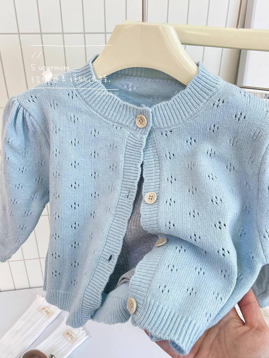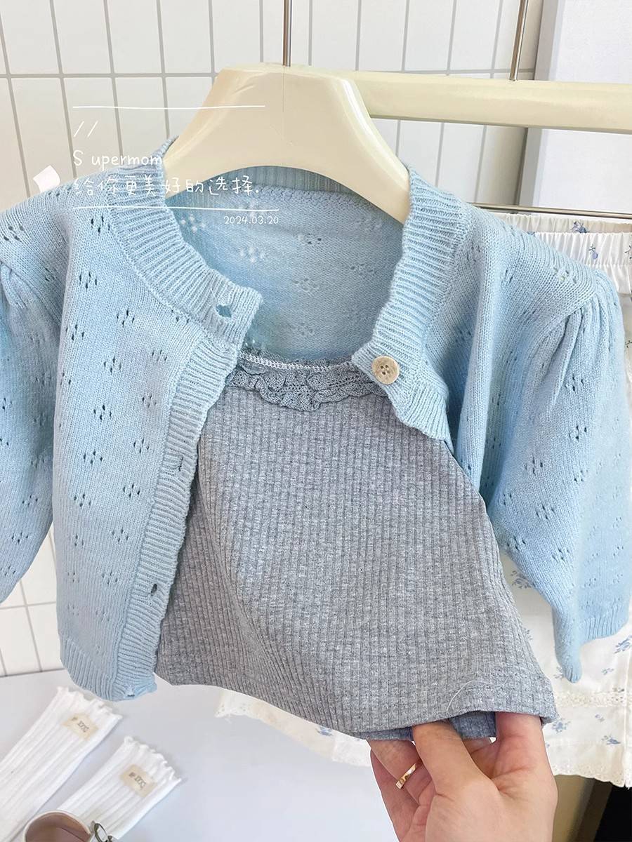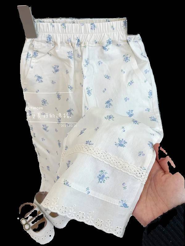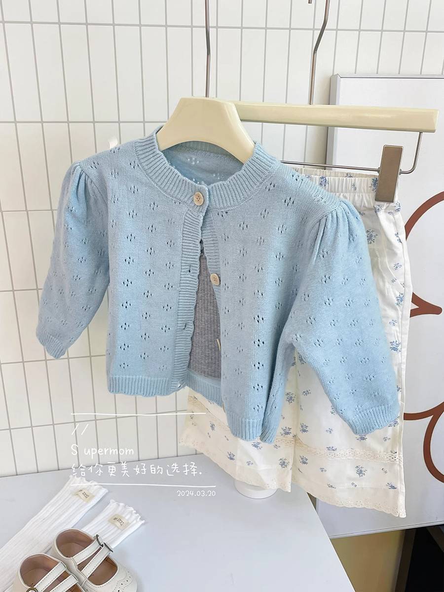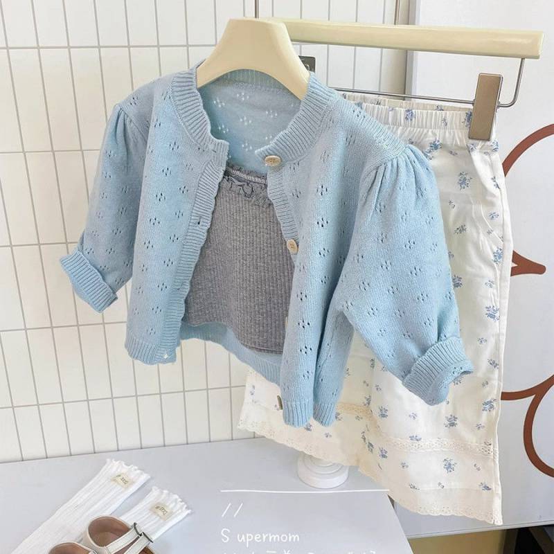 한국식 아동복 2024 새 봄 소녀 카디건 재킷 어린이 서양식 올매치 플로랄 바지 투피스 패셔너블 세트