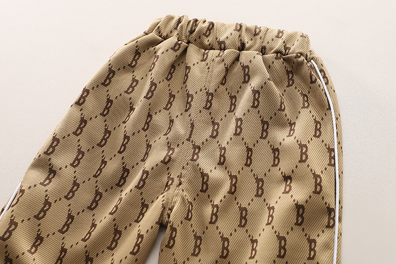 대외 무역 아동복 도매 2024 년 봄과 가을 새로운 어린이 전체 인쇄 편지 가방 지퍼 셔츠 2 피스 남녀 아동복