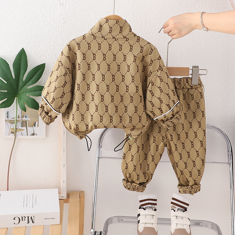 대외 무역 아동복 도매 2024 년 봄과 가을 새로운 어린이 전체 인쇄 편지 가방 지퍼 셔츠 2 피스 남녀 아동복스토어 가기
