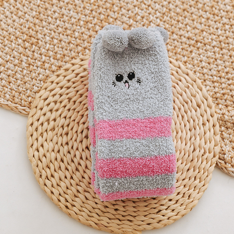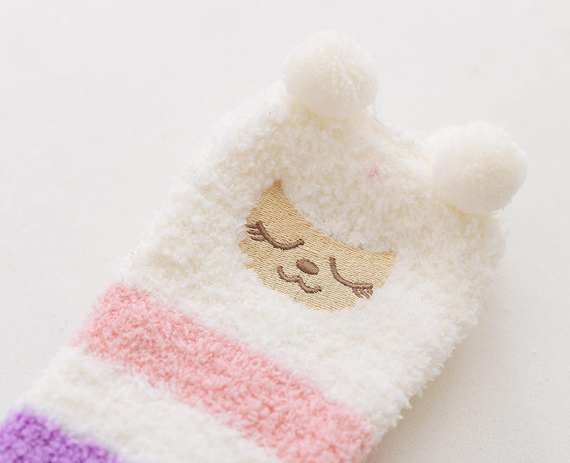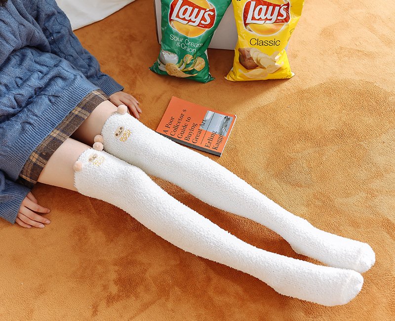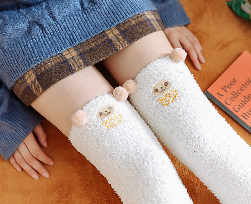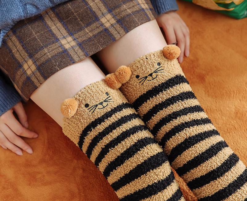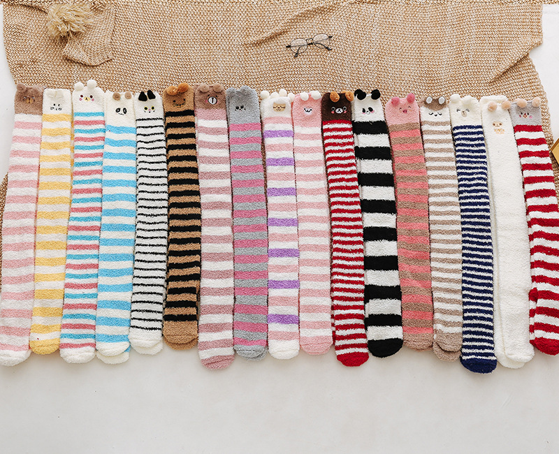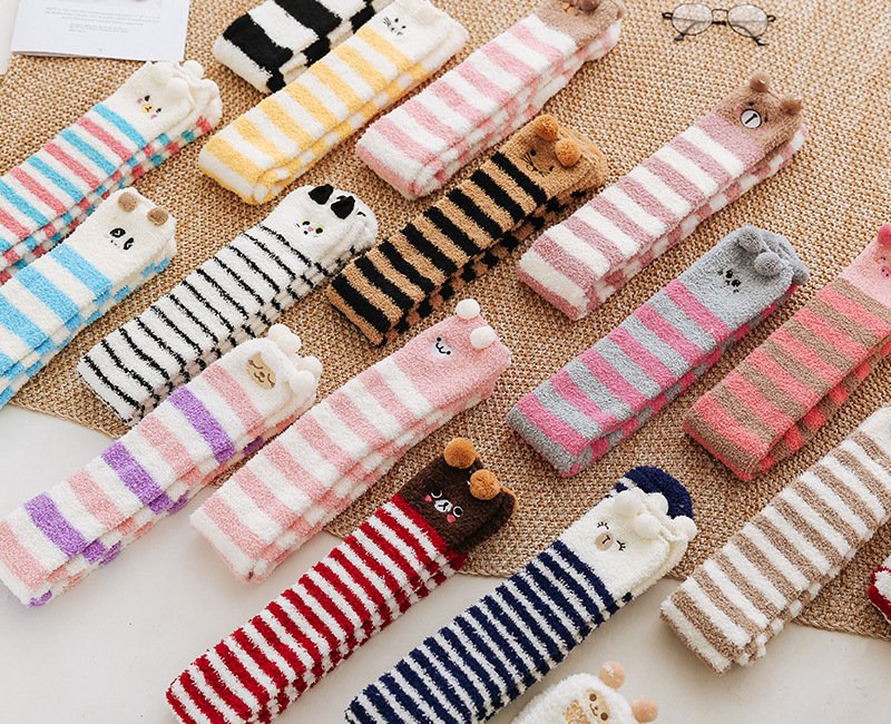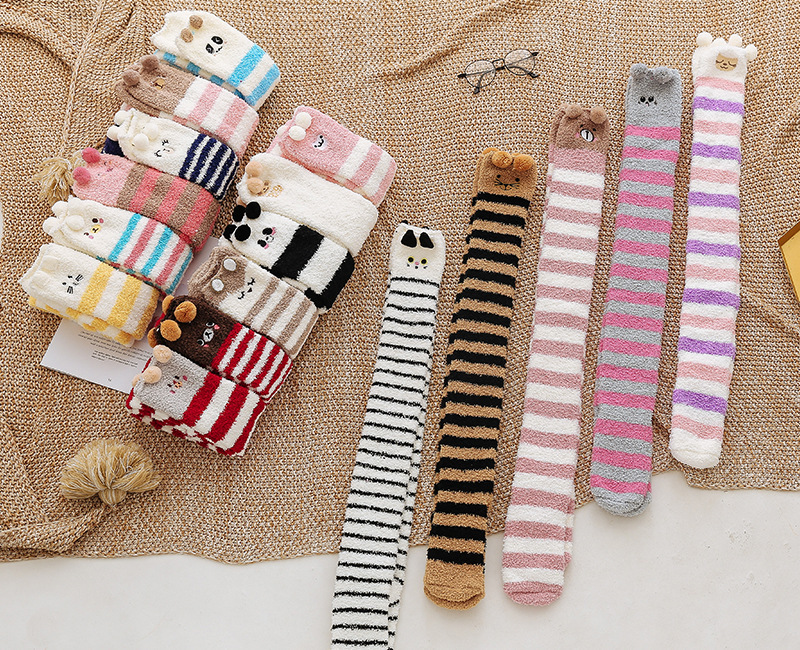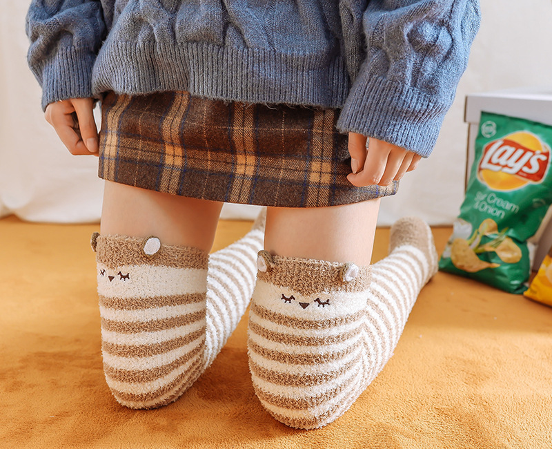 17 입체 만화 무릎 높은 여성의 따뜻한 수면 양말 산호 양털 홈 바닥 양말 반 벨벳 양말 제조 업체스토어 가기