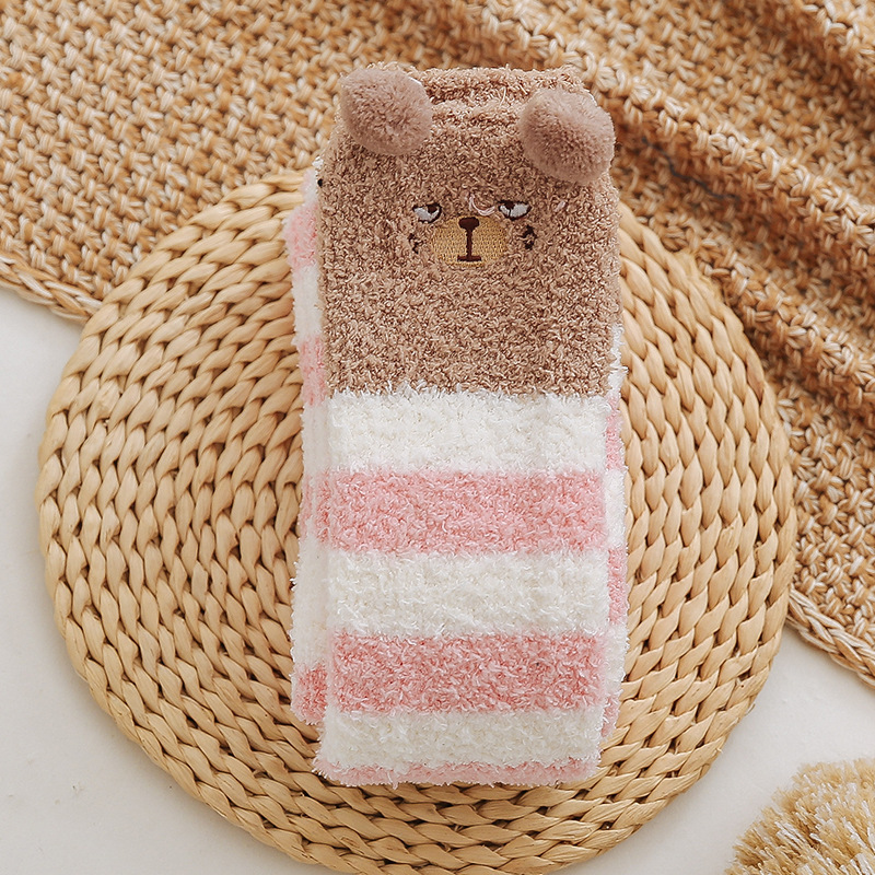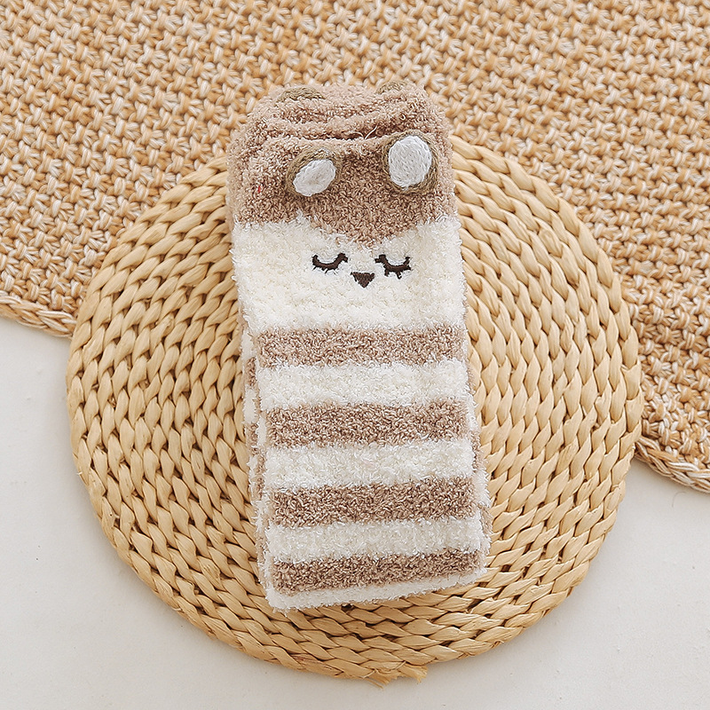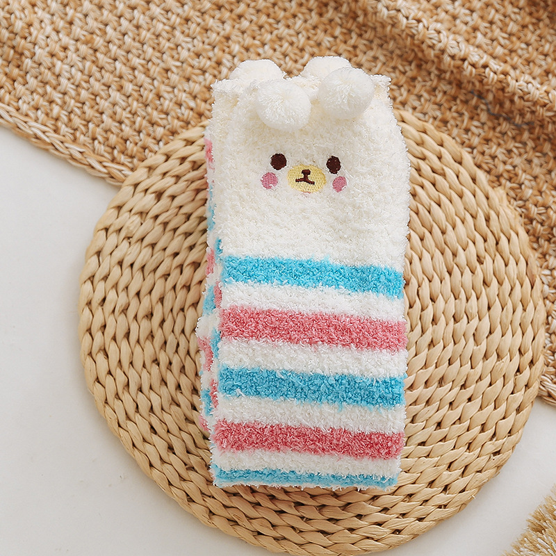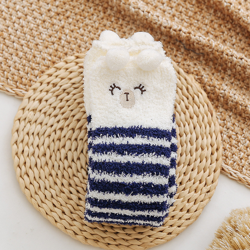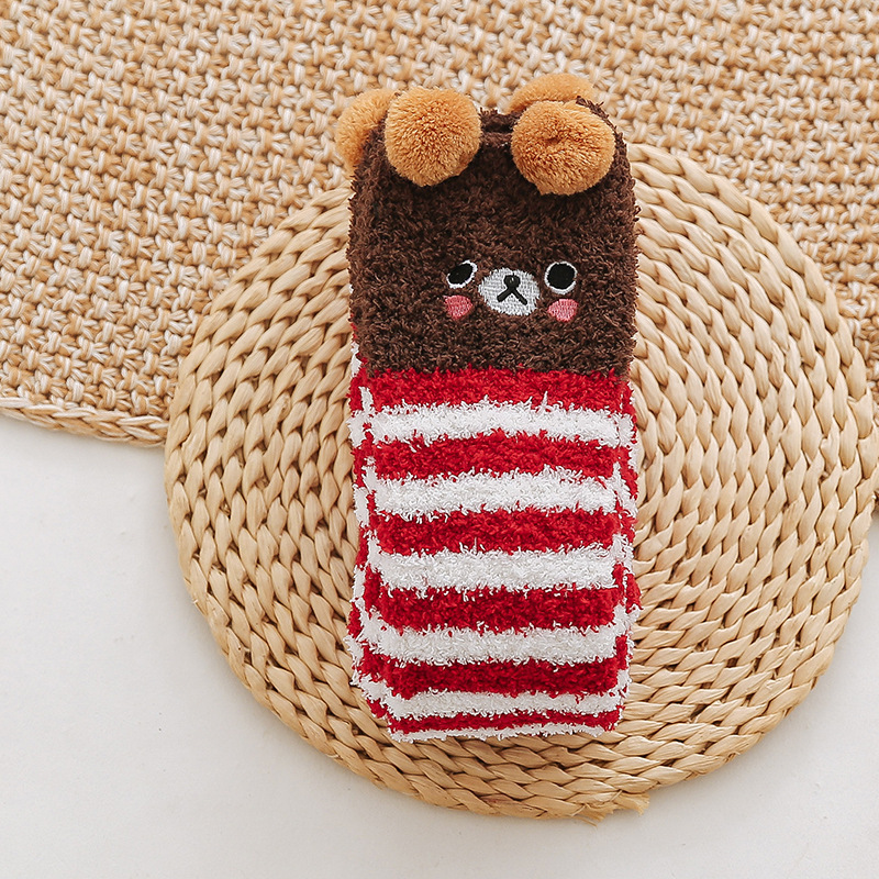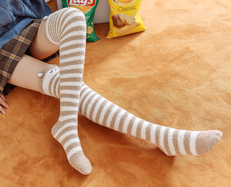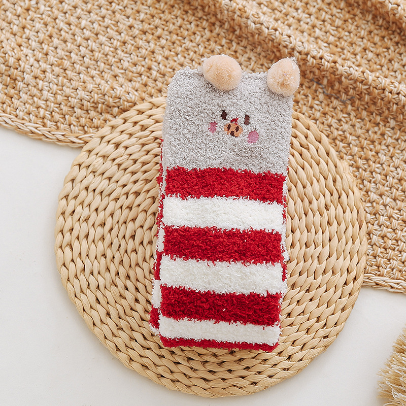17 입체 만화 무릎 높은 여성의 따뜻한 수면 양말 산호 양털 홈 바닥 양말 반 벨벳 양말 제조 업체스토어 가기