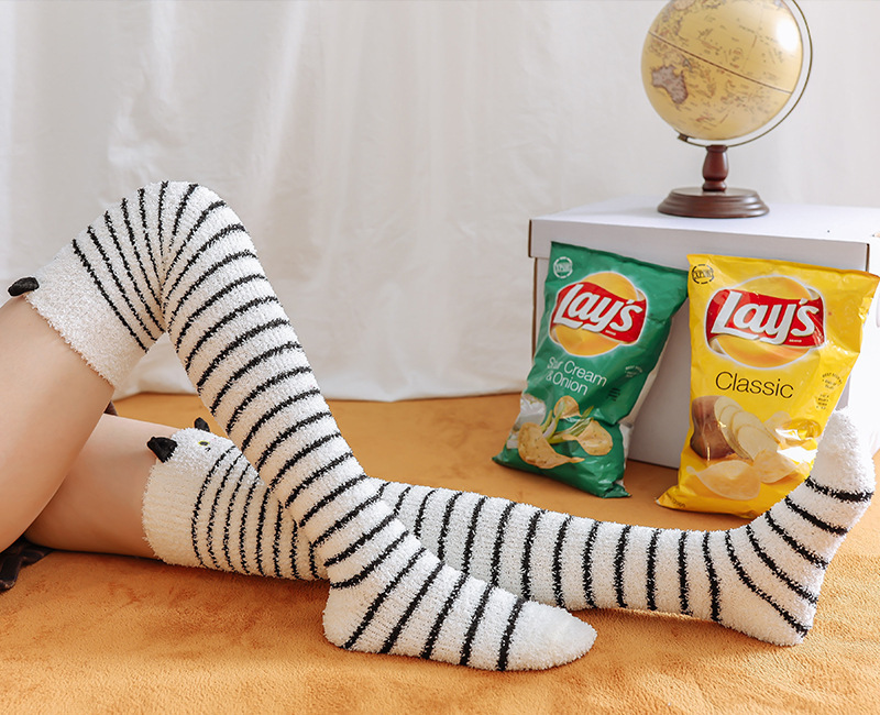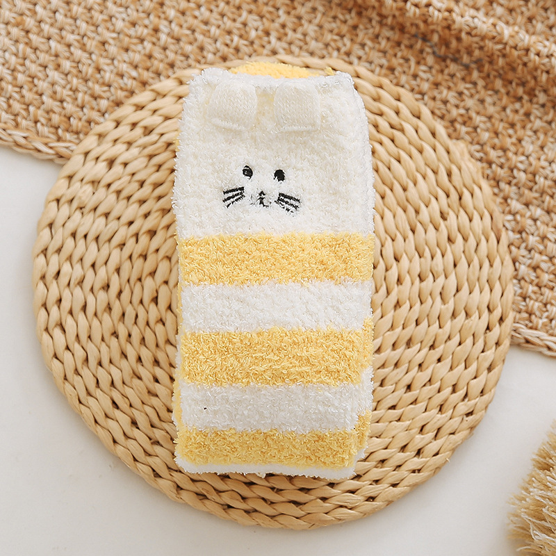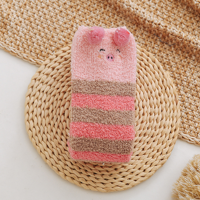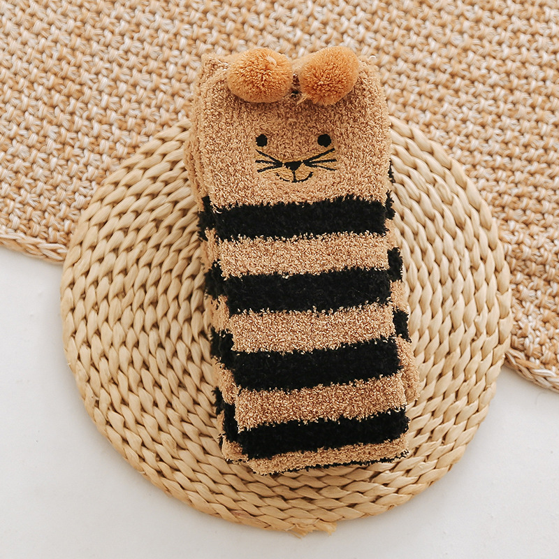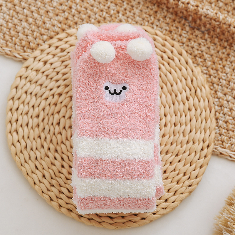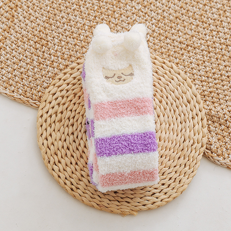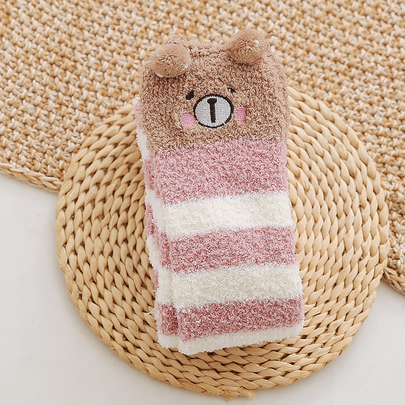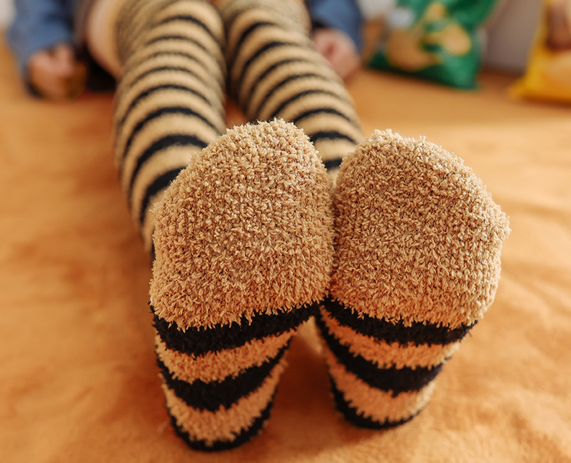 17 입체 만화 무릎 높은 여성의 따뜻한 수면 양말 산호 양털 홈 바닥 양말 반 벨벳 양말 제조 업체스토어 가기
