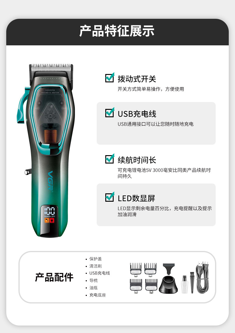 VGR674 크로스보더 전기 이발기 미용실 전문 오일 헤드 전기 이발기 고속 전기 이발기(베이스 포함)스토어 가기