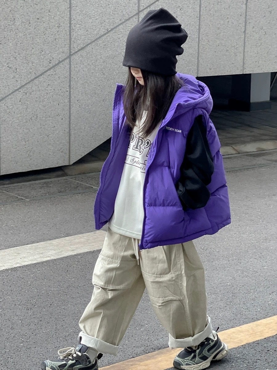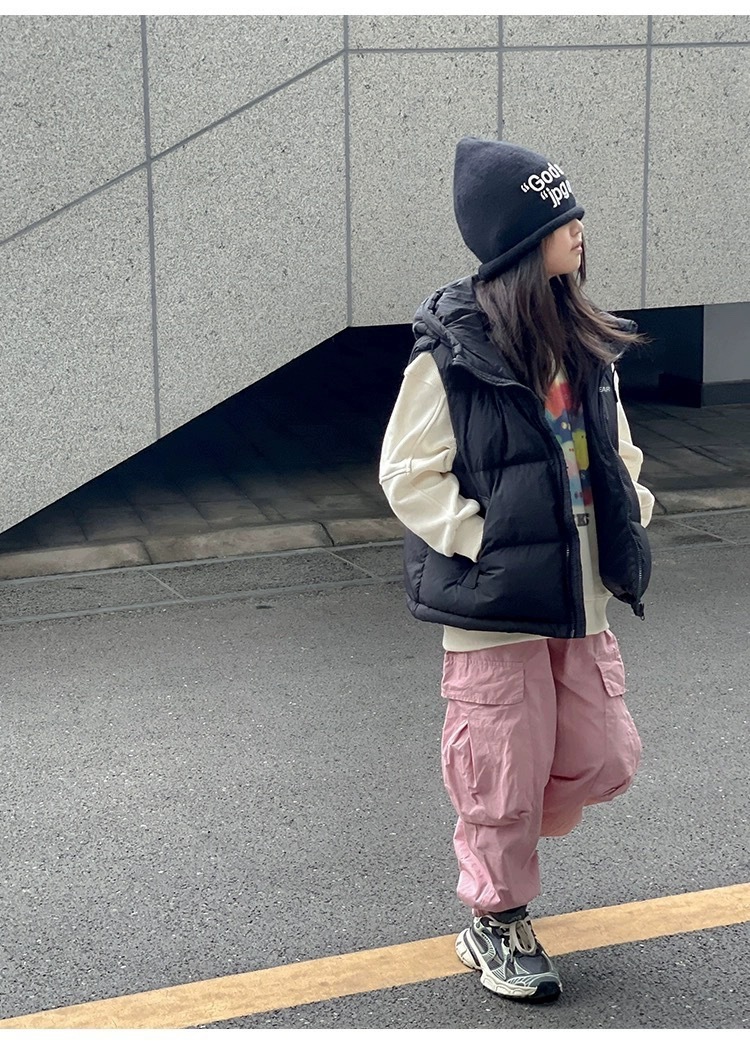 2025 아동용 면 조끼 남아 여아용 따뜻한 후드가 달린 중대형 아동용 두꺼운 조끼 유아용 외출복 교복 무역용스토어 가기
