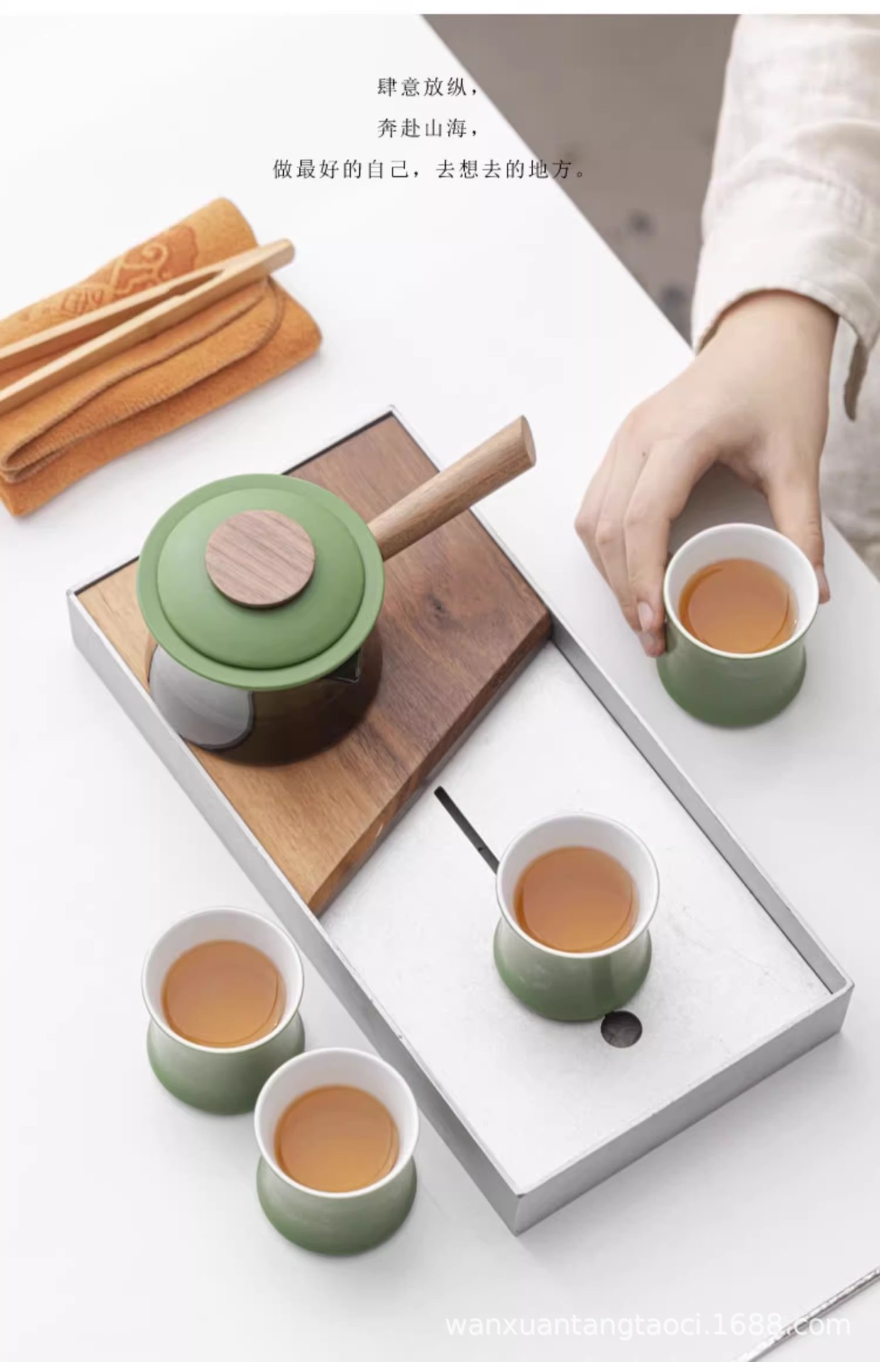 세라믹 차 컵 슬러빙 컵 차 시음 컵 대용량 단일 녹색 대나무 스타일 차 세트 세트 코일 냄비 전체 세트스토어 가기