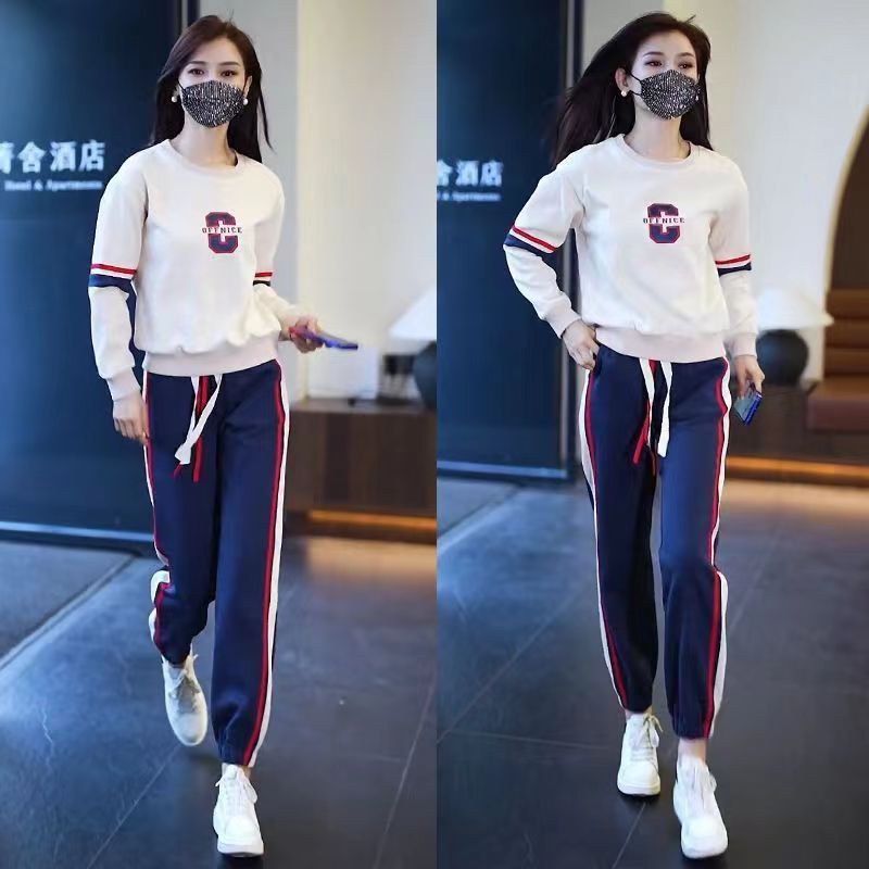 인터넷 연예인 폭발 플러스 사이즈 캐주얼 세트 2024 가을 패션 느슨한 슬림 땀 바지 스포츠 투피스 트렌디스토어 가기