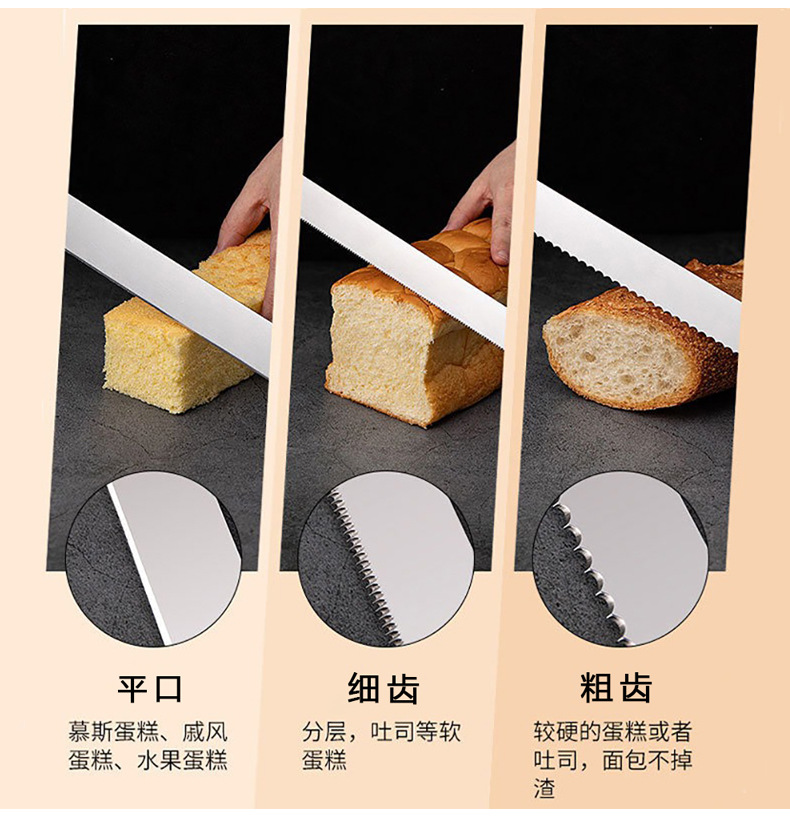 塑料柄不锈钢蛋糕刀锯齿刀 烘焙工具吐司刀蛋糕三明治切片面包刀
