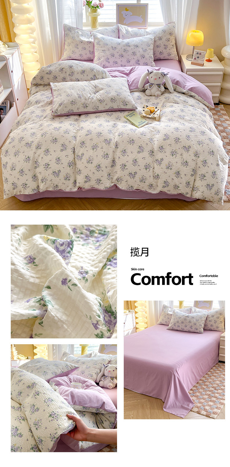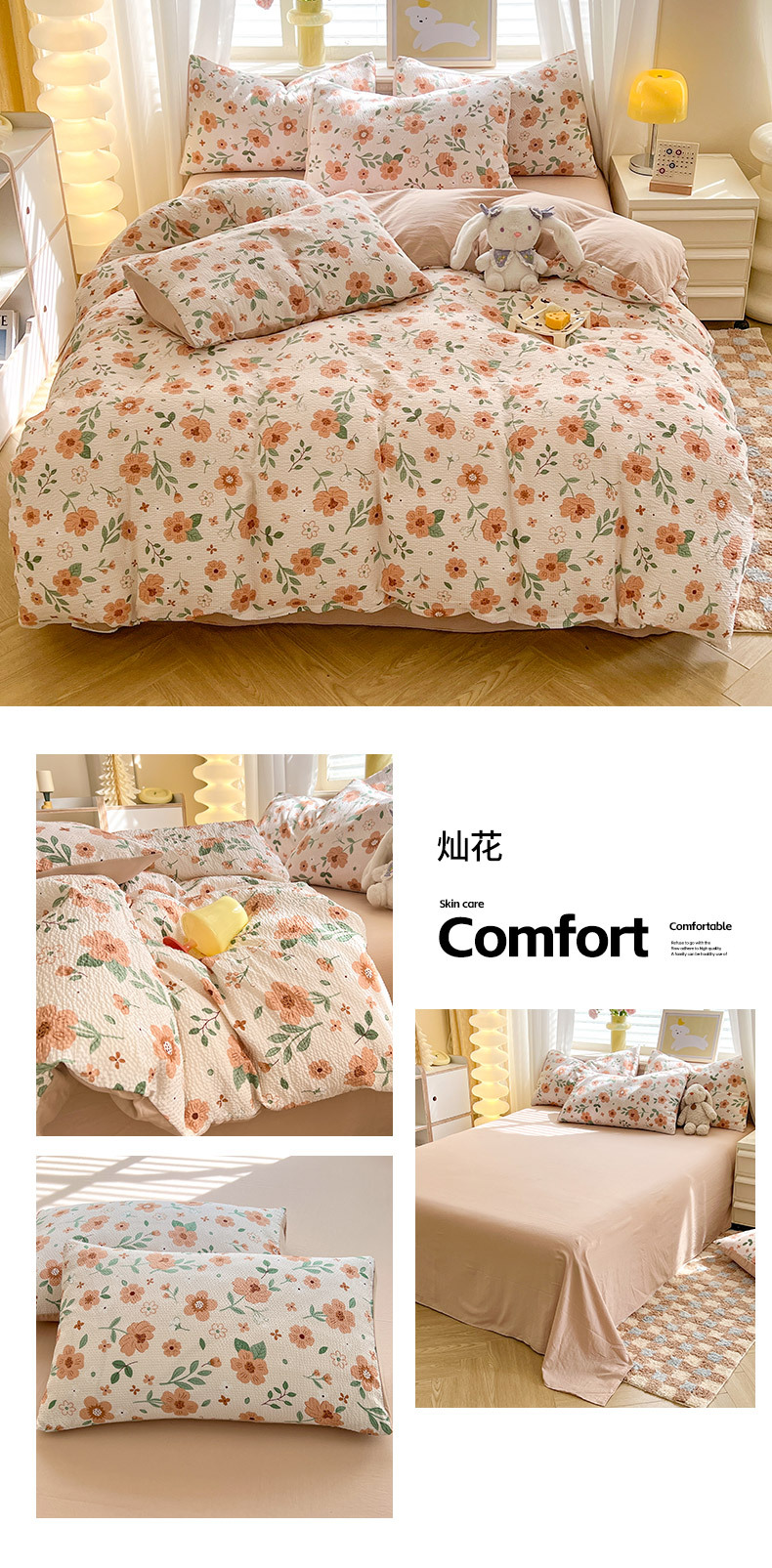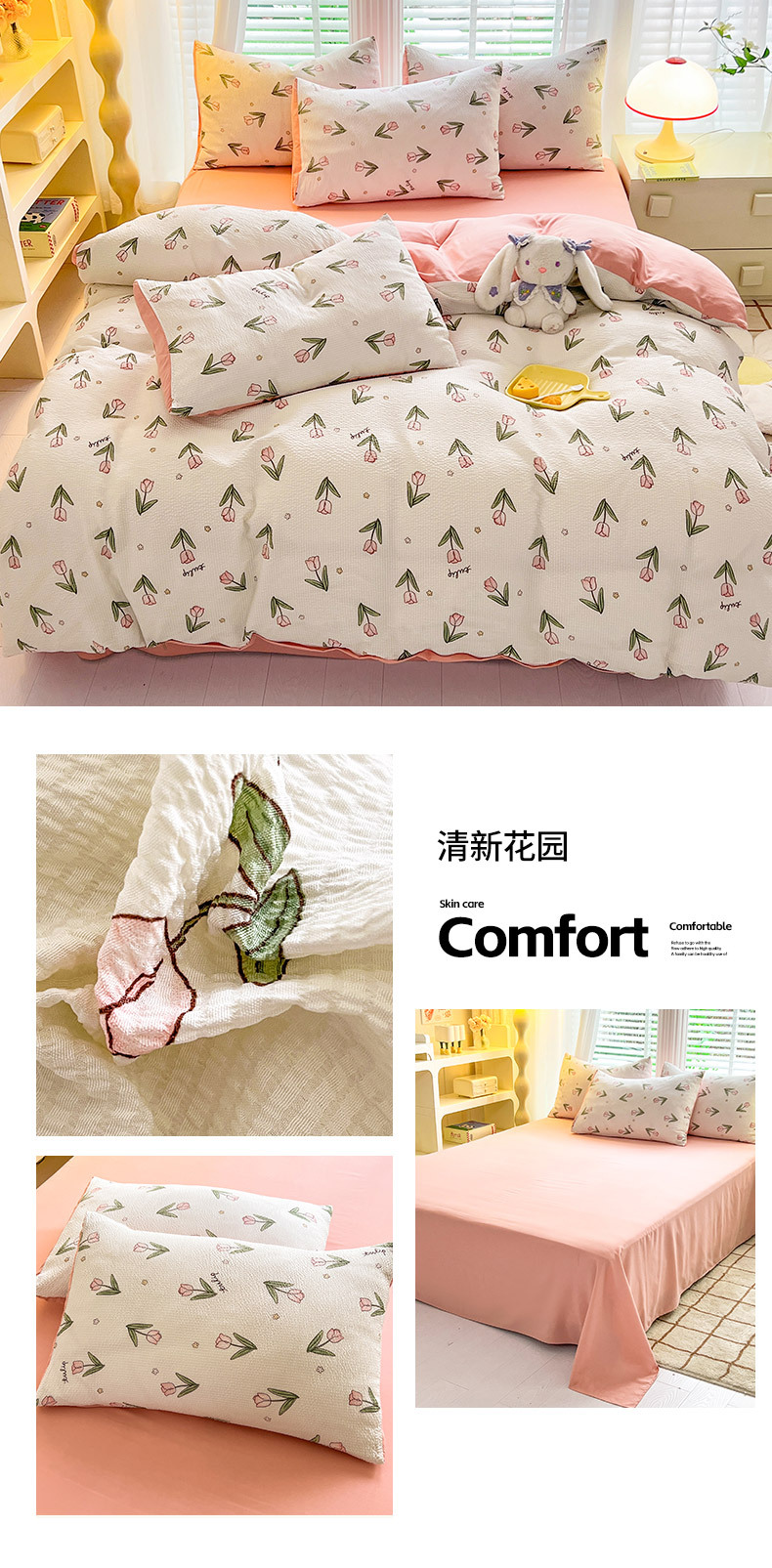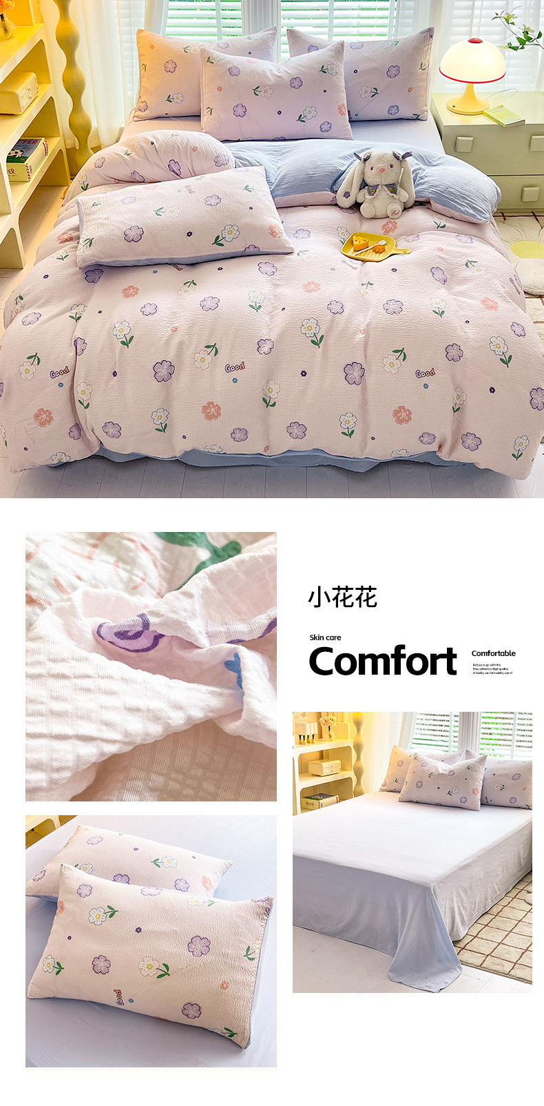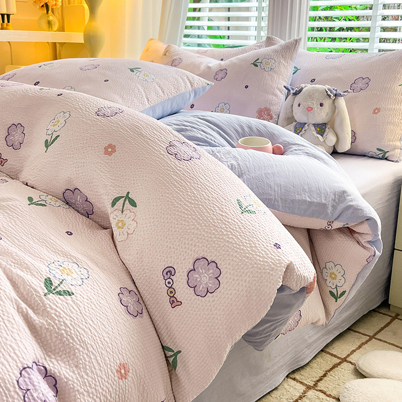클래스 자카드 버블 코튼 4 피스 세트 씻은 면화 꽃 침대 시트 퀼트 커버 침대 커버 침대 커버 학생 기숙사 3 피스 세트스토어 가기