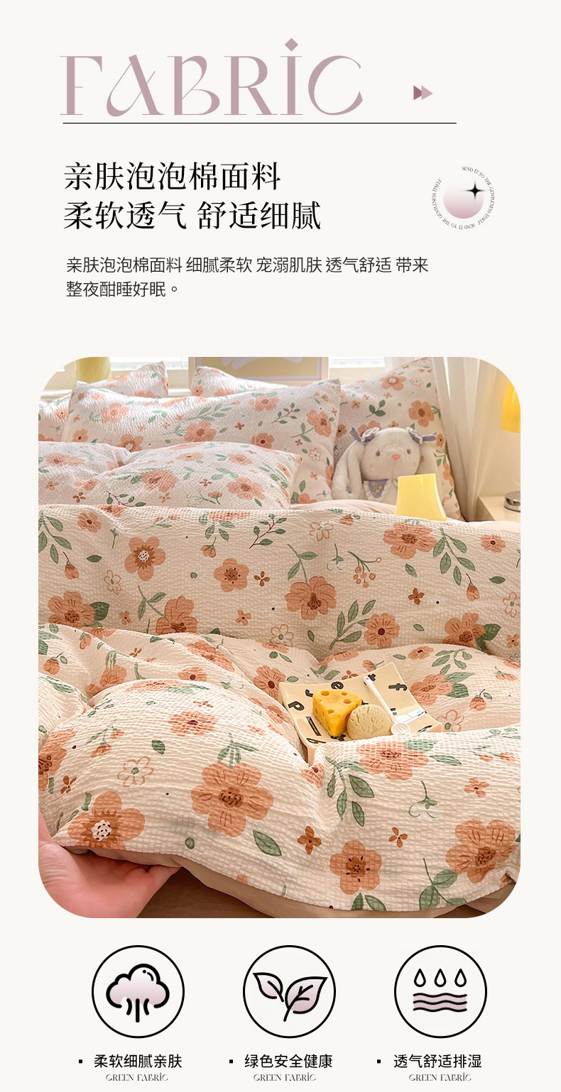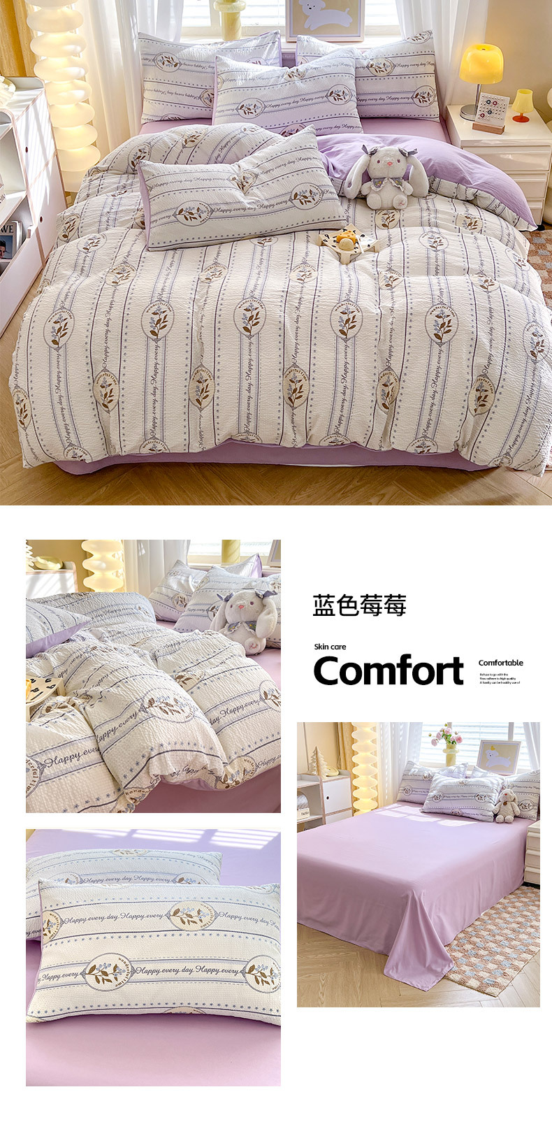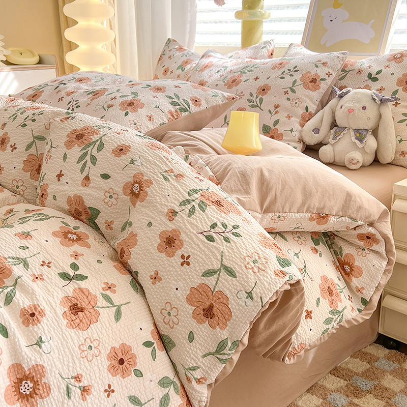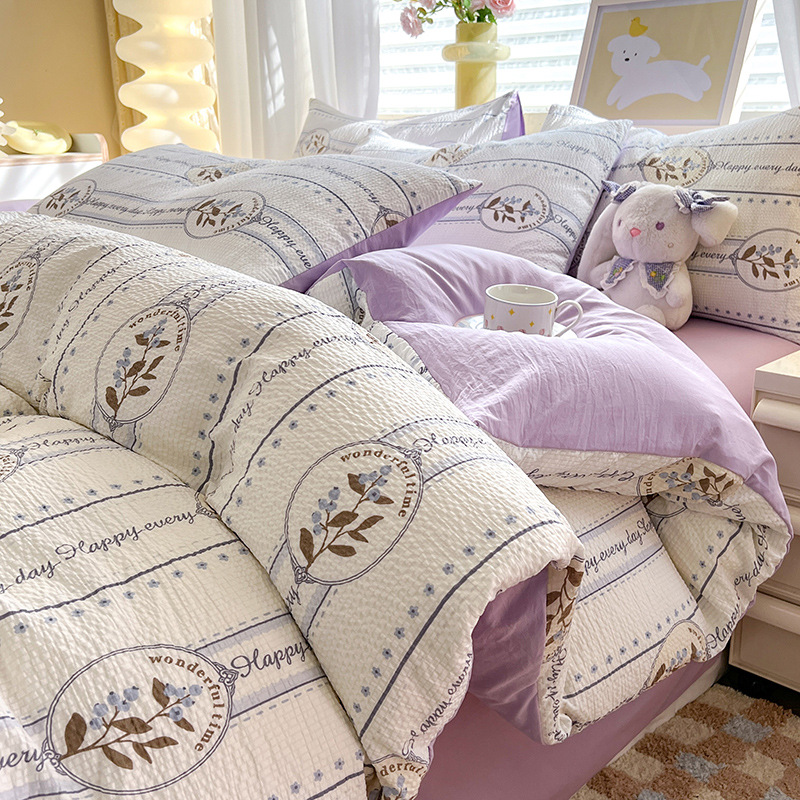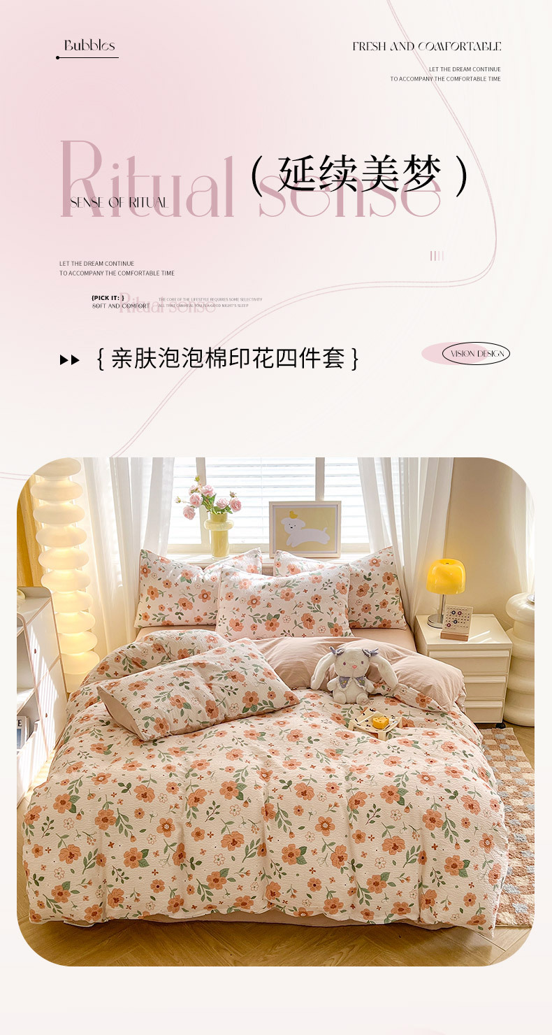 클래스 자카드 버블 코튼 4 피스 세트 씻은 면화 꽃 침대 시트 퀼트 커버 침대 커버 침대 커버 학생 기숙사 3 피스 세트스토어 가기