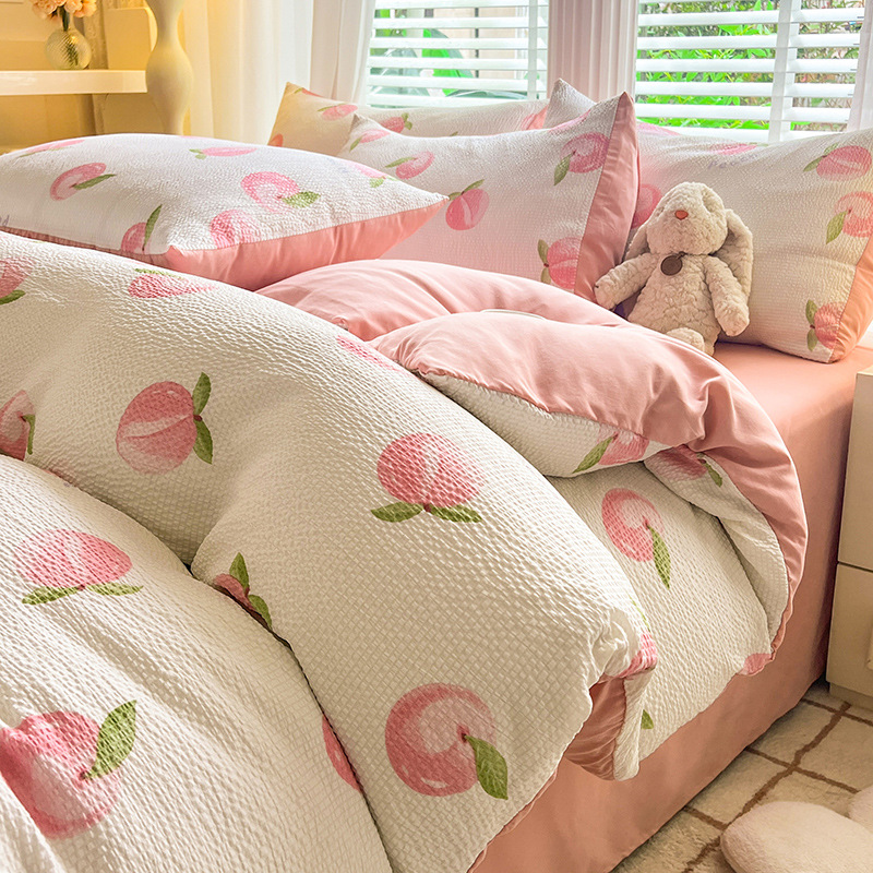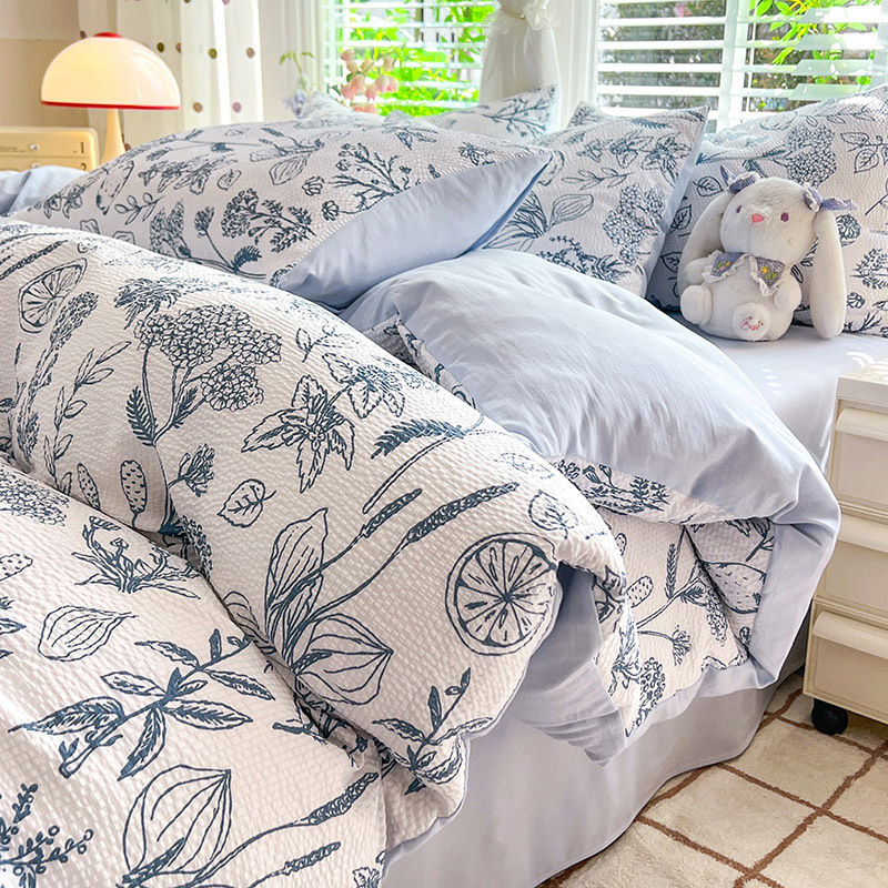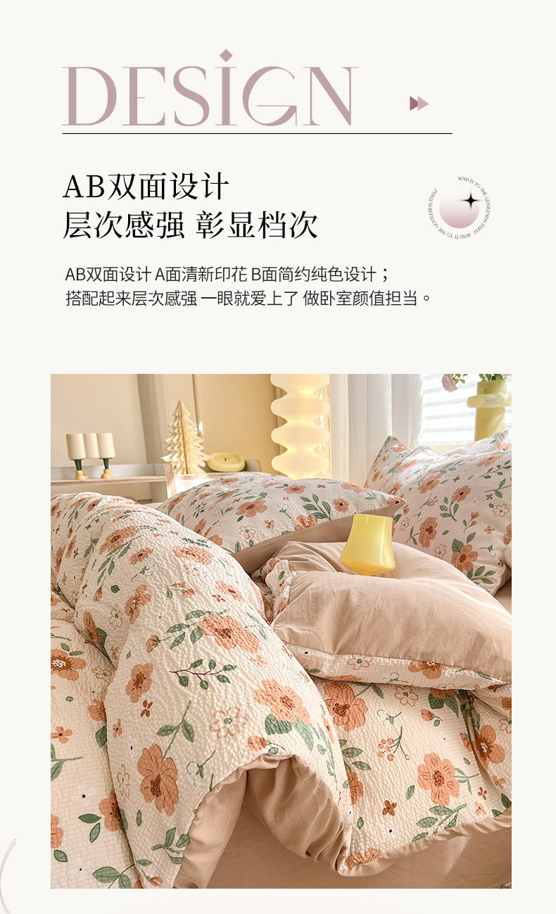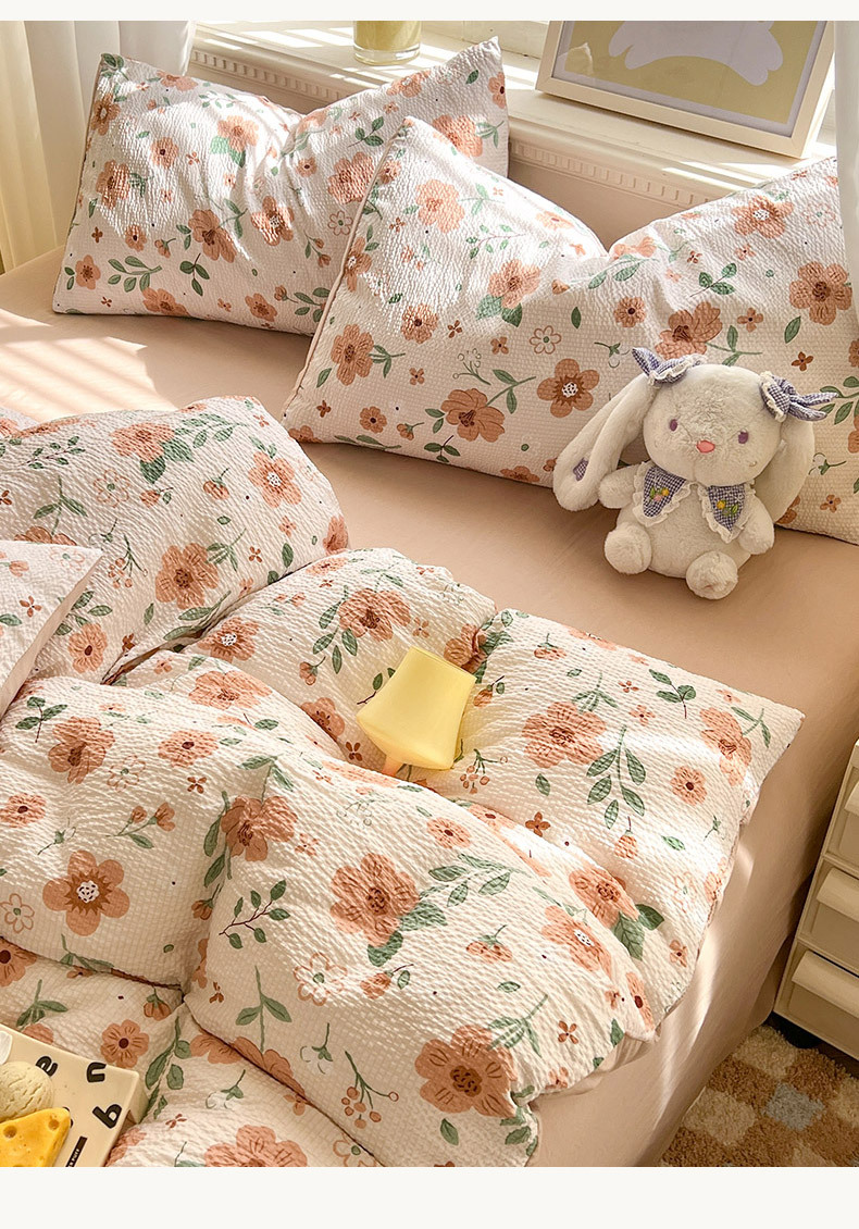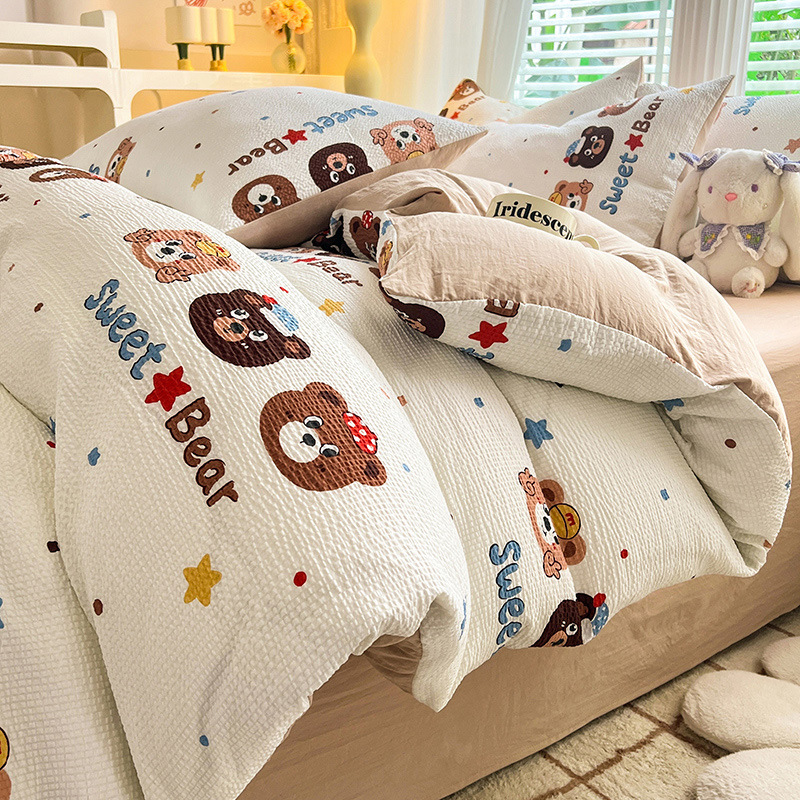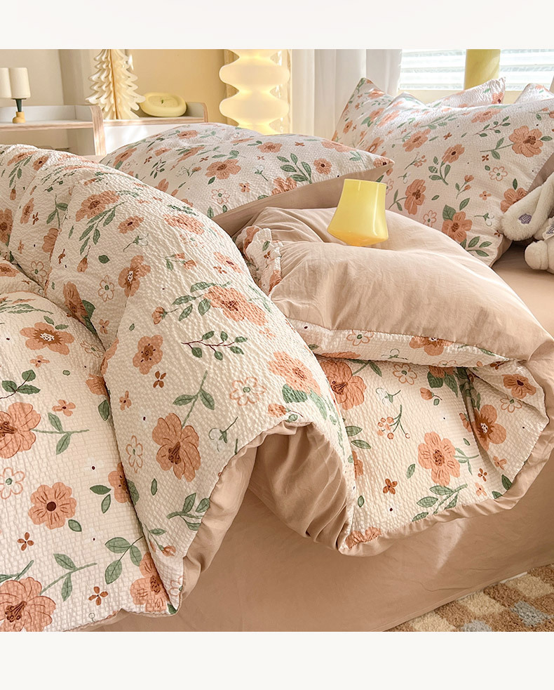 클래스 자카드 버블 코튼 4 피스 세트 씻은 면화 꽃 침대 시트 퀼트 커버 침대 커버 침대 커버 학생 기숙사 3 피스 세트스토어 가기