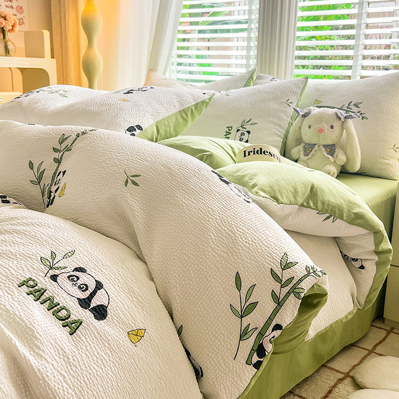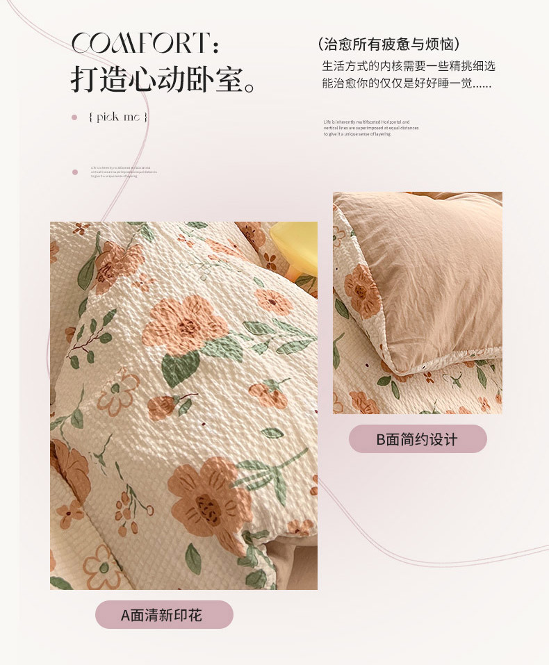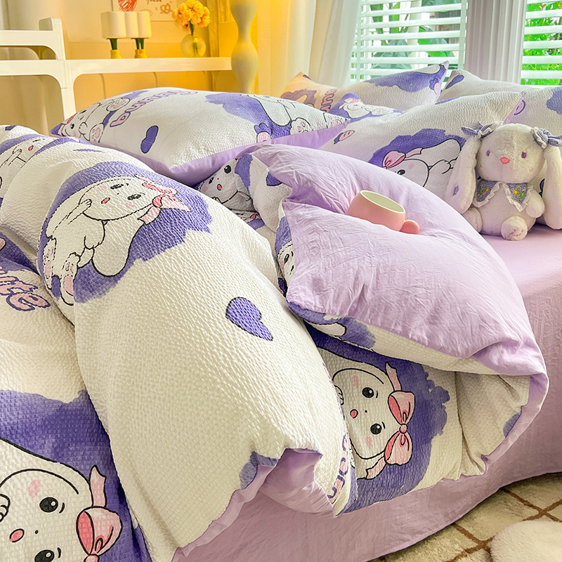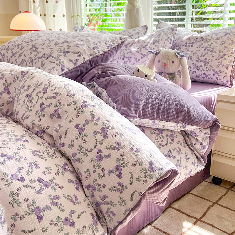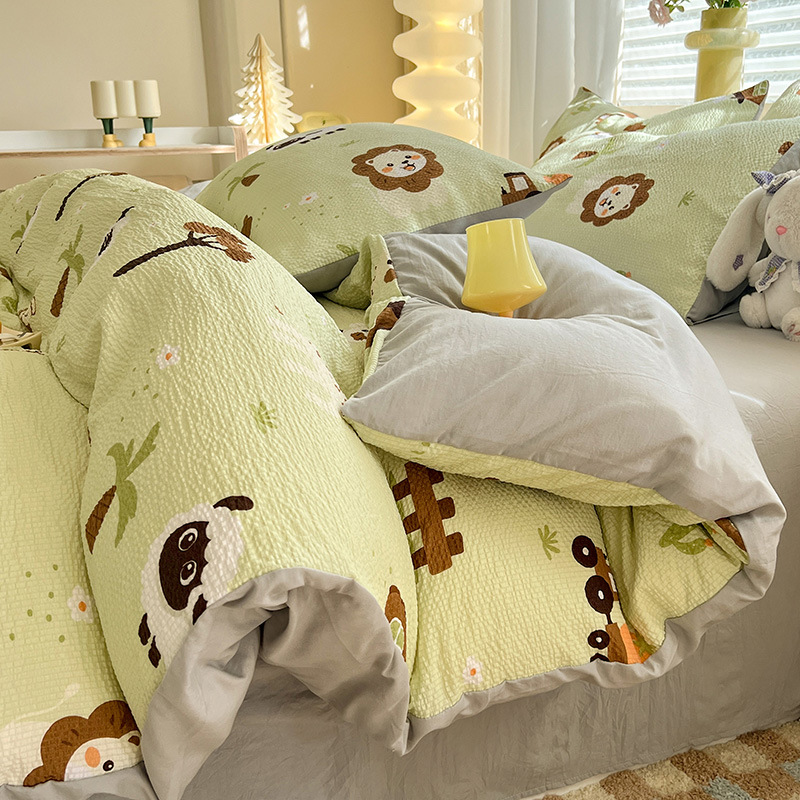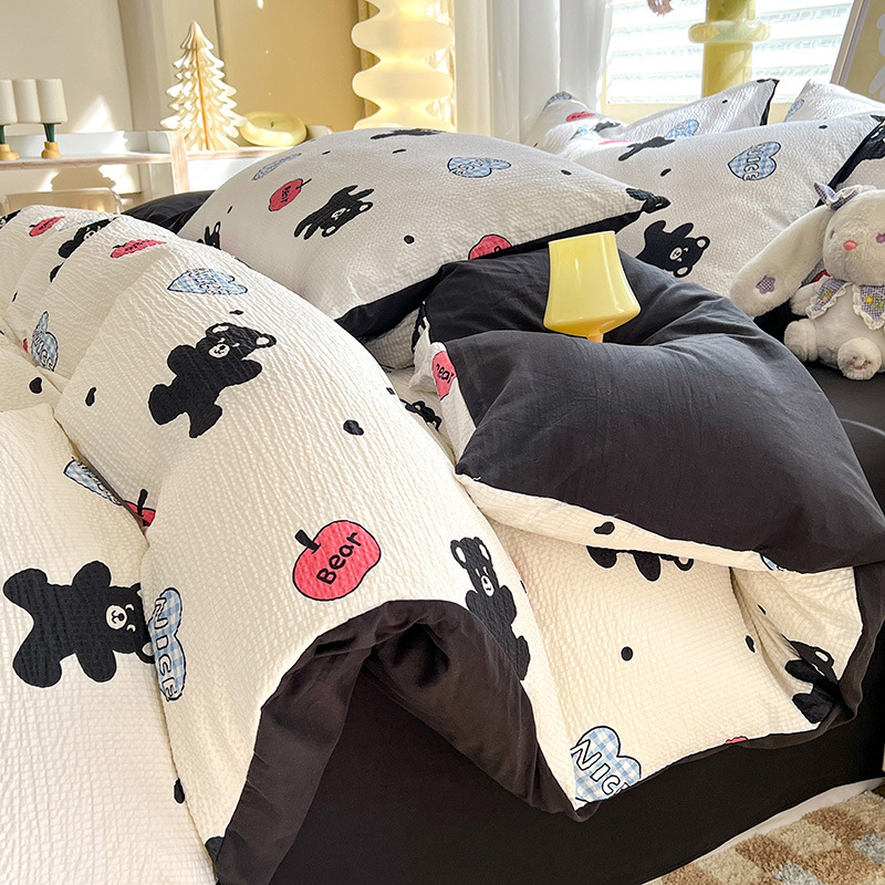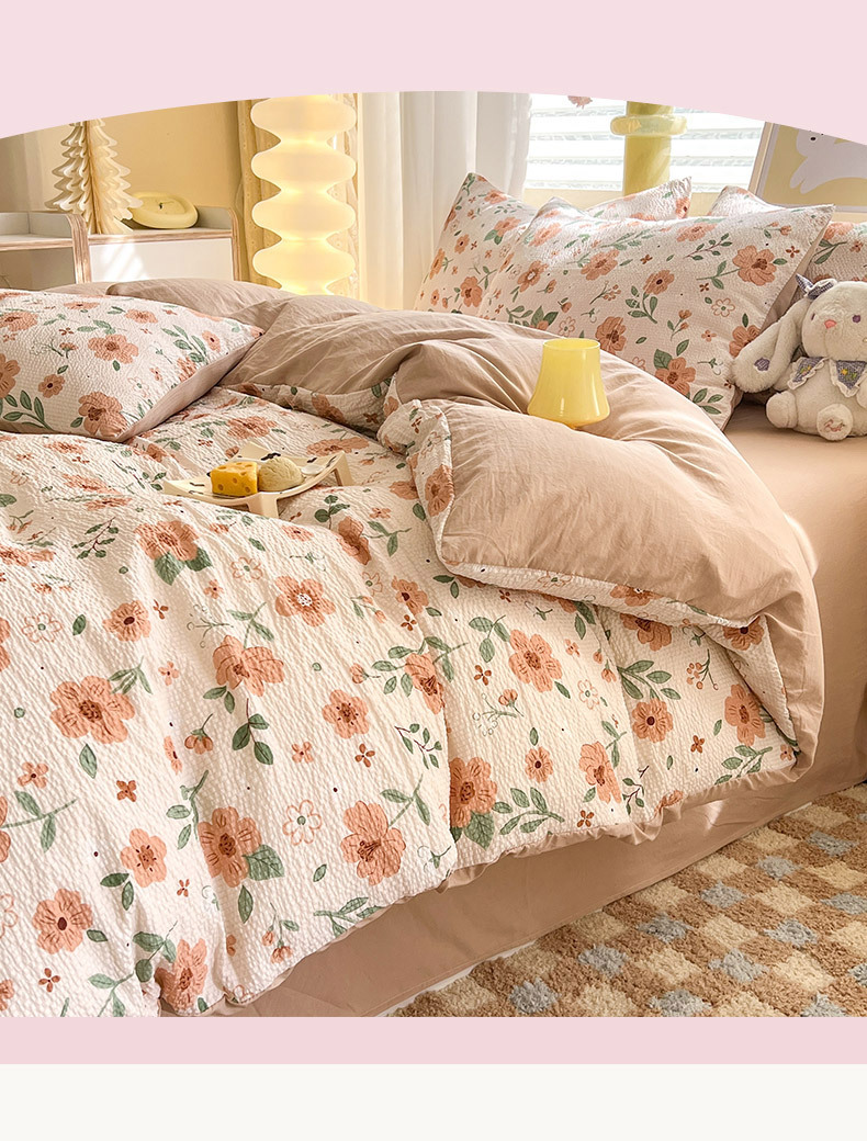 클래스 자카드 버블 코튼 4 피스 세트 씻은 면화 꽃 침대 시트 퀼트 커버 침대 커버 침대 커버 학생 기숙사 3 피스 세트스토어 가기