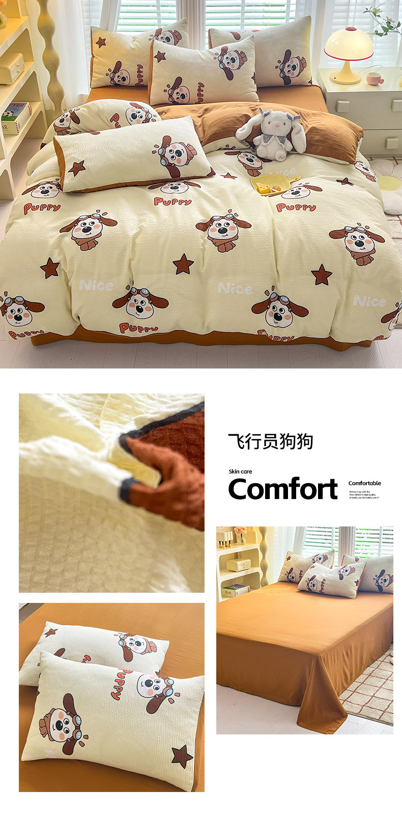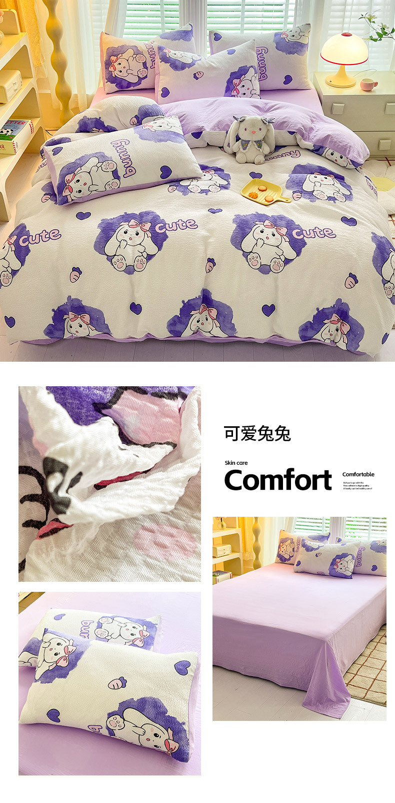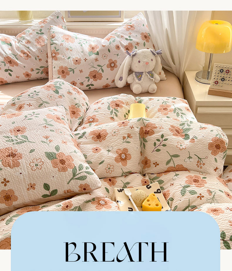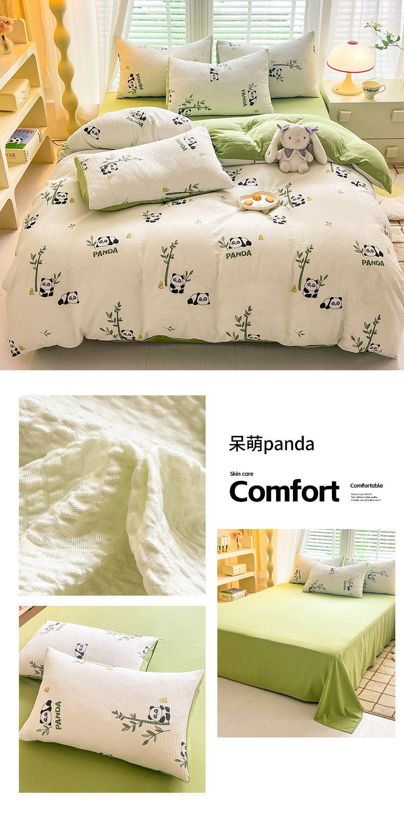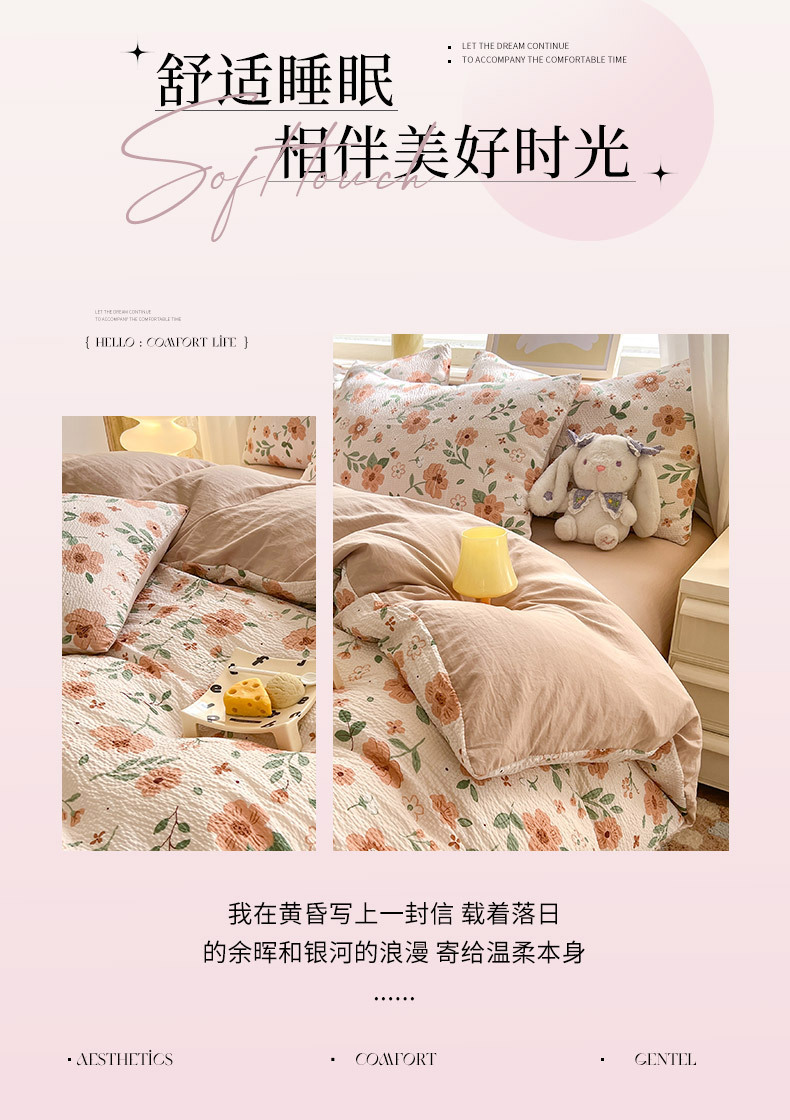 클래스 자카드 버블 코튼 4 피스 세트 씻은 면화 꽃 침대 시트 퀼트 커버 침대 커버 침대 커버 학생 기숙사 3 피스 세트스토어 가기