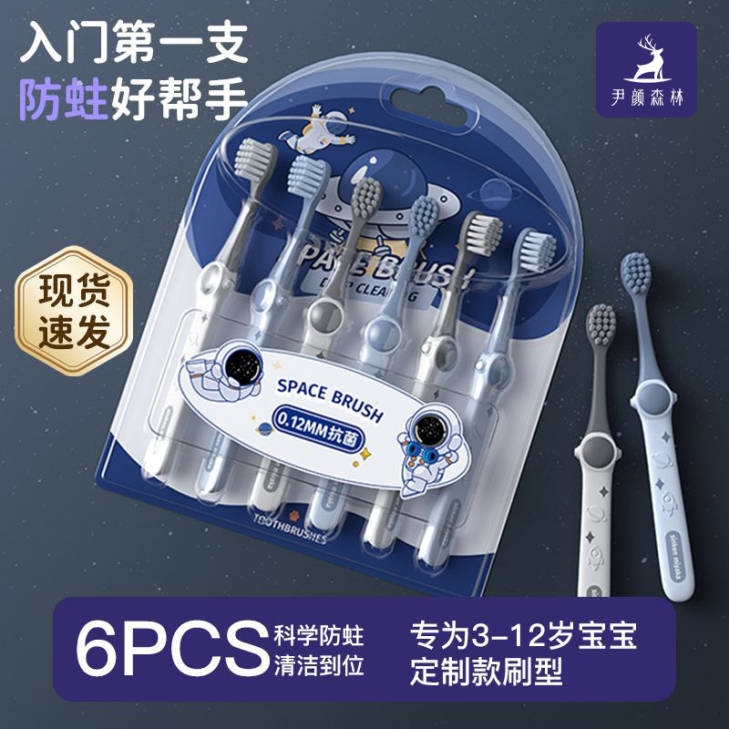 Shan Mu의 어린이 공간 아기 만화 3-12 부드러운 머리 치약 보호 홈 어린이를위한 항균 청소 칫솔스토어 가기