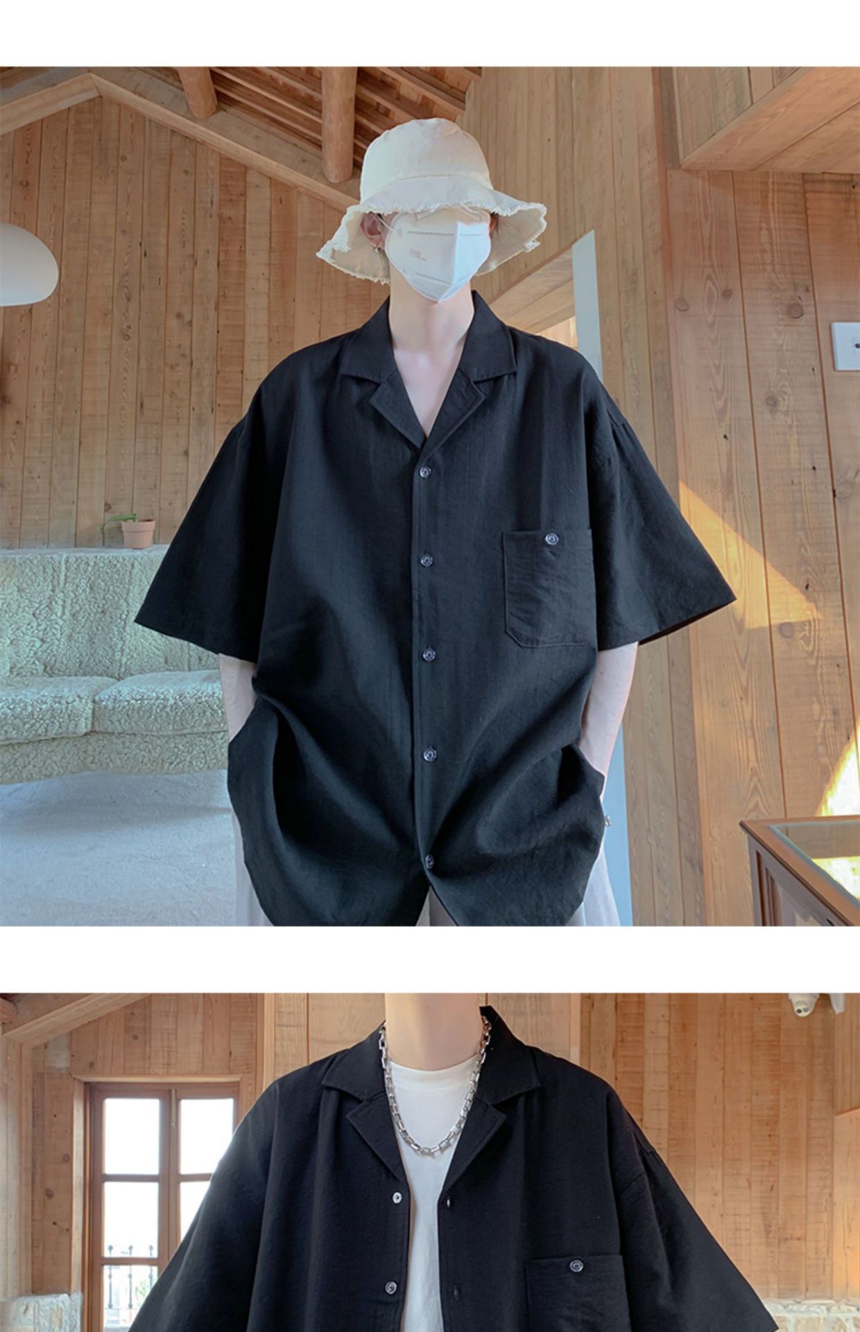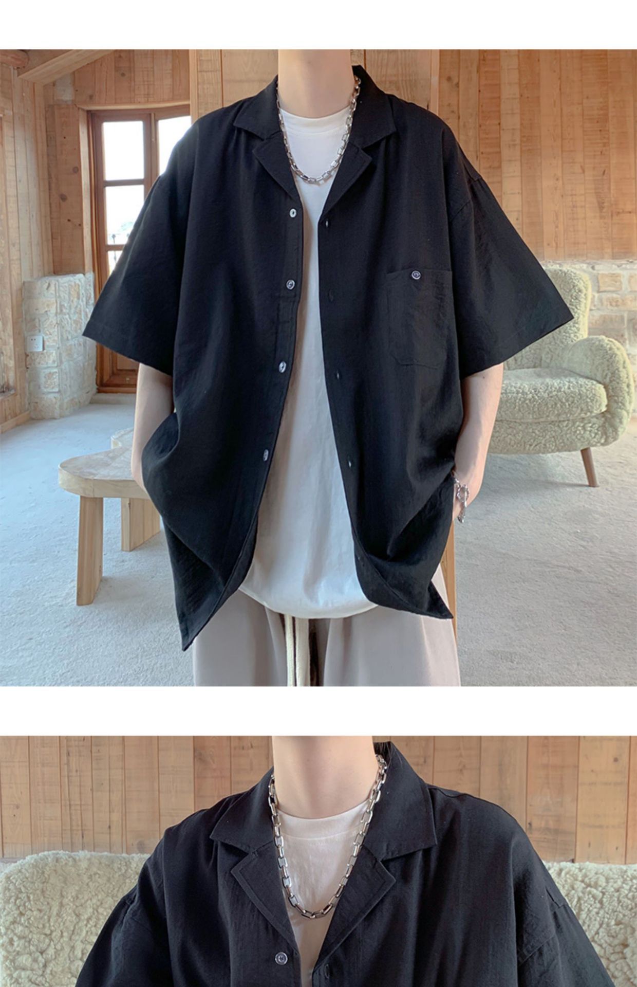 트렌디 한 브랜드 레트로 블랙 지퍼 반팔 작업 셔츠 남성과 여성을위한 여름 새로운 느슨한 올매치 캐주얼 옷깃 셔츠스토어 가기