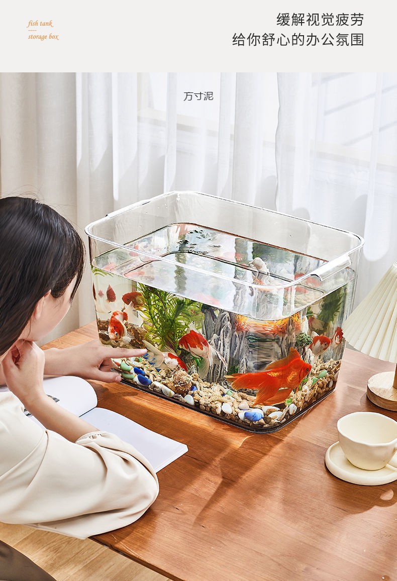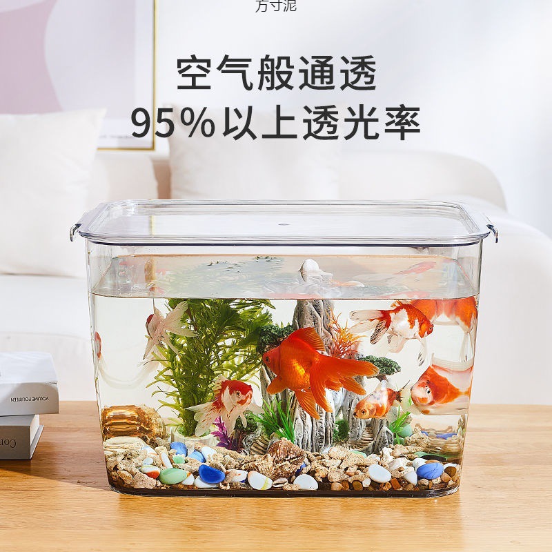 물고기 탱크 수족관 플라스틱 투명한 뜨거운 곡선 금붕어 탱크 거실 발코니 홈 풍경 중소 생태 데스크탑 탱크