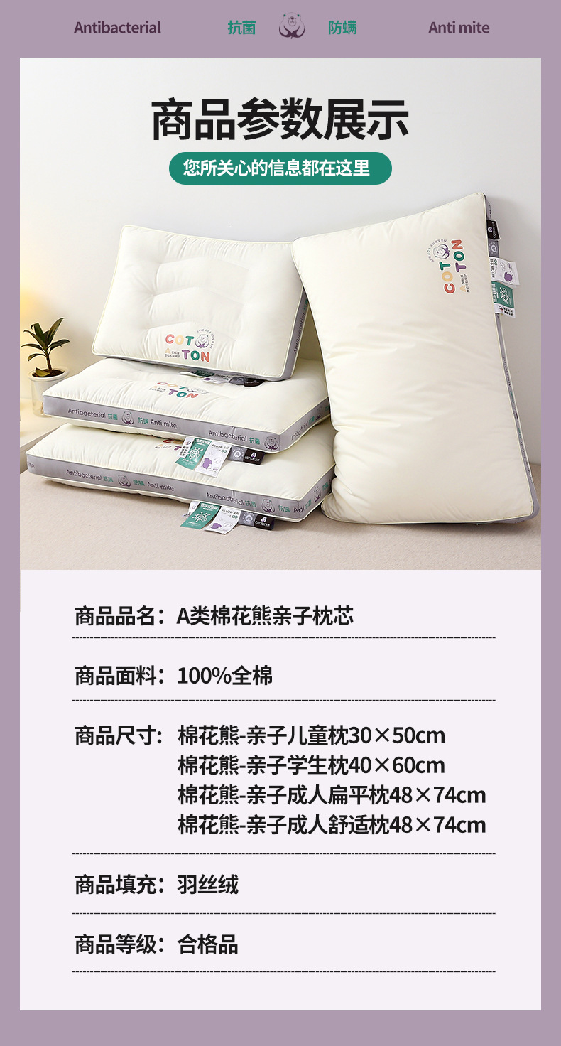 새로운 간단한 면화 부모-자식 베개 코어 성인 학생 베개 홈 호텔 베개 침구 Nantong 홈 섬유스토어 가기
