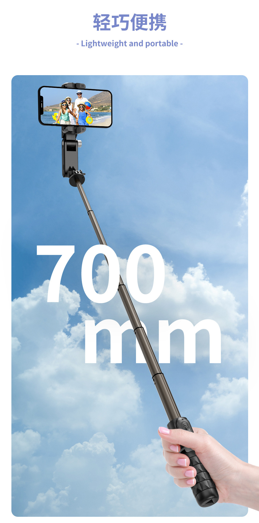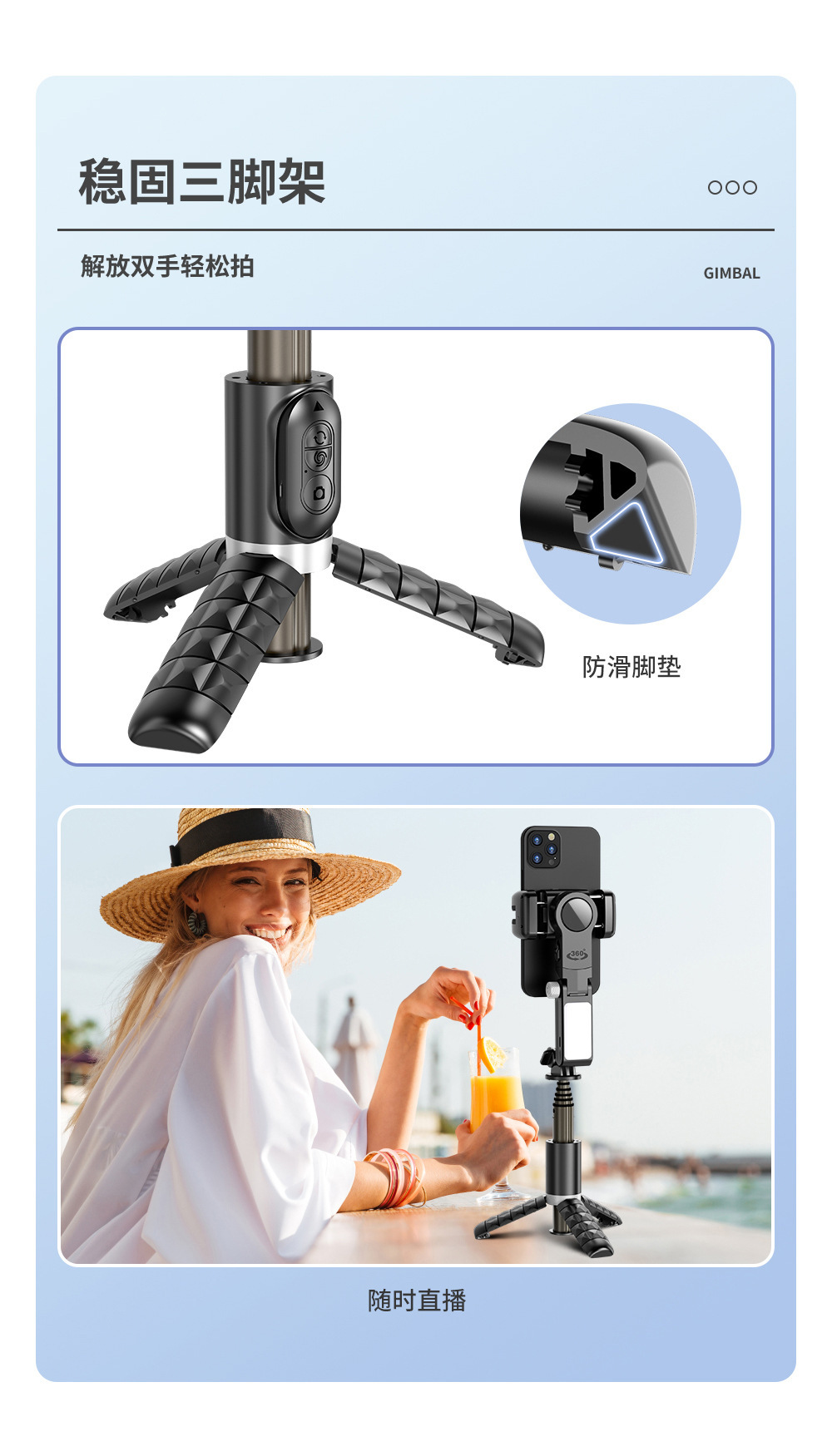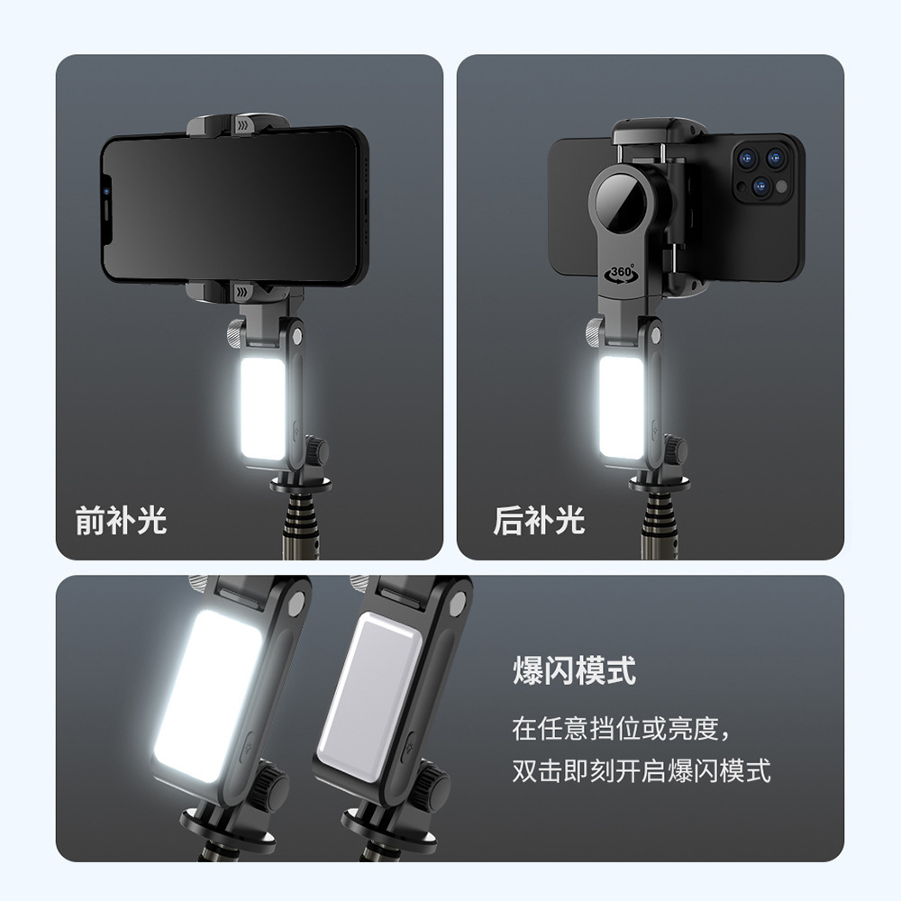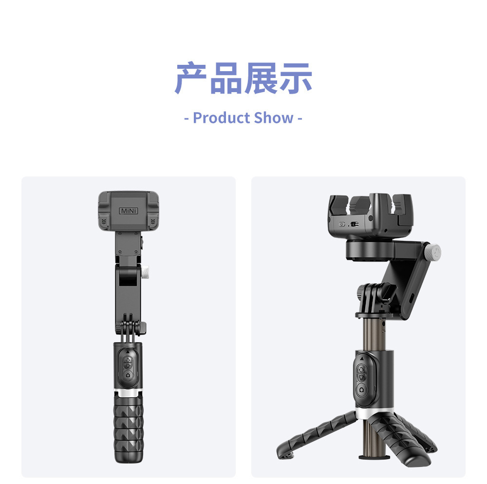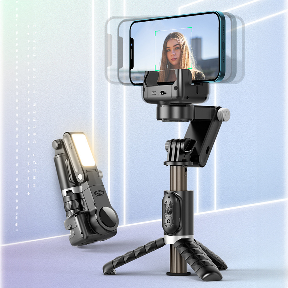 팬 틸트 안정기와 흔들림 방지 블루투스 연결 다기능 삼각대가있는 채우기 조명으로 휴대 전화 셀카 스틱스토어 가기