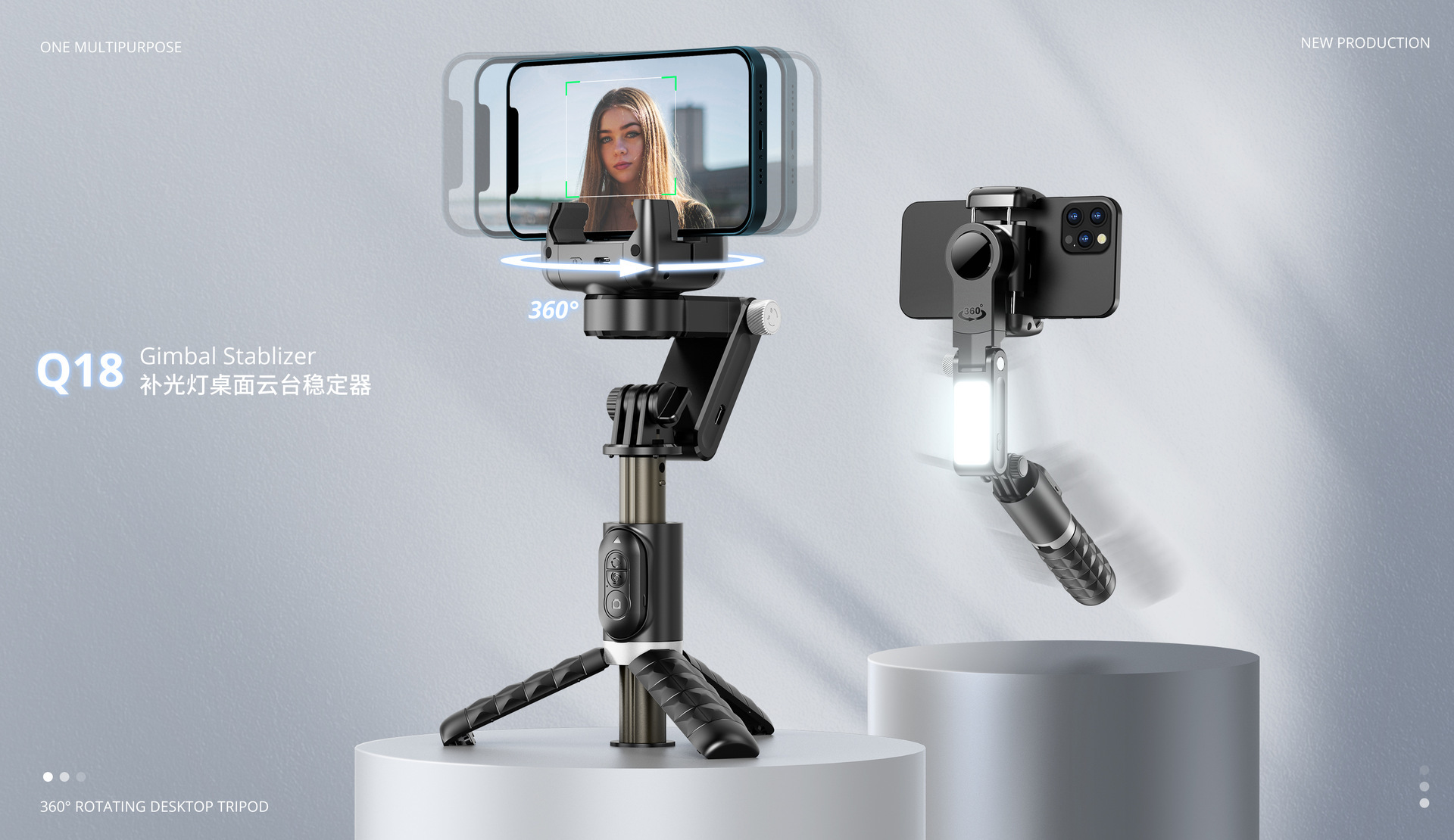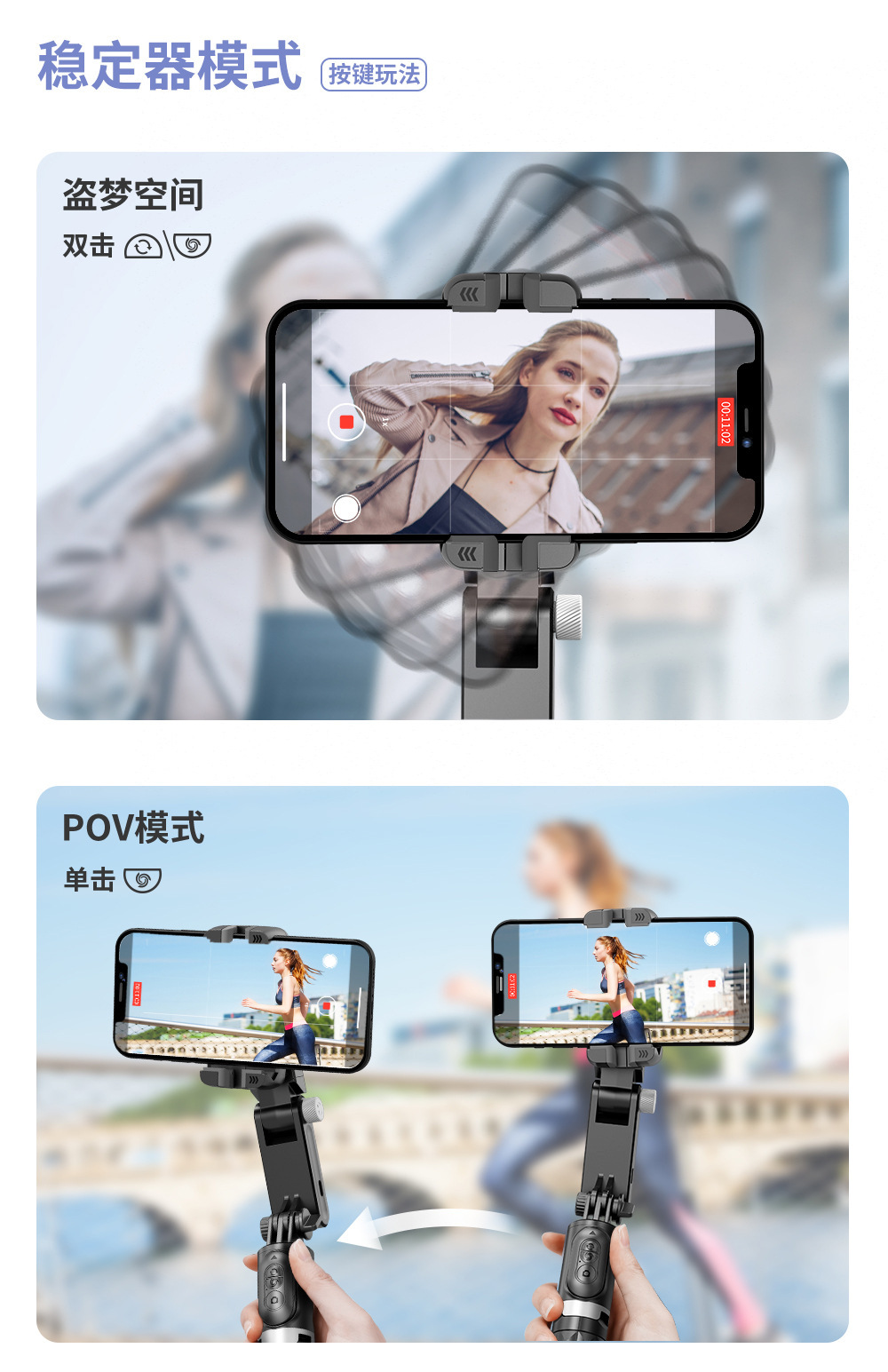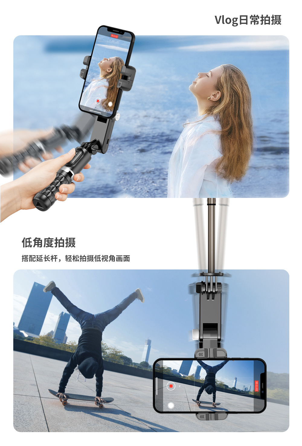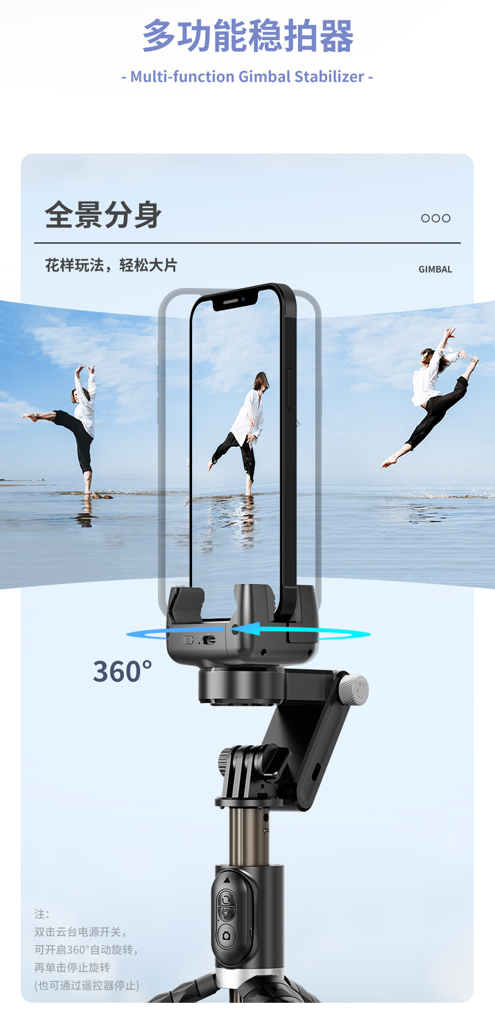 팬 틸트 안정기와 흔들림 방지 블루투스 연결 다기능 삼각대가있는 채우기 조명으로 휴대 전화 셀카 스틱스토어 가기