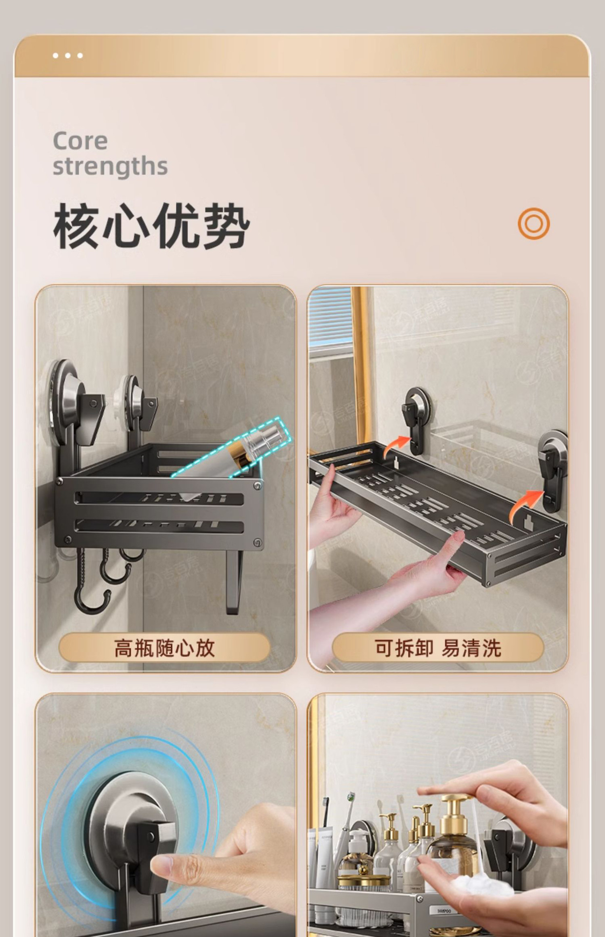 석션 컵 욕실 보관 랙 화장품 보관 샤워 룸 화장실-무료 세척 및 세척 테이블 벽 교수형 구멍스토어 가기