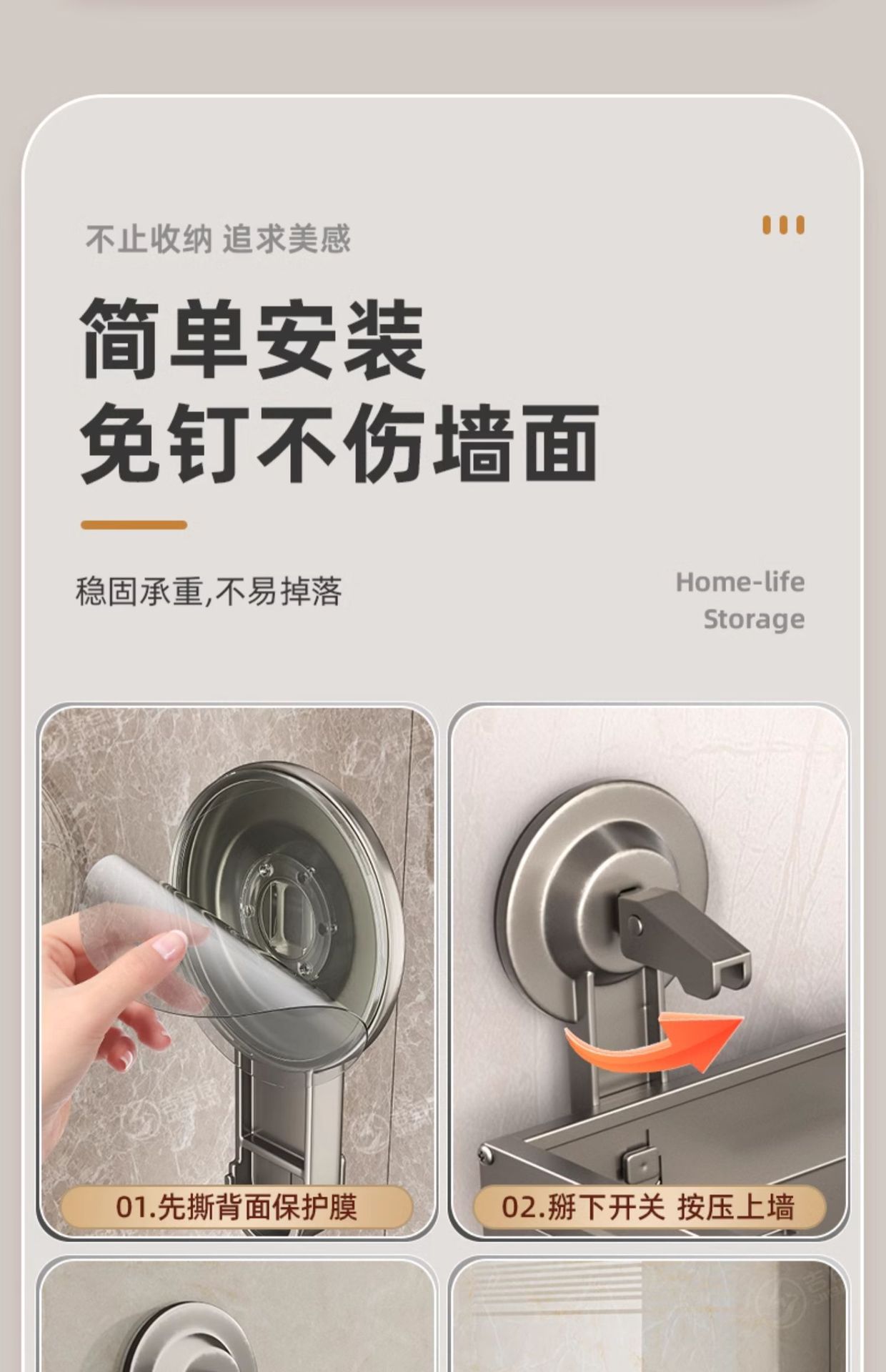 • 건 애쉬--단일 레이어 40cm-흡입 컵 보관 랙