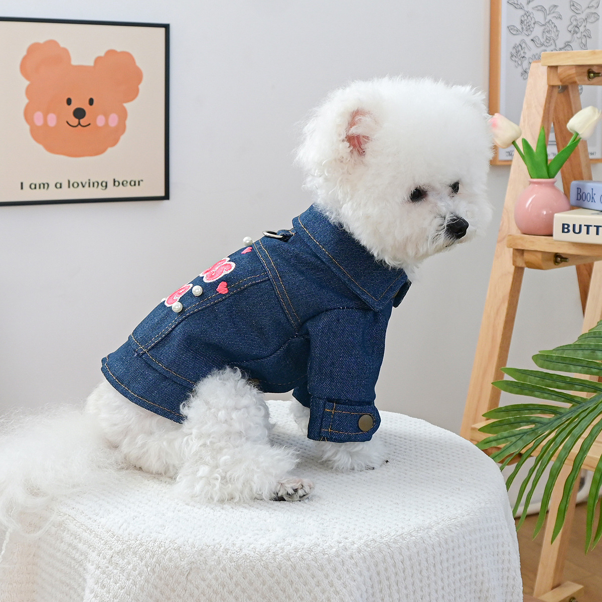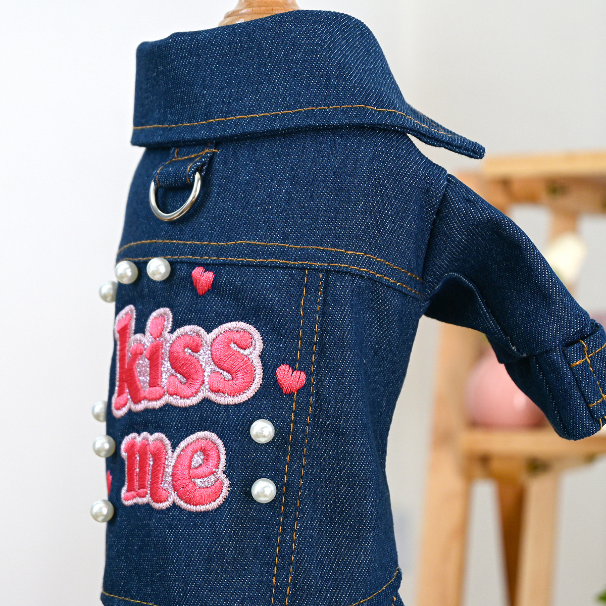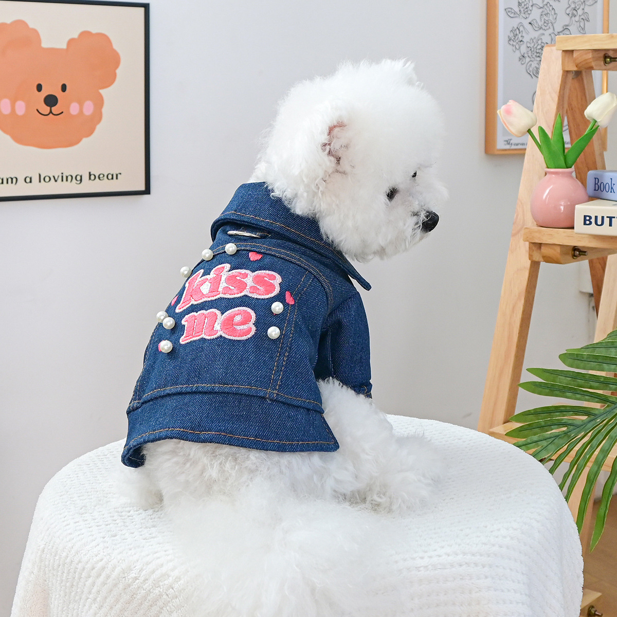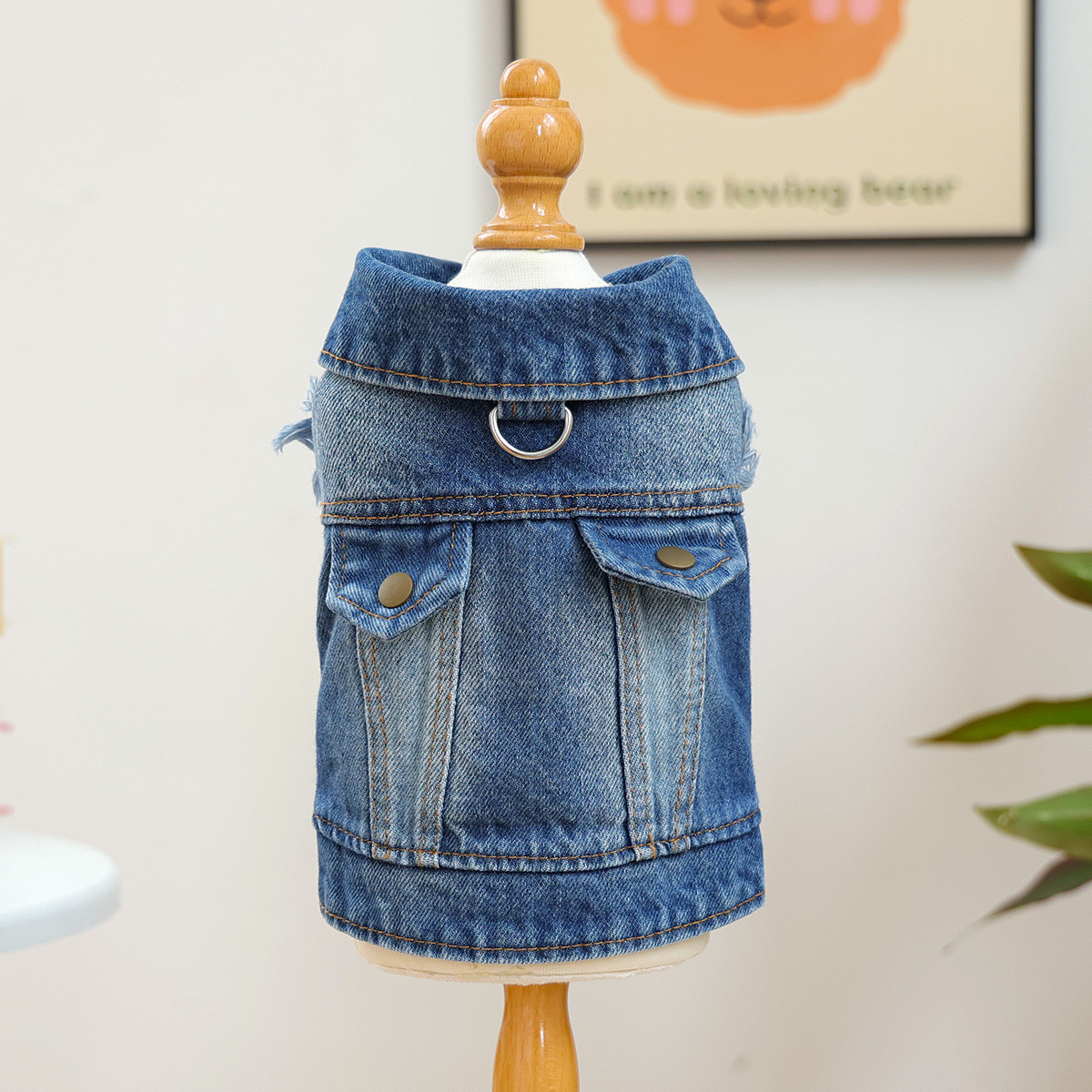 펫써클 애완동물 의류 강아지 고양이 의상 멋지고 귀여운 락스타 스타일 멋진 데님 의류 컬렉션스토어 가기