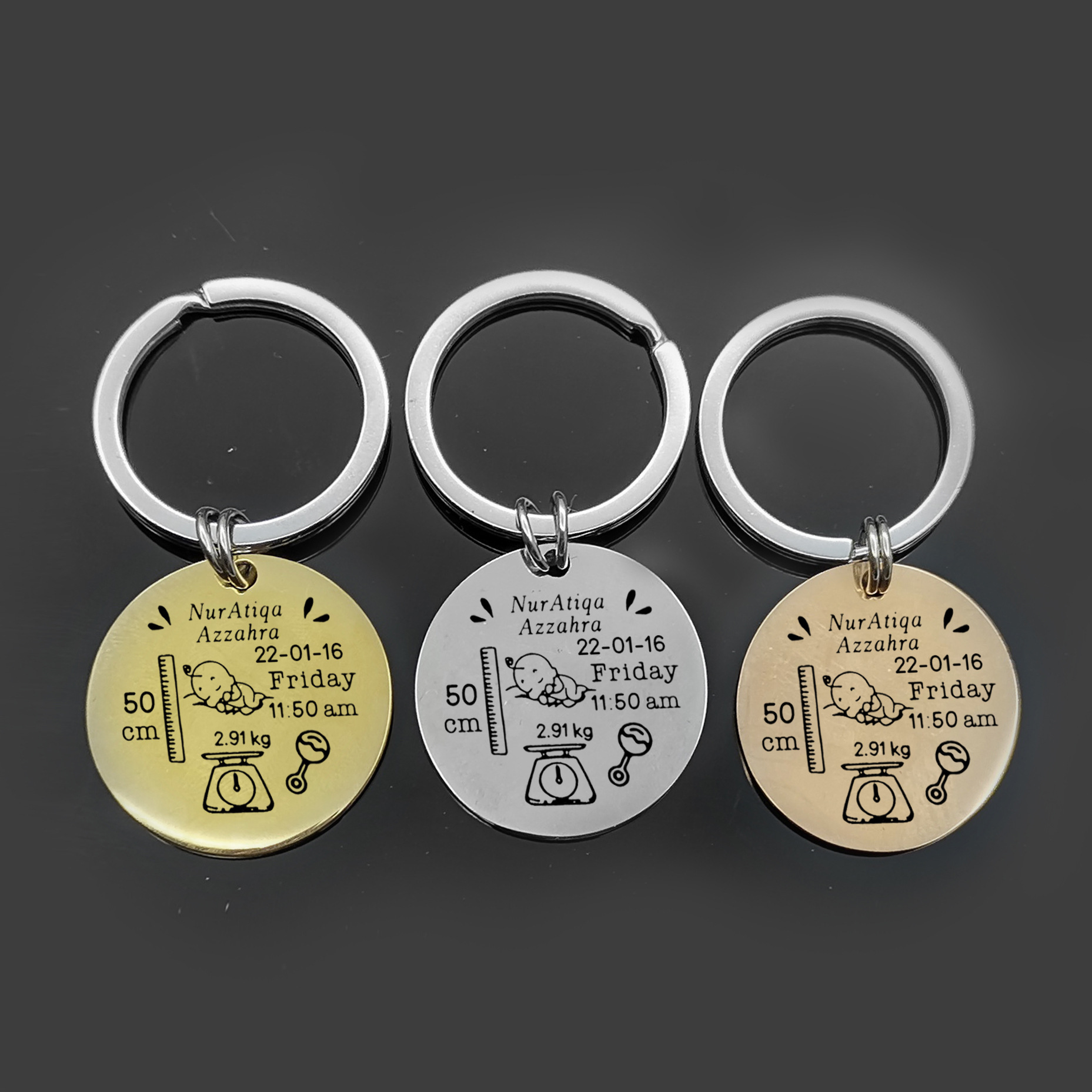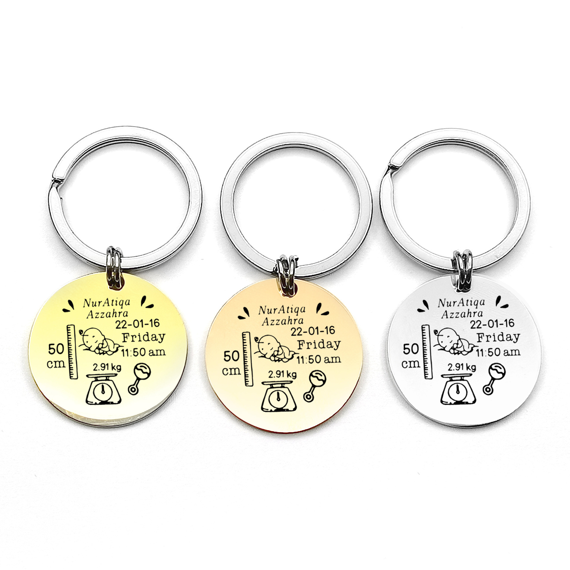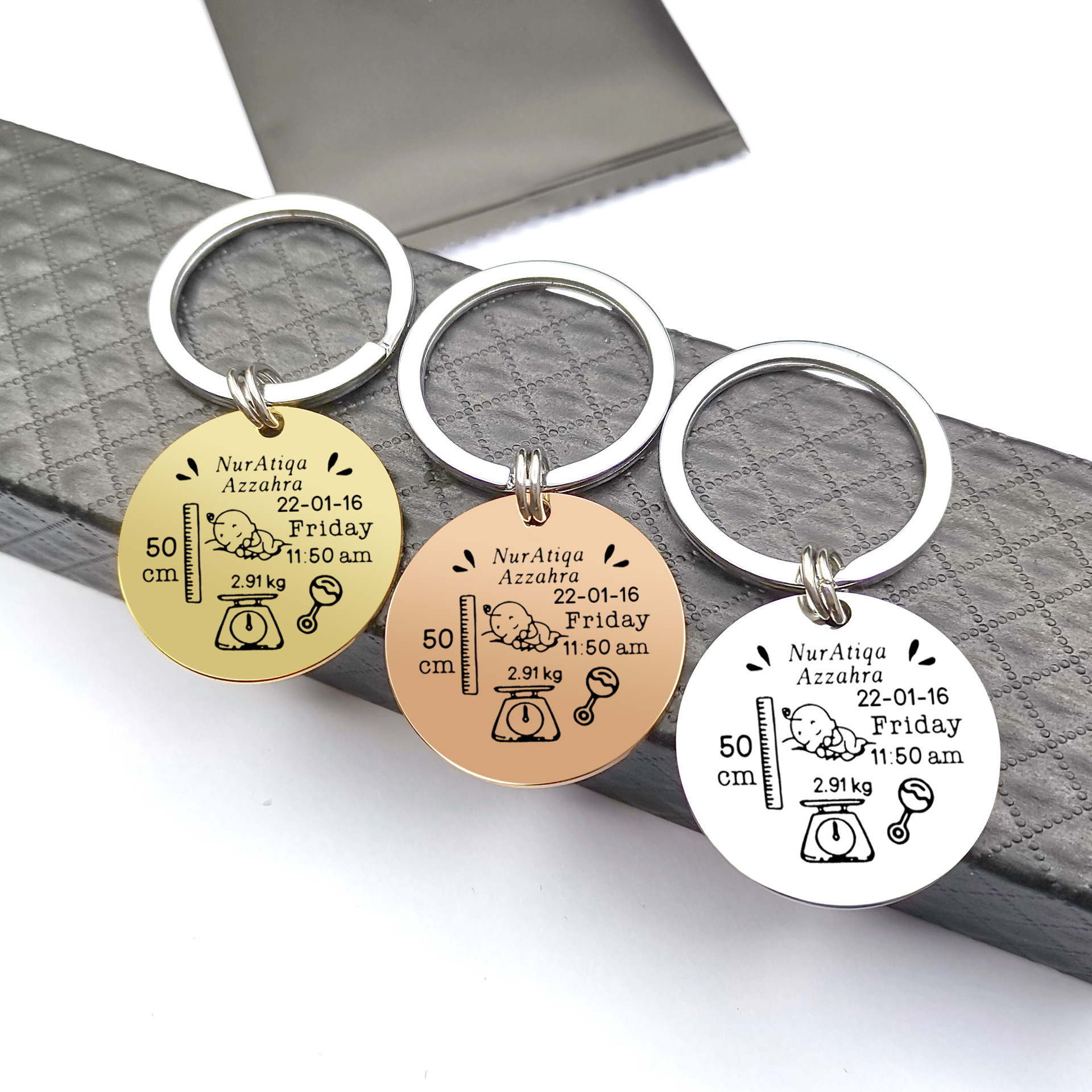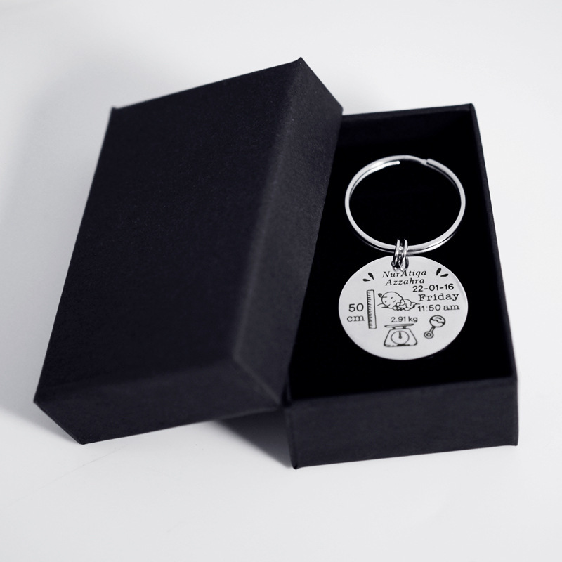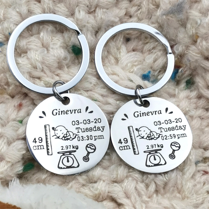국경 간 출생 카드 키 체인 성격 diy 스테인레스 스틸 기념 키 체인 신생아 레터링 편지 보석스토어 가기