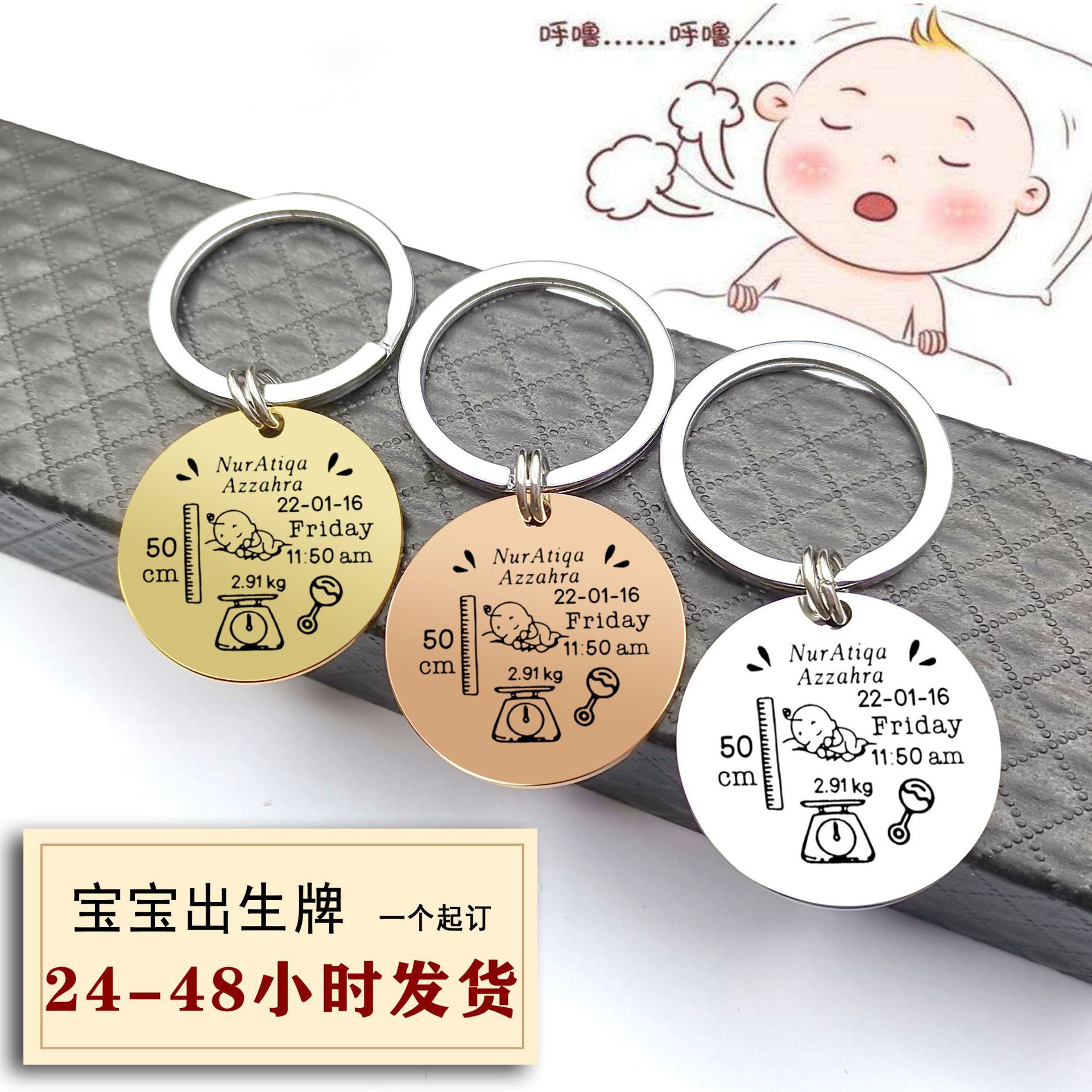 국경 간 출생 카드 키 체인 성격 diy 스테인레스 스틸 기념 키 체인 신생아 레터링 편지 보석