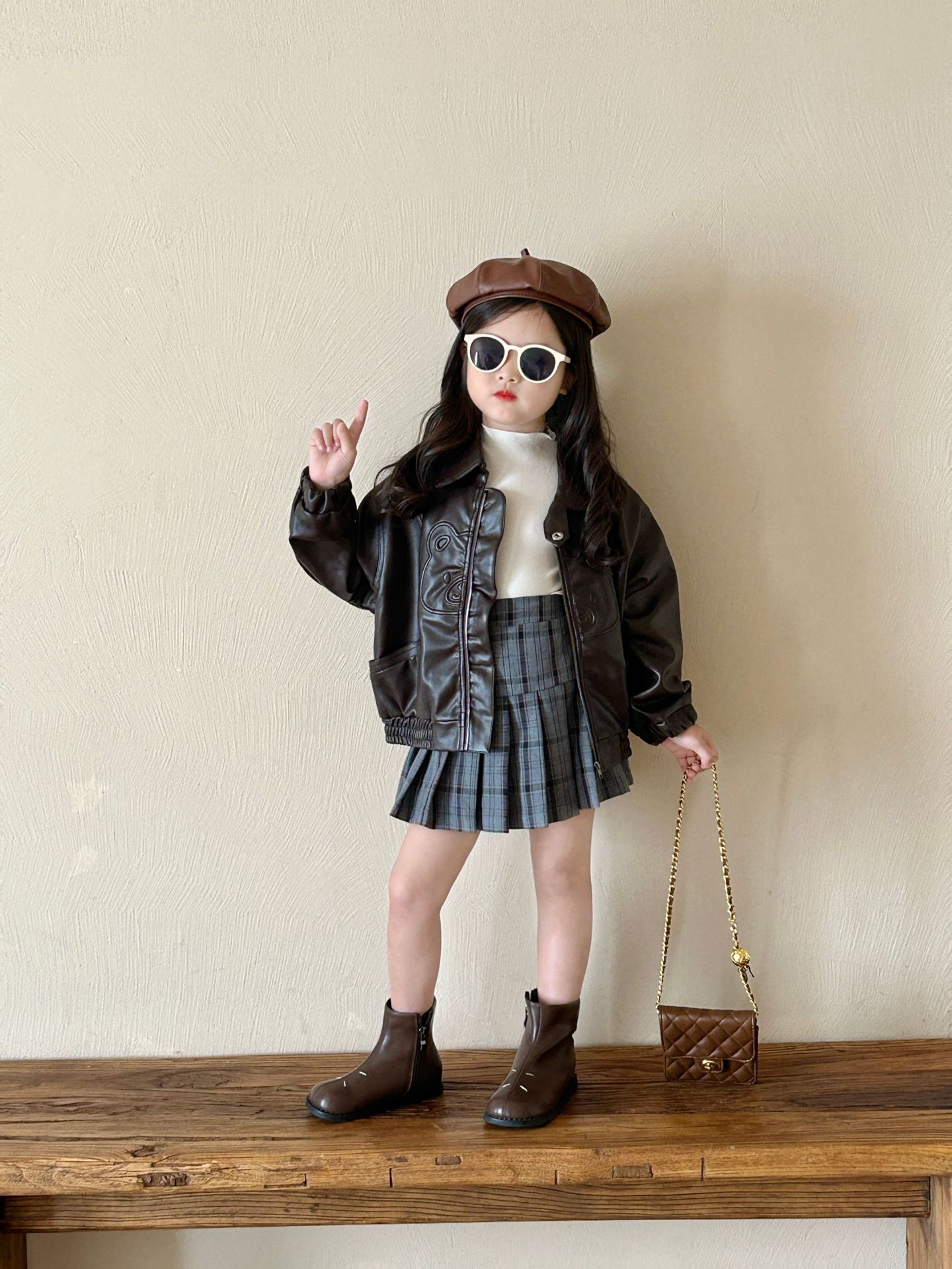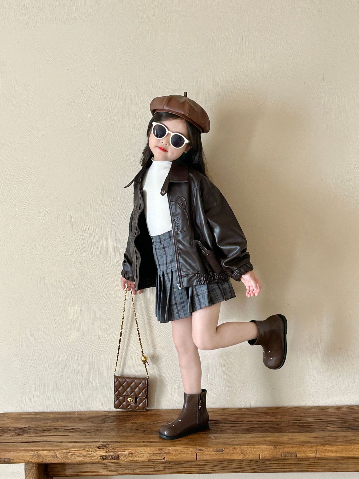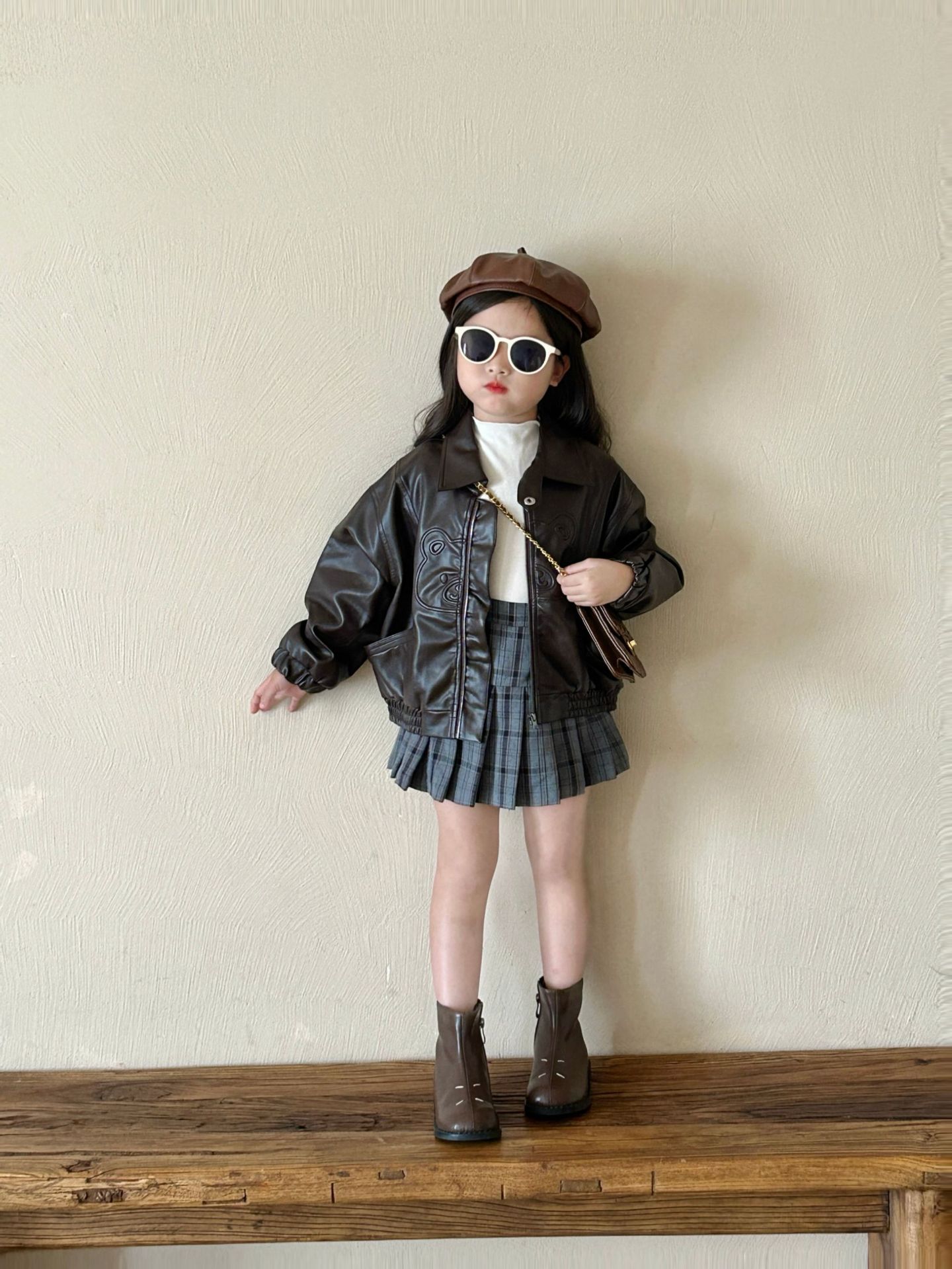 소녀 가죽 2024 가을 새로운 어린이 빈티지 재킷 어린이 긴팔 겉옷 세련된 코트스토어 가기