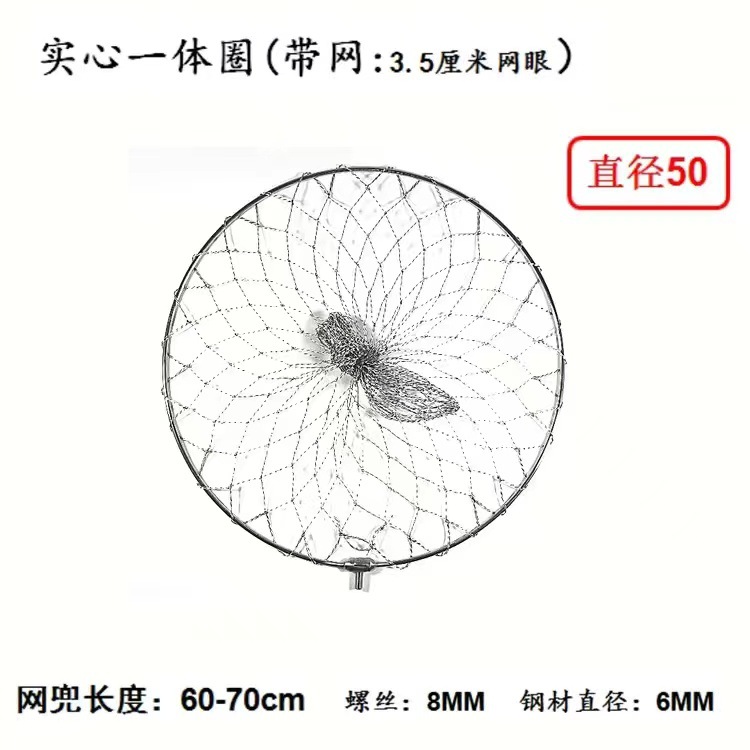 스테인레스 스틸 그물 복사 헤드 솔리드 접이식 라운드 대형 그물 복사 링 강한 말 낚시 그물 낚시 그물 가방 큰 물체
