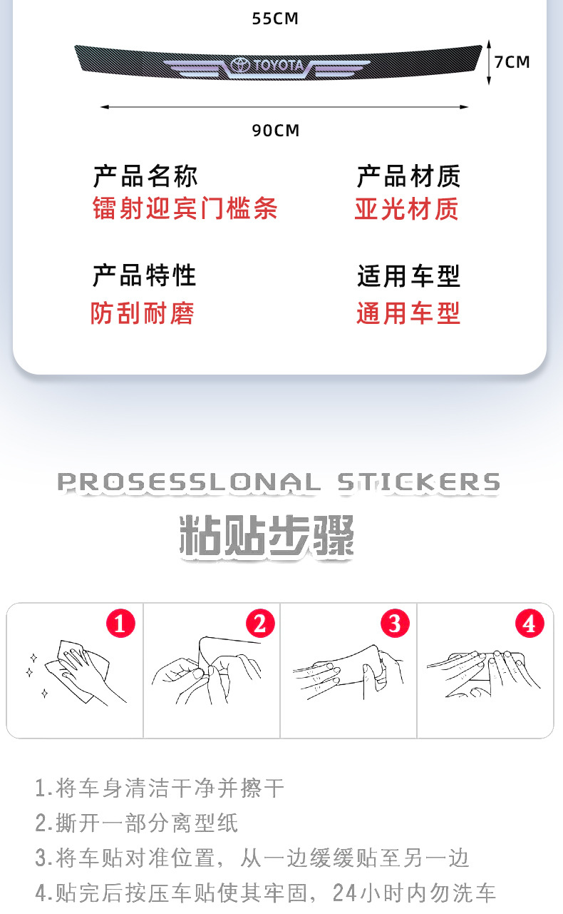 • 일반-탄소 섬유 레이저 문턱 스트립 [안전한 입장 및 입장] 4 조각 팩