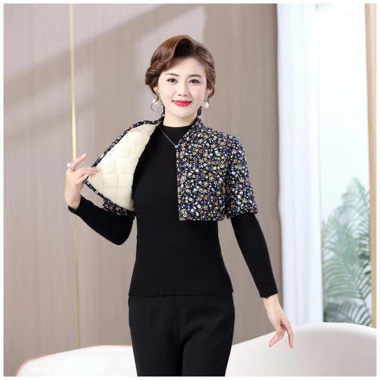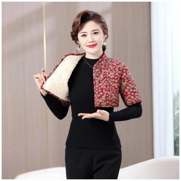 중년 및 노인 반소매 기모 양복 조끼 어머니 어깨 보호 양복 조끼 여성의 잠자는 따뜻한 겨울 꽃 말 클립