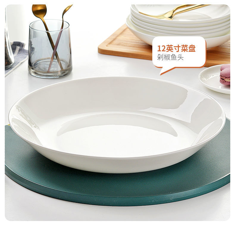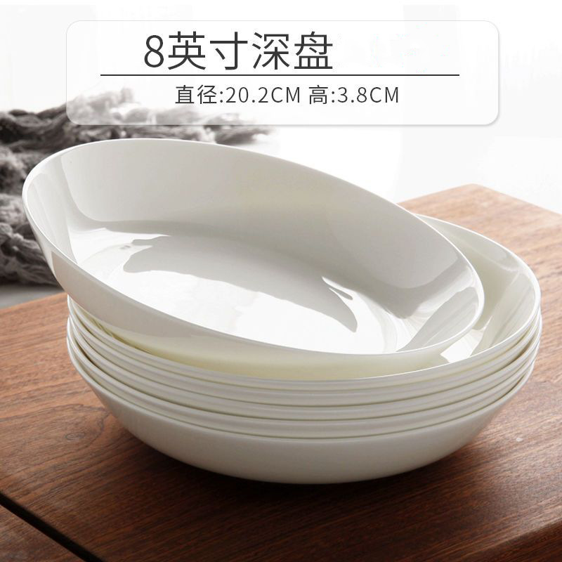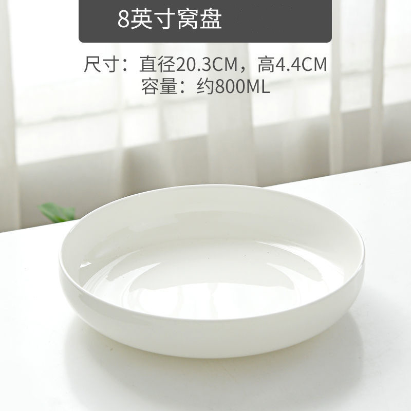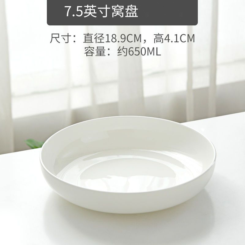 순수한 흰색 뼈 중국 접시 식당 접시 가정용 세라믹 플레이트 라운드 화이트 도자기 플레이트 라이스 플레이트 딥 플레이트 디너 플레이트 식기스토어 가기