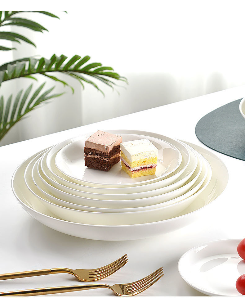 순수한 흰색 뼈 중국 접시 식당 접시 가정용 세라믹 플레이트 라운드 화이트 도자기 플레이트 라이스 플레이트 딥 플레이트 디너 플레이트 식기