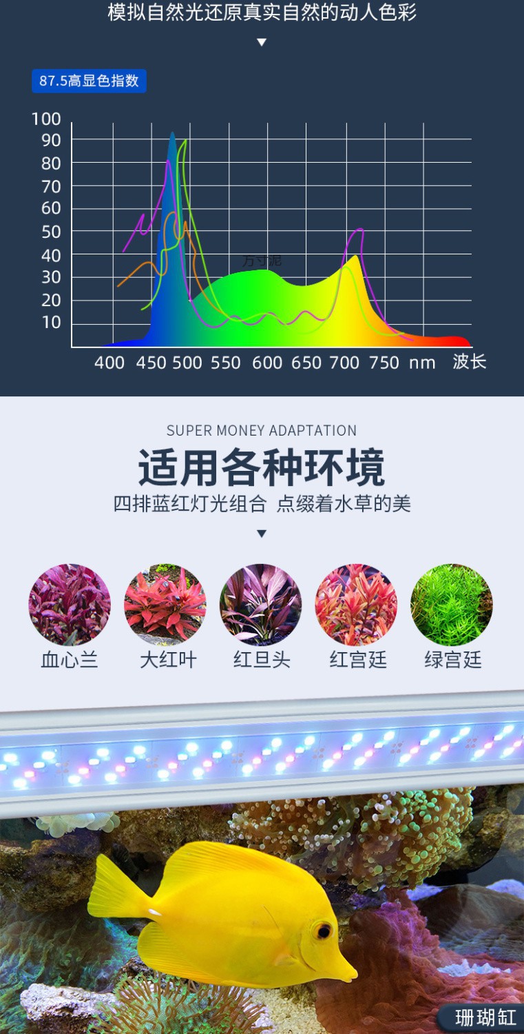 물고기 탱크 램프 슈퍼 밝은 특수 스펙트럼 물 램프 폭발 램프 열대 우림 조경 색상 Zeng Yan 물고기 램프 소스 공장 도매스토어 가기